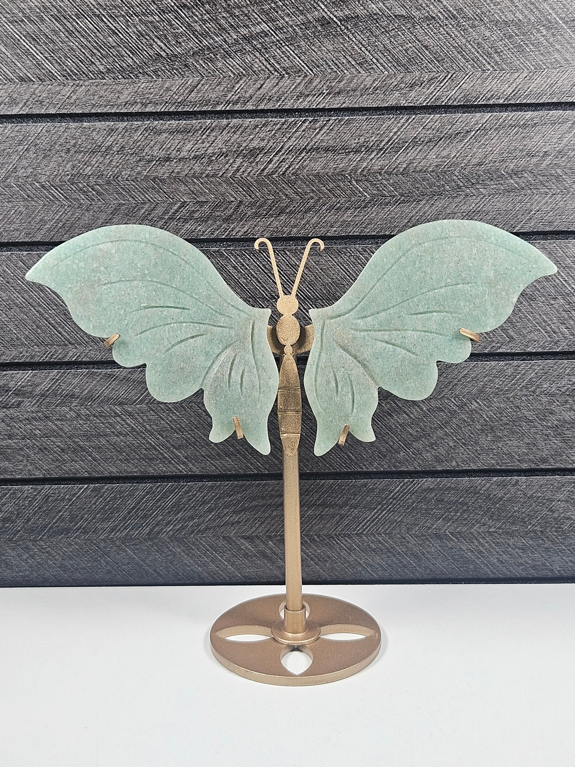 Geplaatst op een elegante standaard vormt deze vlinder een sfeervol en betekenisvol decoratiestuk, perfect voor in huis, op een altaar of werkplek.