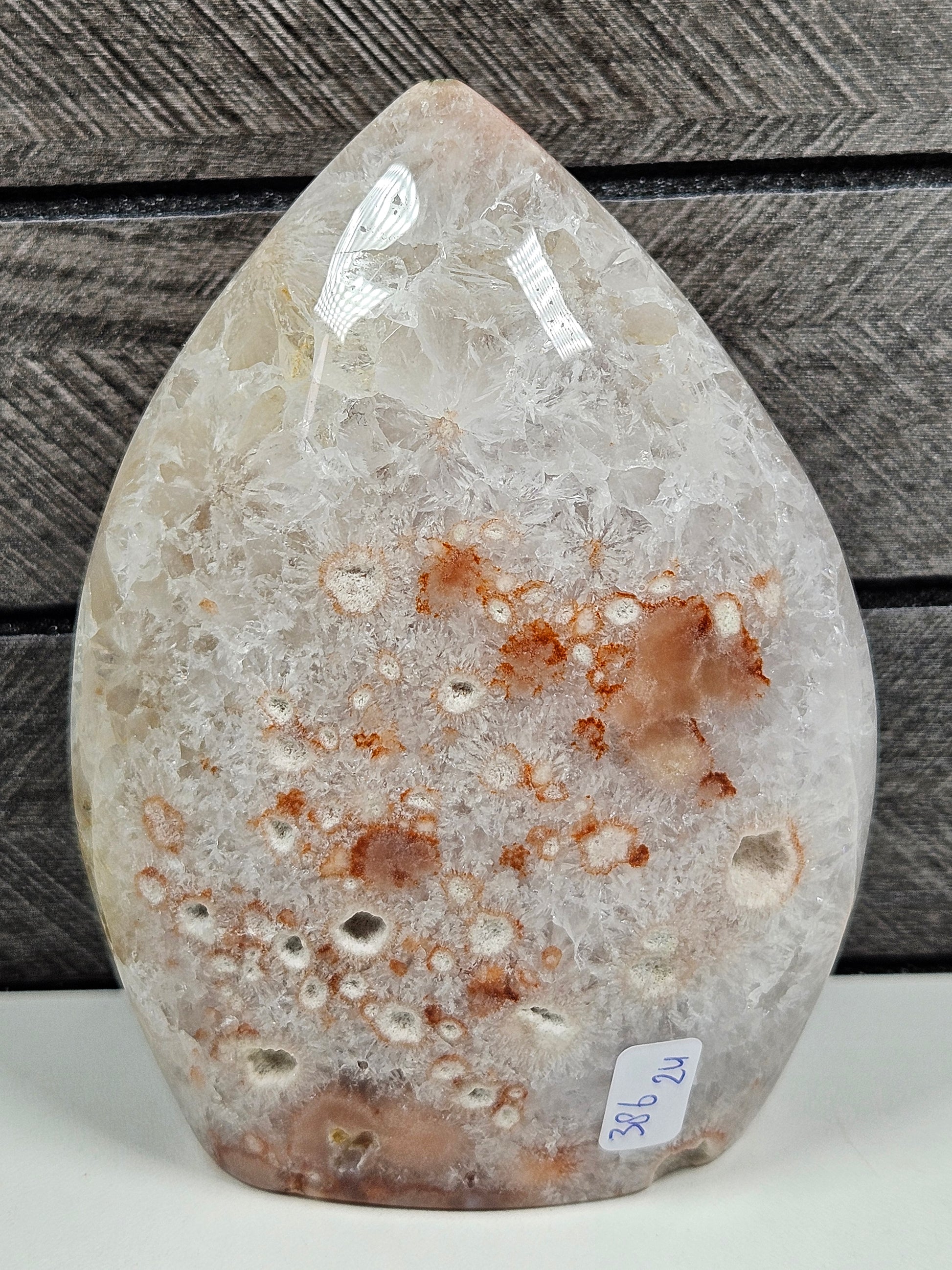 Voeg natuurlijke elegantie en positieve energie toe aan je interieur met dit bloemagaat sculptuur van 386 gram. Met een hoogte van 11,5 cm is dit unieke sculptuur zowel een decoratief object als een spiritueel hulpmiddel.