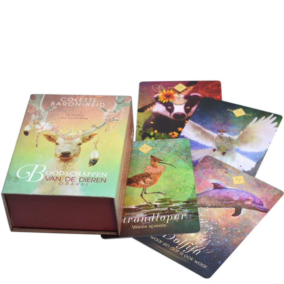 Boodschappen van de dieren door Colette Baron-Reid. Met elke getrokken kaart deel je in deze wijsheid; het helpt je om dicht bij je persoonlijke pad te blijven, voorbij te gaan aan je beperkende overtuigingen en toegang te krijgen tot je oneindige potentieel.
