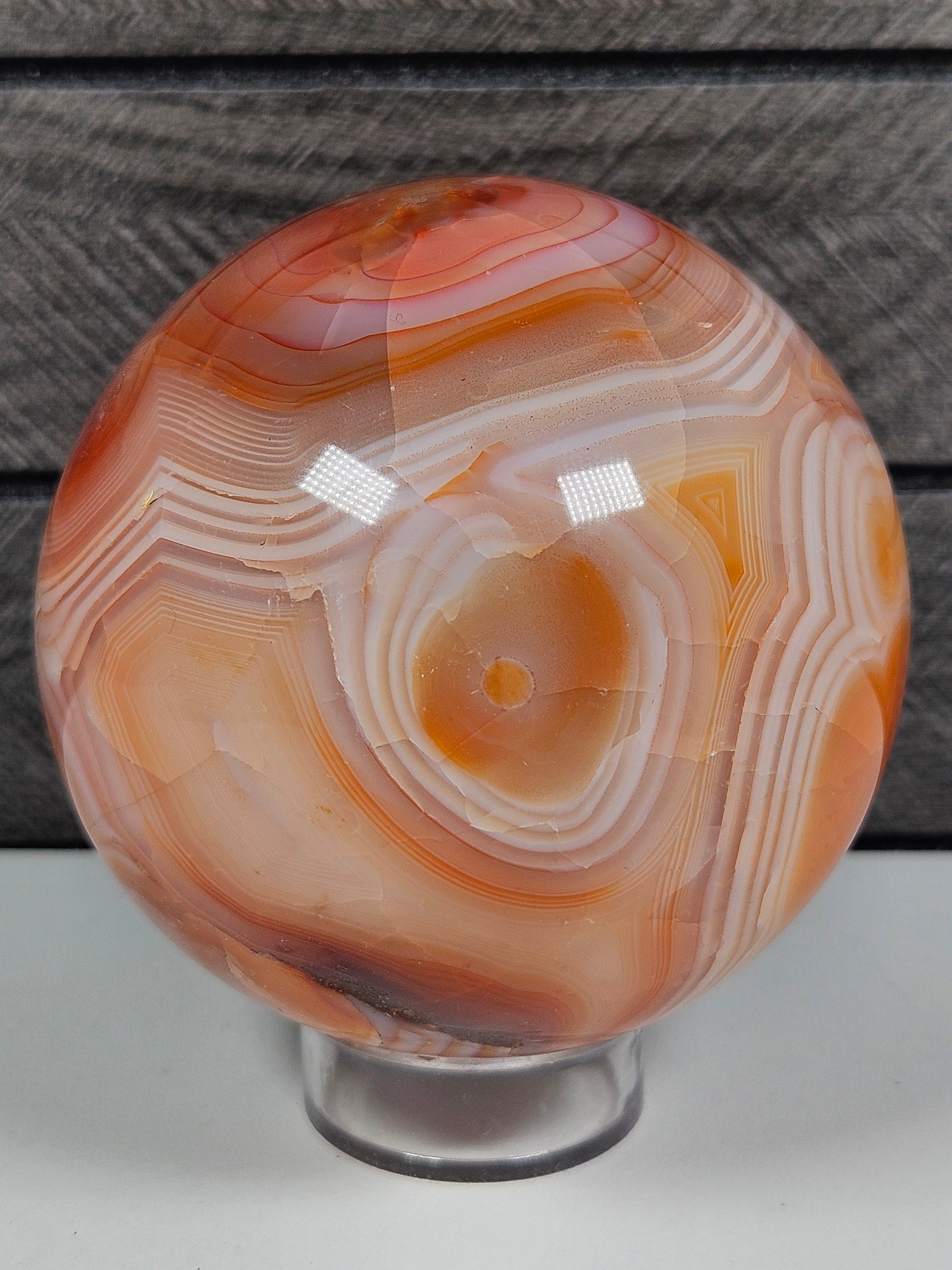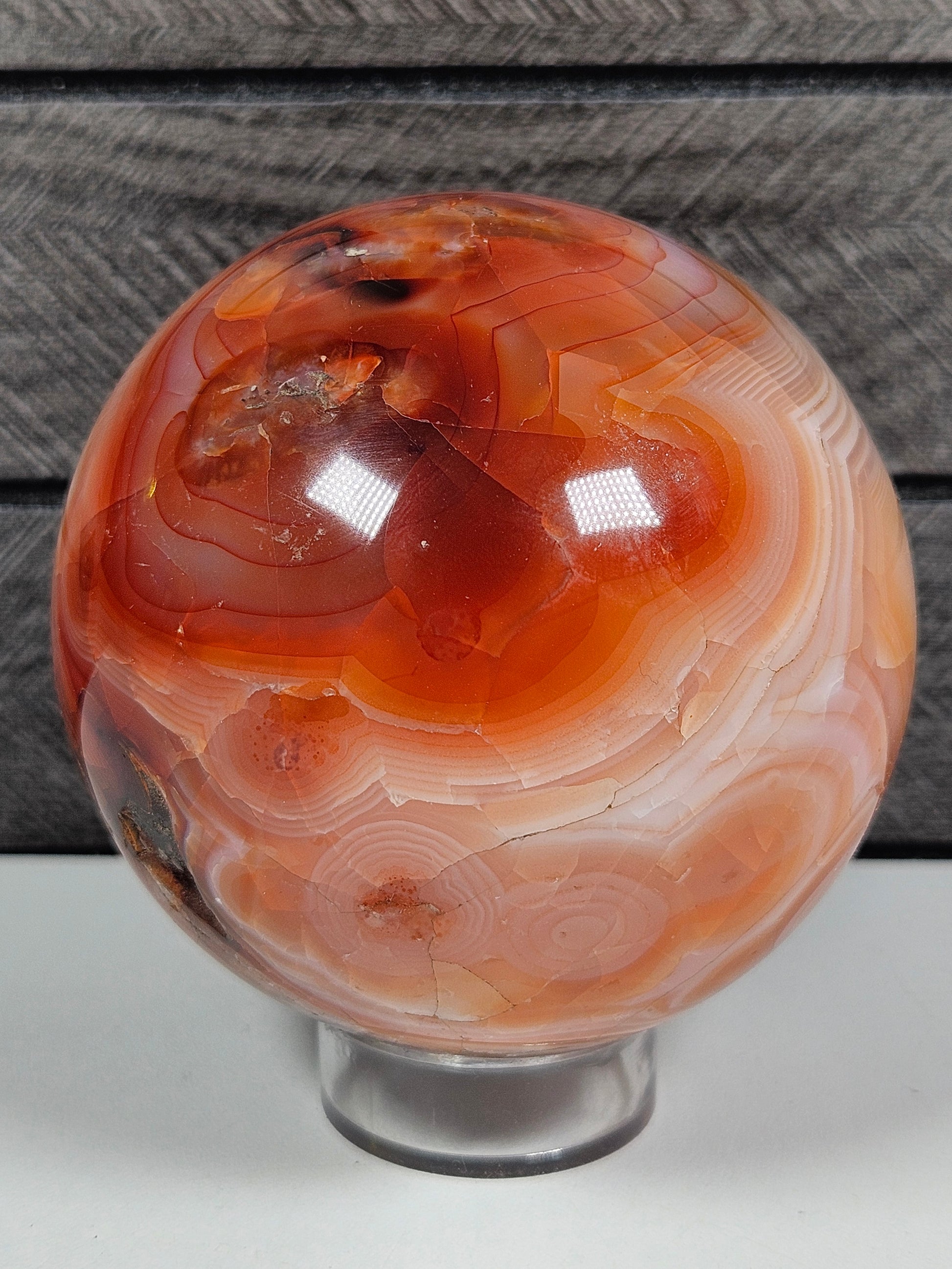 Deze carneool bol is een uniek stuk natuursteen. Kleur, patronen en kleurovergangen zijn volledig natuurlijk gevormd, waardoor elke bol een eigen karakter en uitstraling heeft. Je ontvangt precies het exemplaar dat op de foto staat.