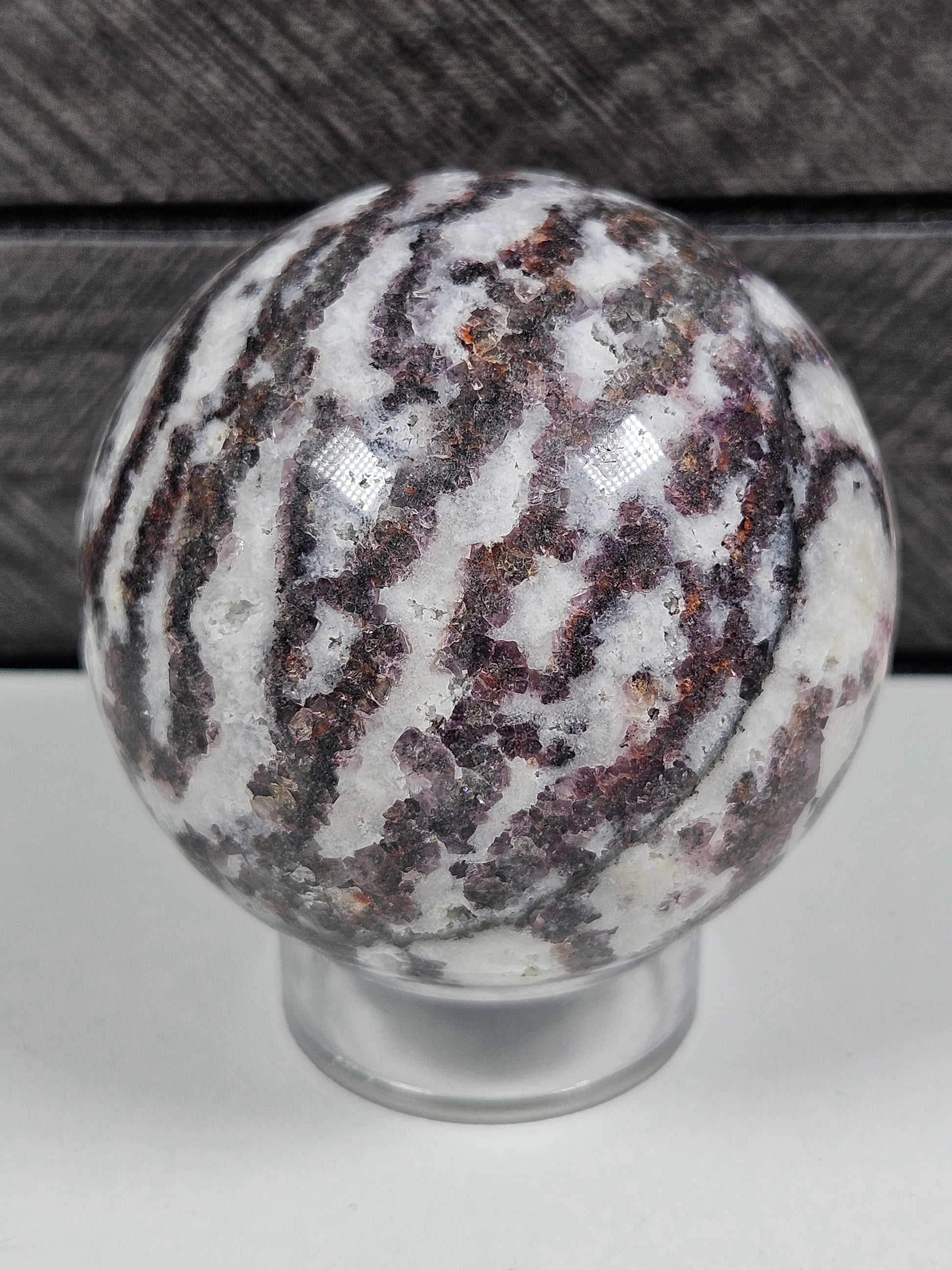 Deze Fluoriet / Calciet bol van 258 gram met een diameter van 5,6 cm is een bijzonder natuurproduct waarin de heldere kleurzones van Fluoriet samenkomen met de zachte, melkachtige structuren van Calciet. Deze combinatie maakt de Fluoriet Calciet bol populair bij liefhebbers van edelstenen voor meditatie, concentratie en decoratief gebruik. De bolvorm zorgt voor een gelijkmatige verspreiding van energie en benadrukt de natuurlijke patronen van de steen.