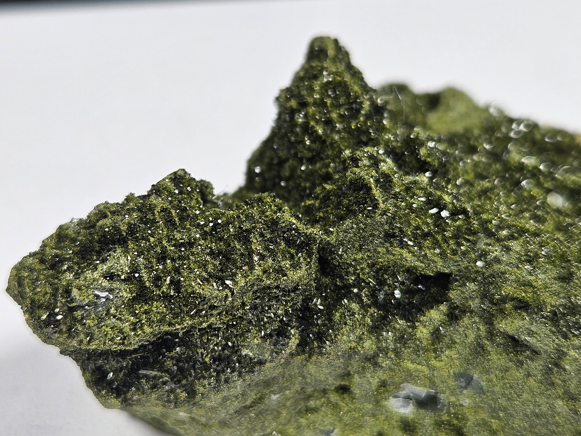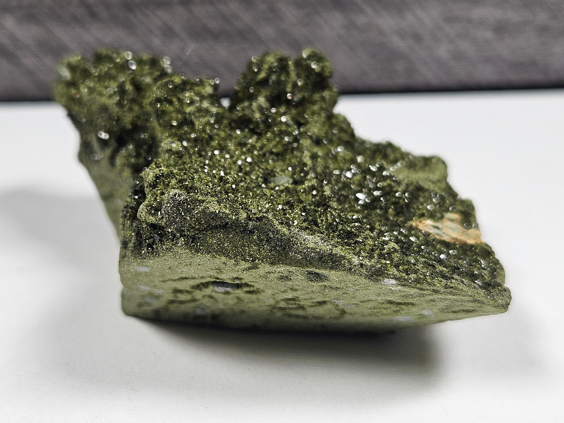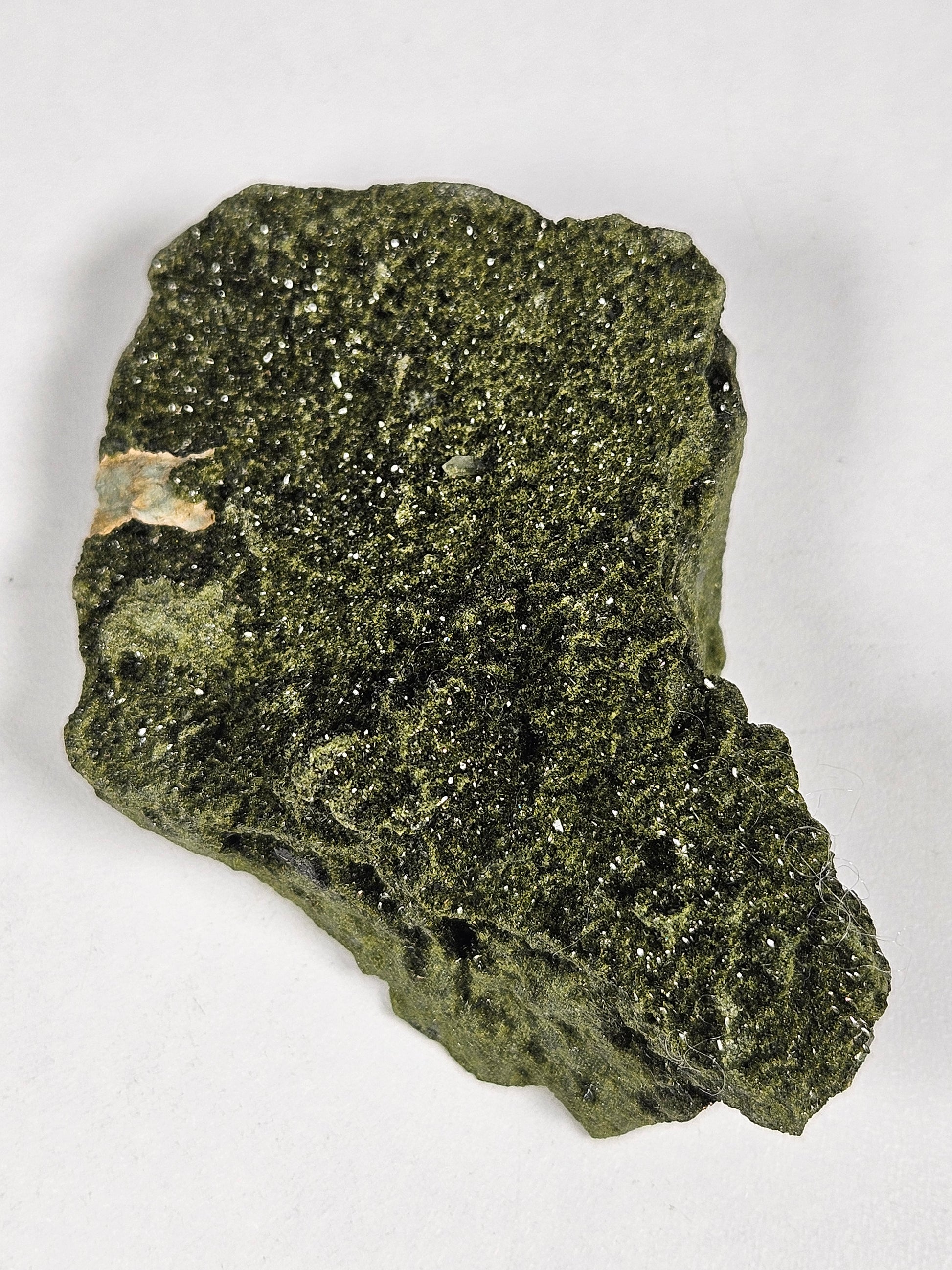 Dit ruwe stuk Forest Epidoot van hoge kwaliteit is een compact maar krachtig natuurproduct met een mooie natuurlijke glans en duidelijk zichtbare kristalstructuren. Met een gewicht van 108 gram en een afmeting van circa 8 x 5,5 cm is dit een handzaam exemplaar dat opvalt door zijn sprankelende oppervlak en ruwe uitstraling.