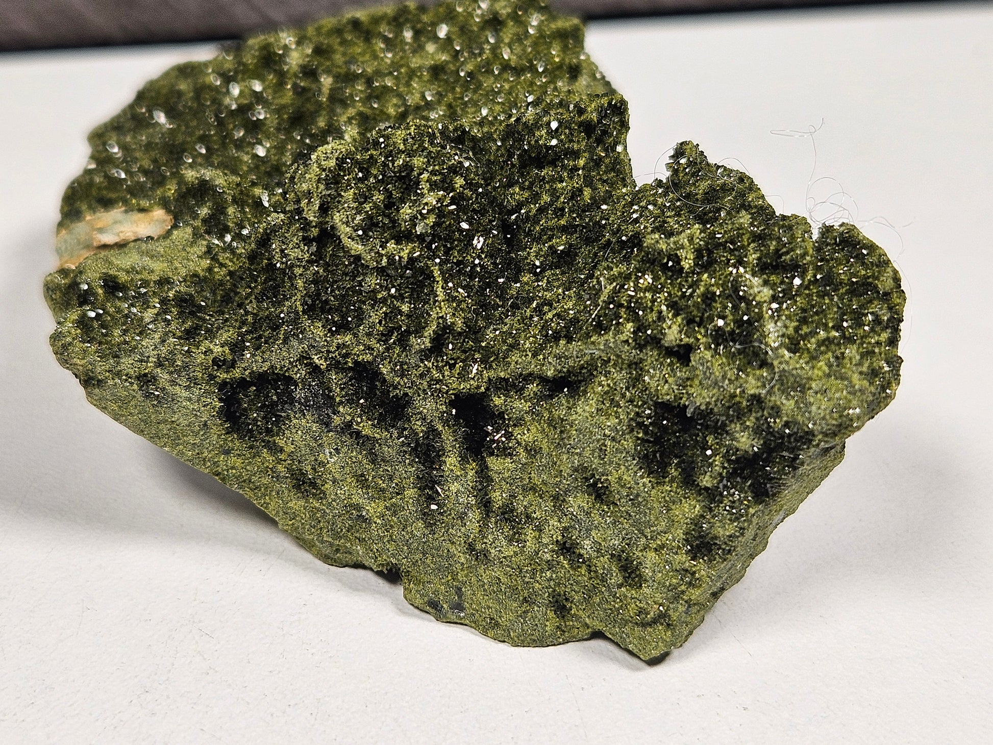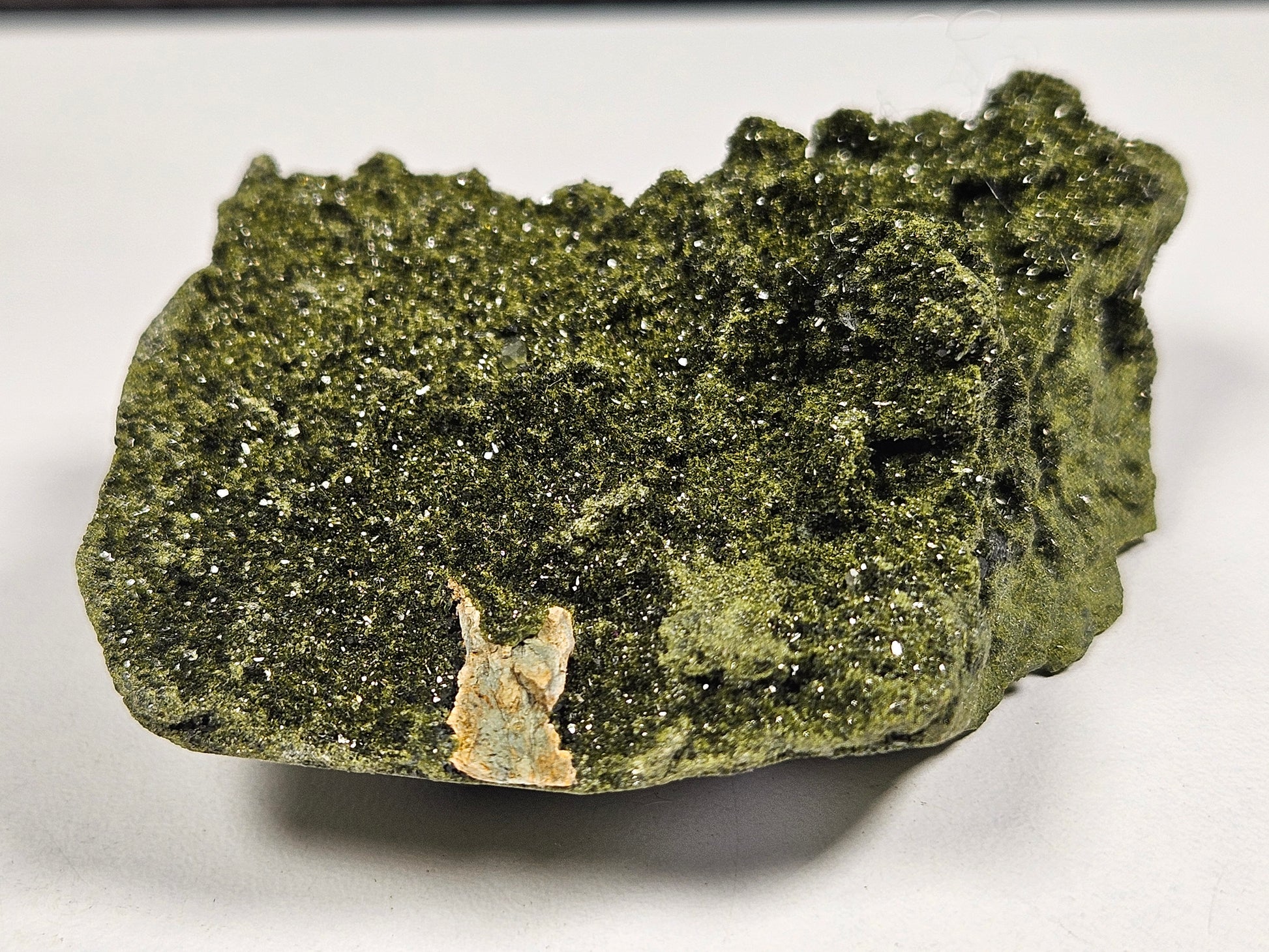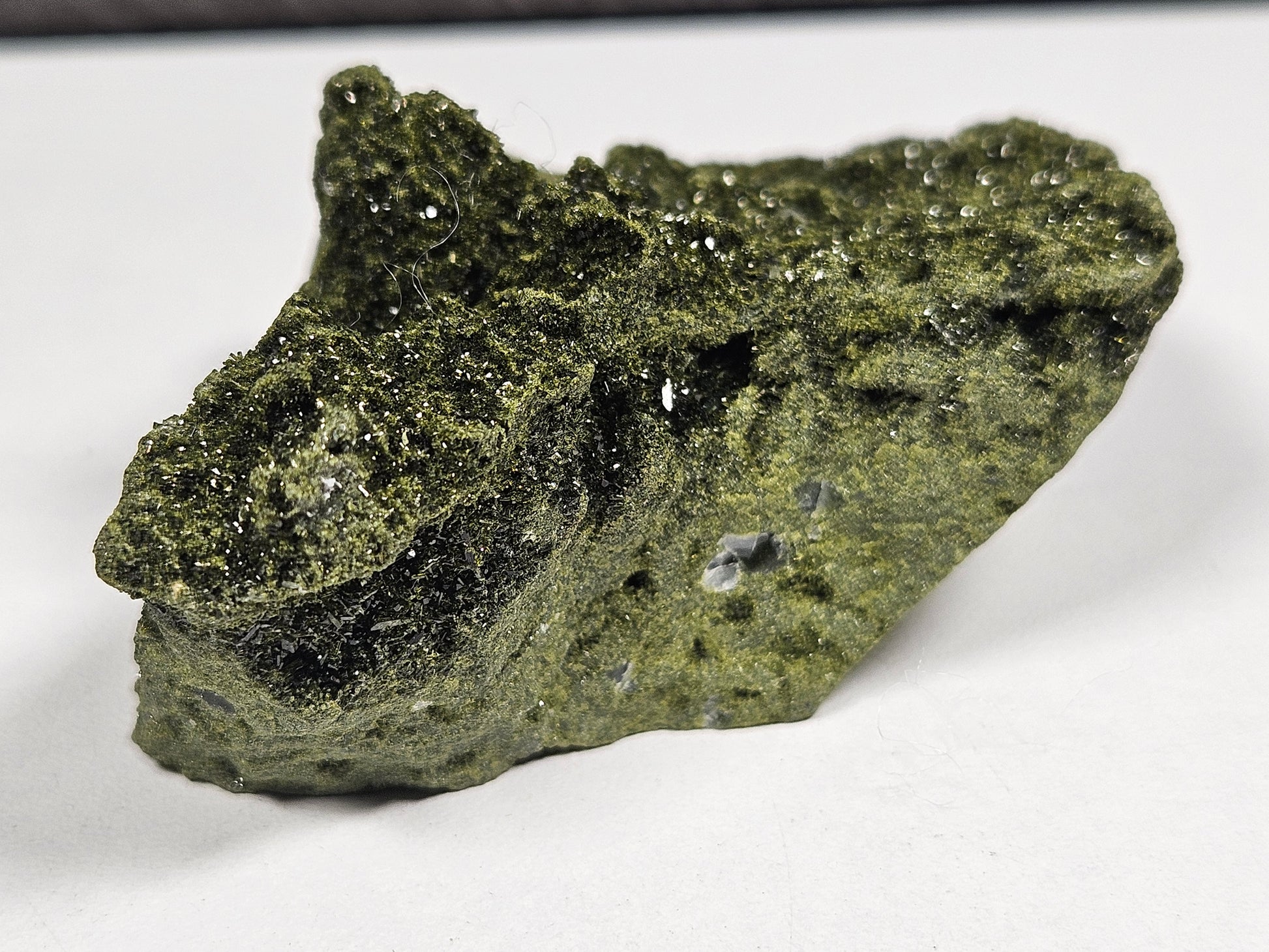 Dit ruwe stuk Forest Epidoot van hoge kwaliteit is een compact maar krachtig natuurproduct met een mooie natuurlijke glans en duidelijk zichtbare kristalstructuren. Met een gewicht van 108 gram en een afmeting van circa 8 x 5,5 cm is dit een handzaam exemplaar dat opvalt door zijn sprankelende oppervlak en ruwe uitstraling.