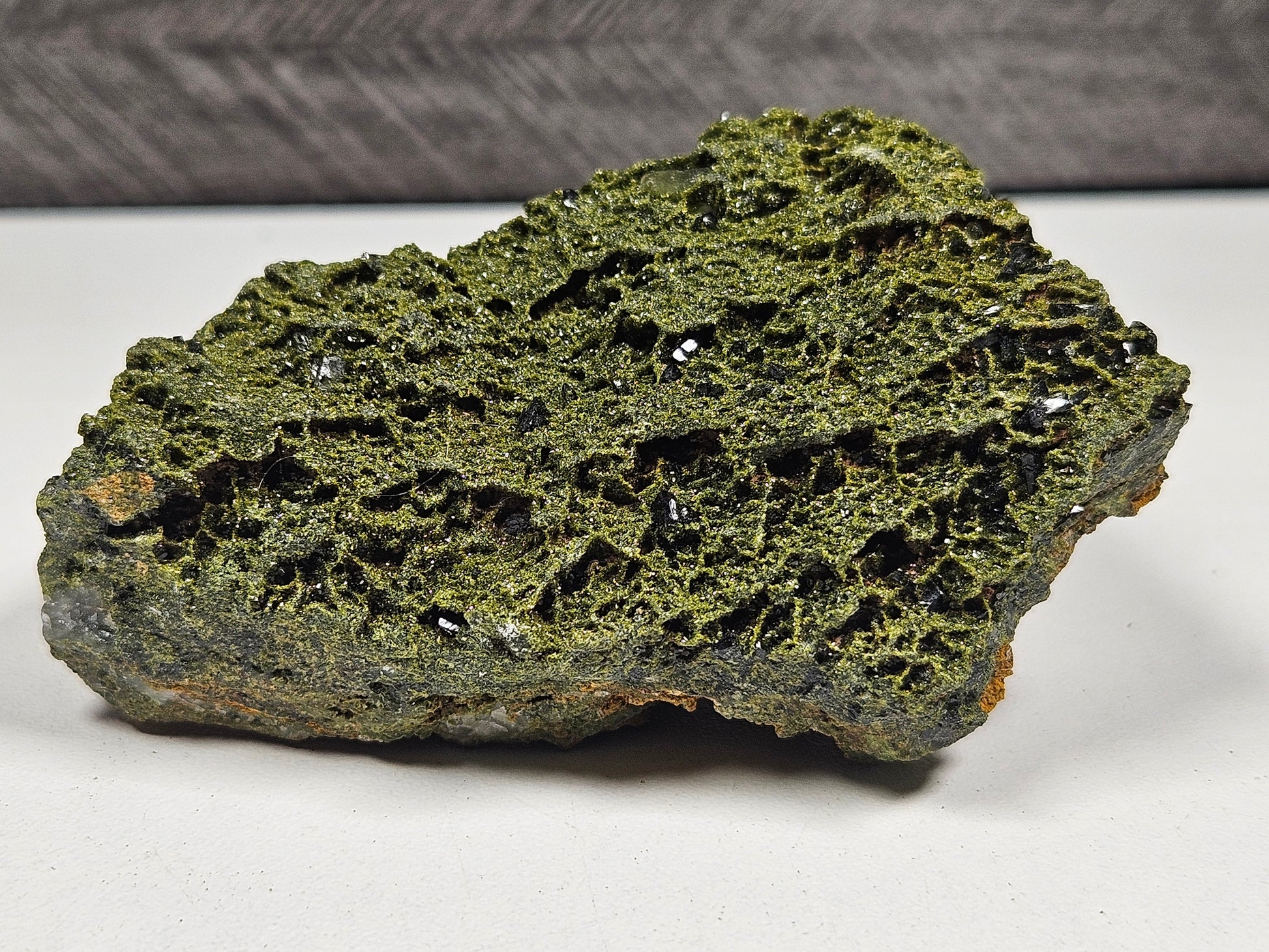 Dit ruwe stuk Forest Epidoot van high quality is een krachtig en visueel aantrekkelijk natuurproduct met een mooie natuurlijke glans. Met een gewicht van 128 gram en een afmeting van circa 8 x 5,5 cm is dit een compact maar opvallend stuk dat zich uitstekend leent voor zowel verzamelaars als energetisch werk. De natuurlijke kristalstructuren geven het oppervlak een sprankelend effect en benadrukken de hoge kwaliteit van dit exemplaar.