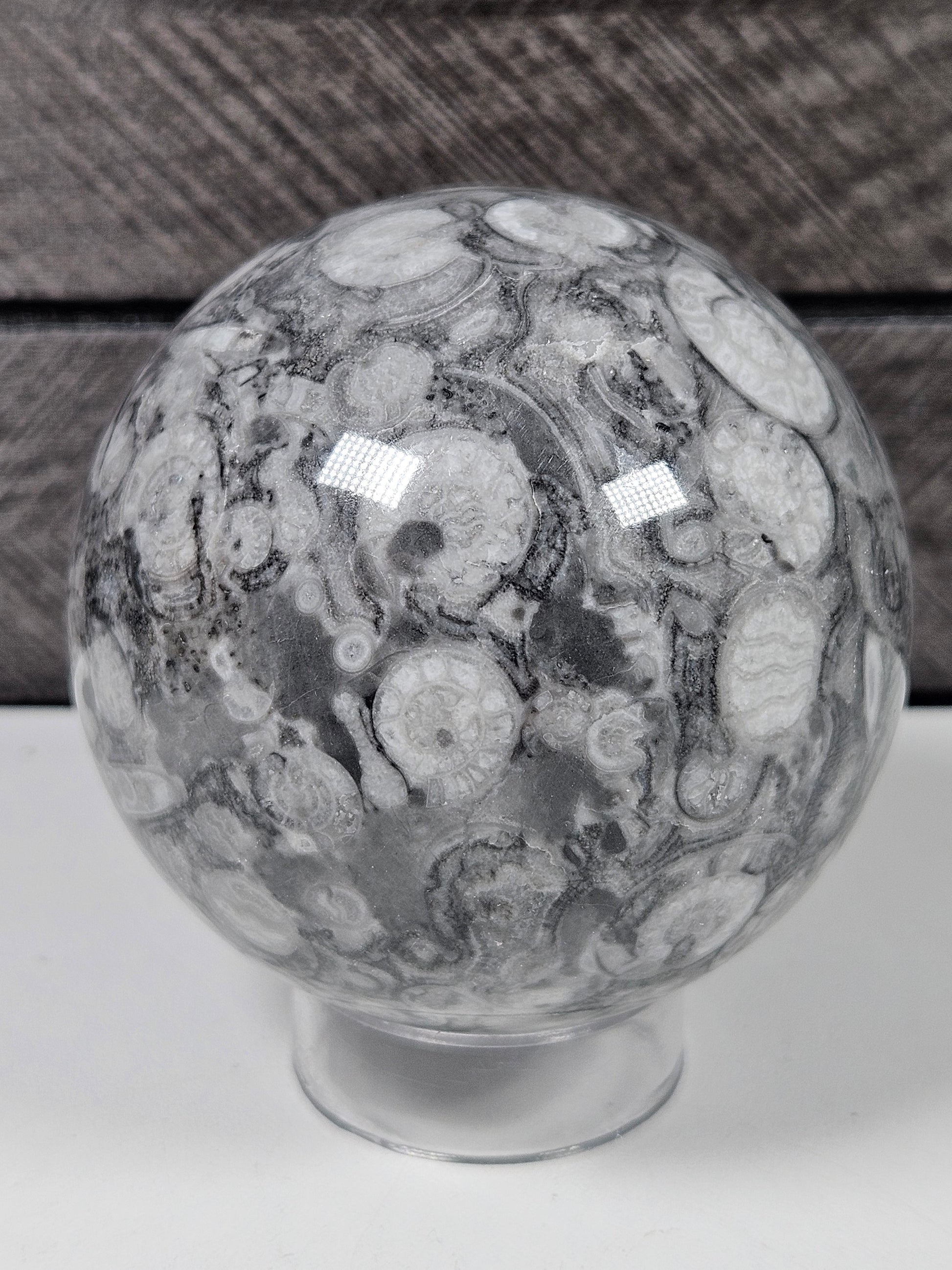 Deze fossiel jaspis bol is een bijzondere edelsteen met unieke natuurlijke patronen die zijn ontstaan door fossiele structuren in de steen. De warme aardse tinten en natuurlijke tekeningen geven de bol een karaktervolle en rustgevende uitstraling. Door de bolvorm komen de patronen van de steen vanuit elke hoek prachtig tot hun recht.