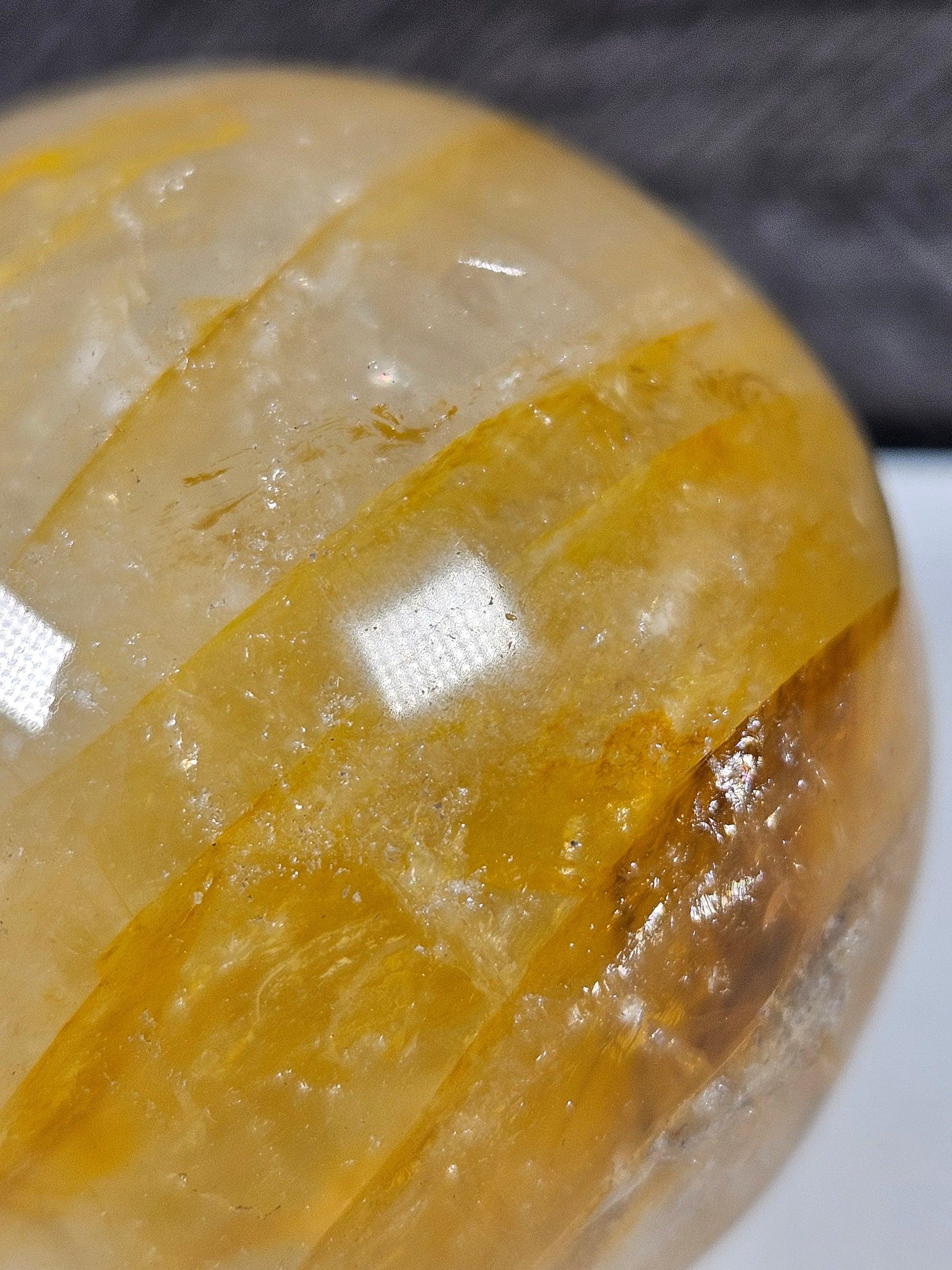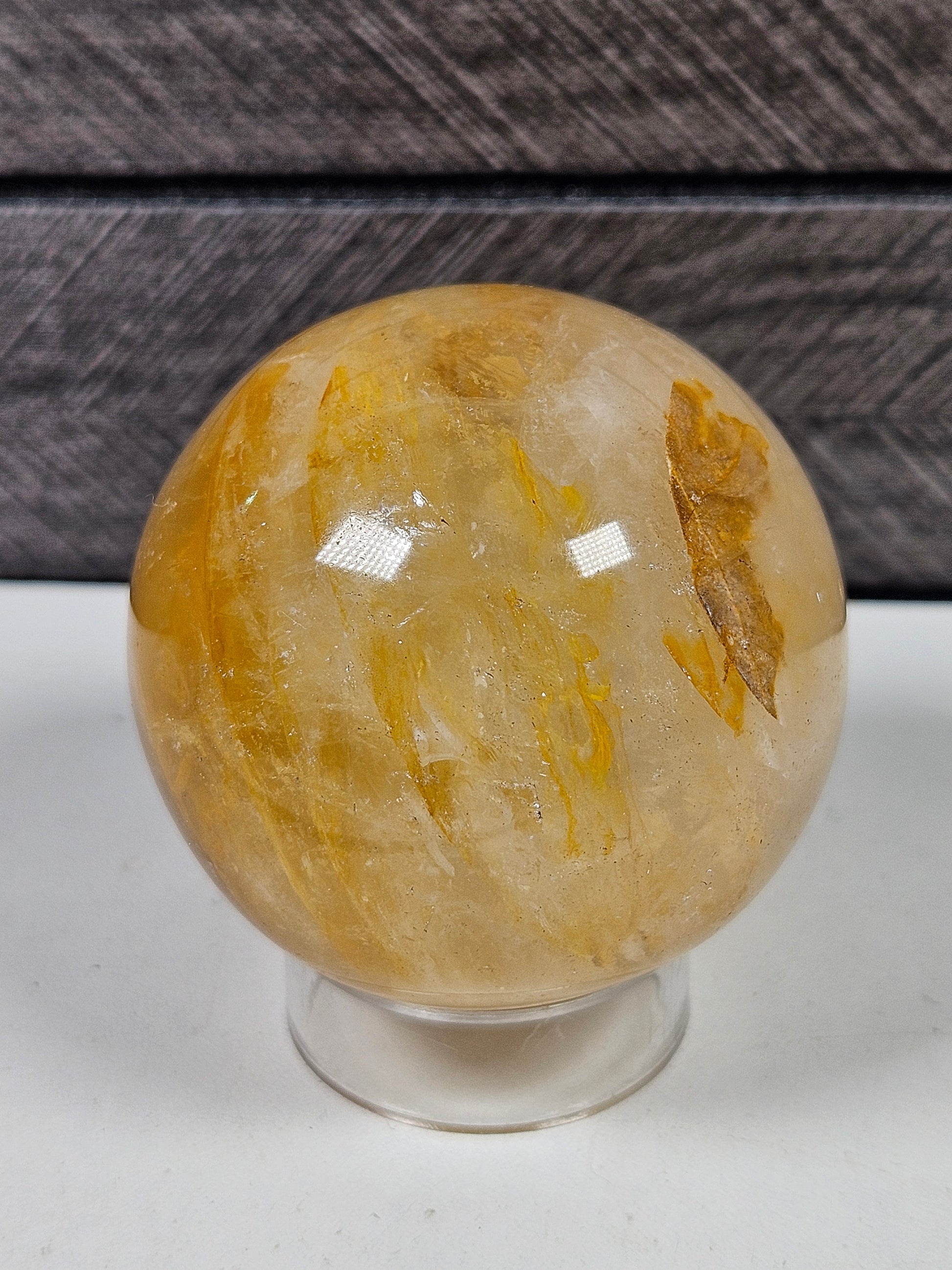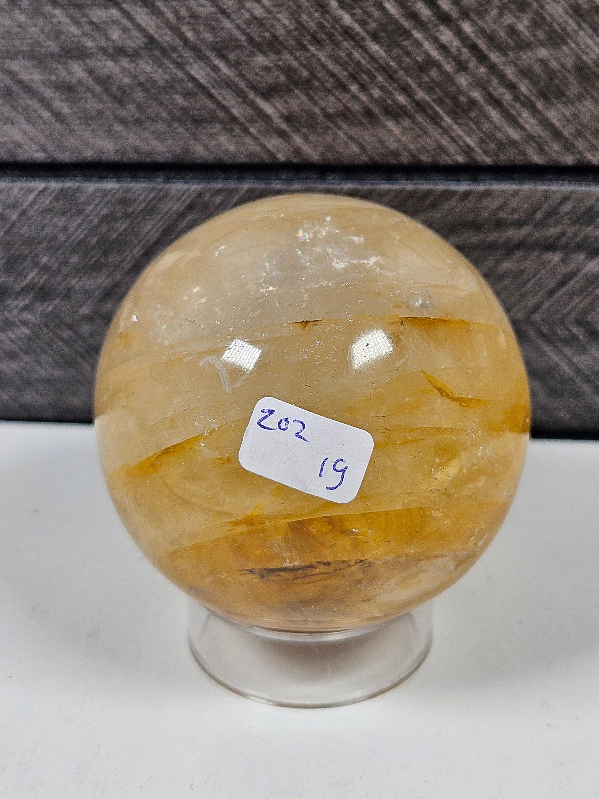 Deze warme en harmoniserende Golden Healer bol straalt zachte, helende energie uit met haar goudgele tot honingkleurige tinten en natuurlijke insluitsels. Met een gewicht van 202 gram en een diameter van 5,2 cm is deze bol compact maar krachtig, perfect voor je altaar, meditatieplek of edelstenencollectie.