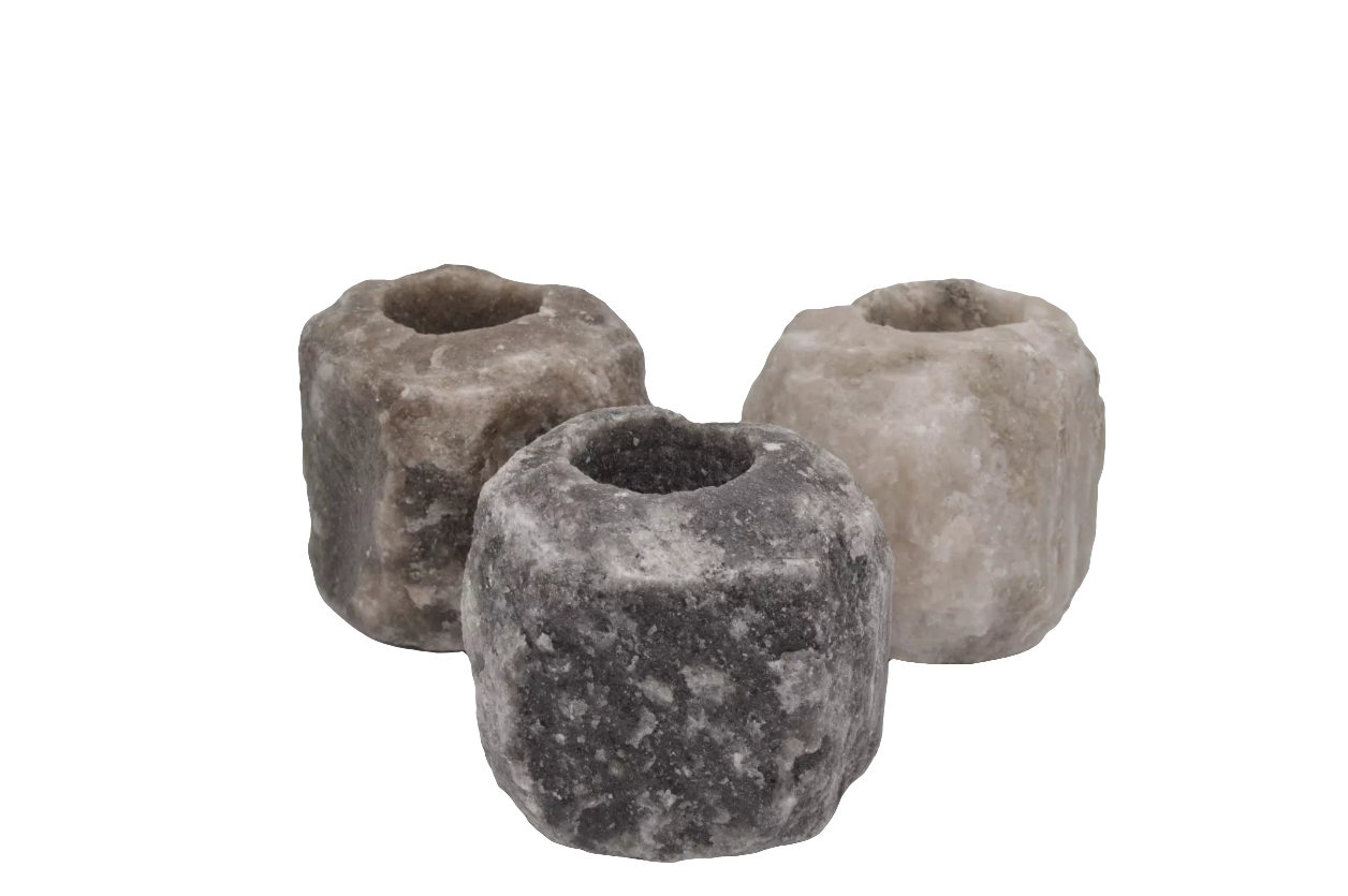 Kleurverschillen: De kleur van de waxinehouder kan variëren van licht grijs tot donker grijs, afhankelijk van de minerale samenstelling van het specifieke zoutkristal.