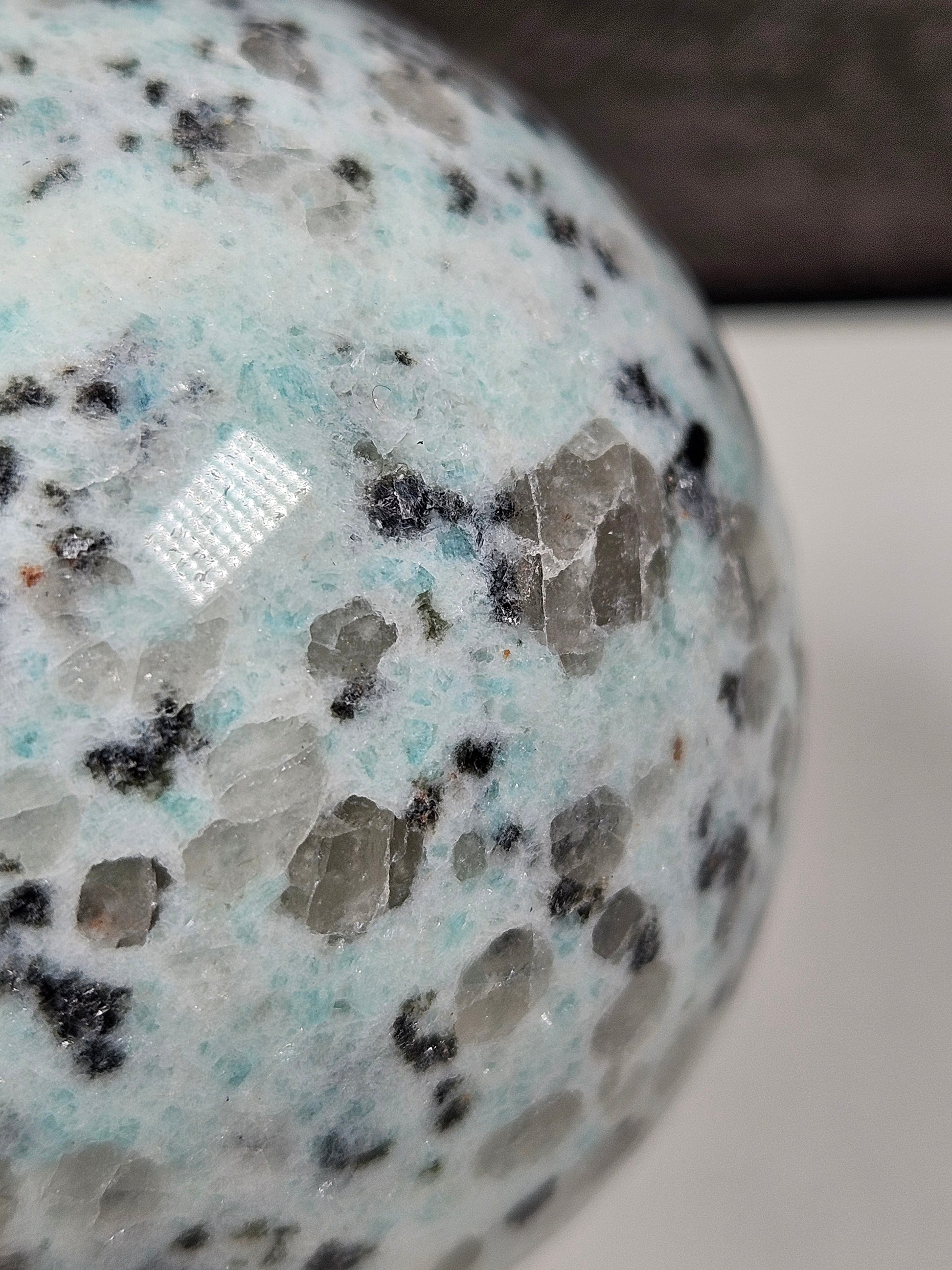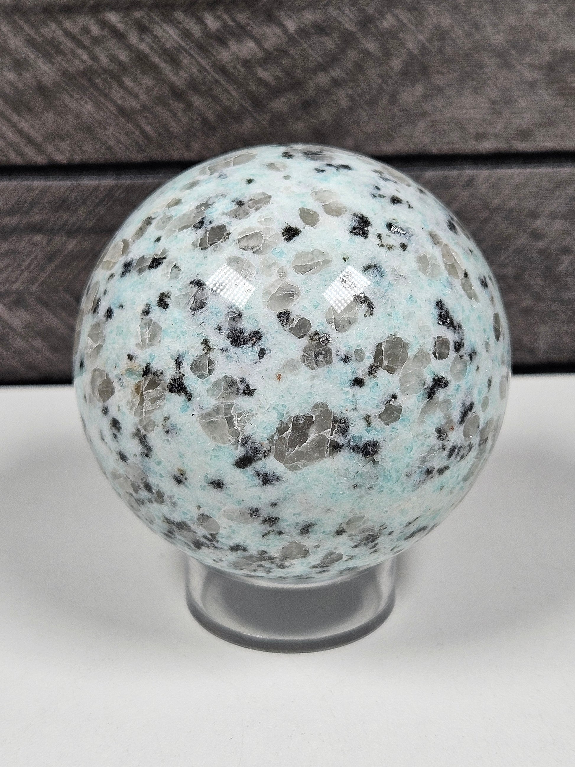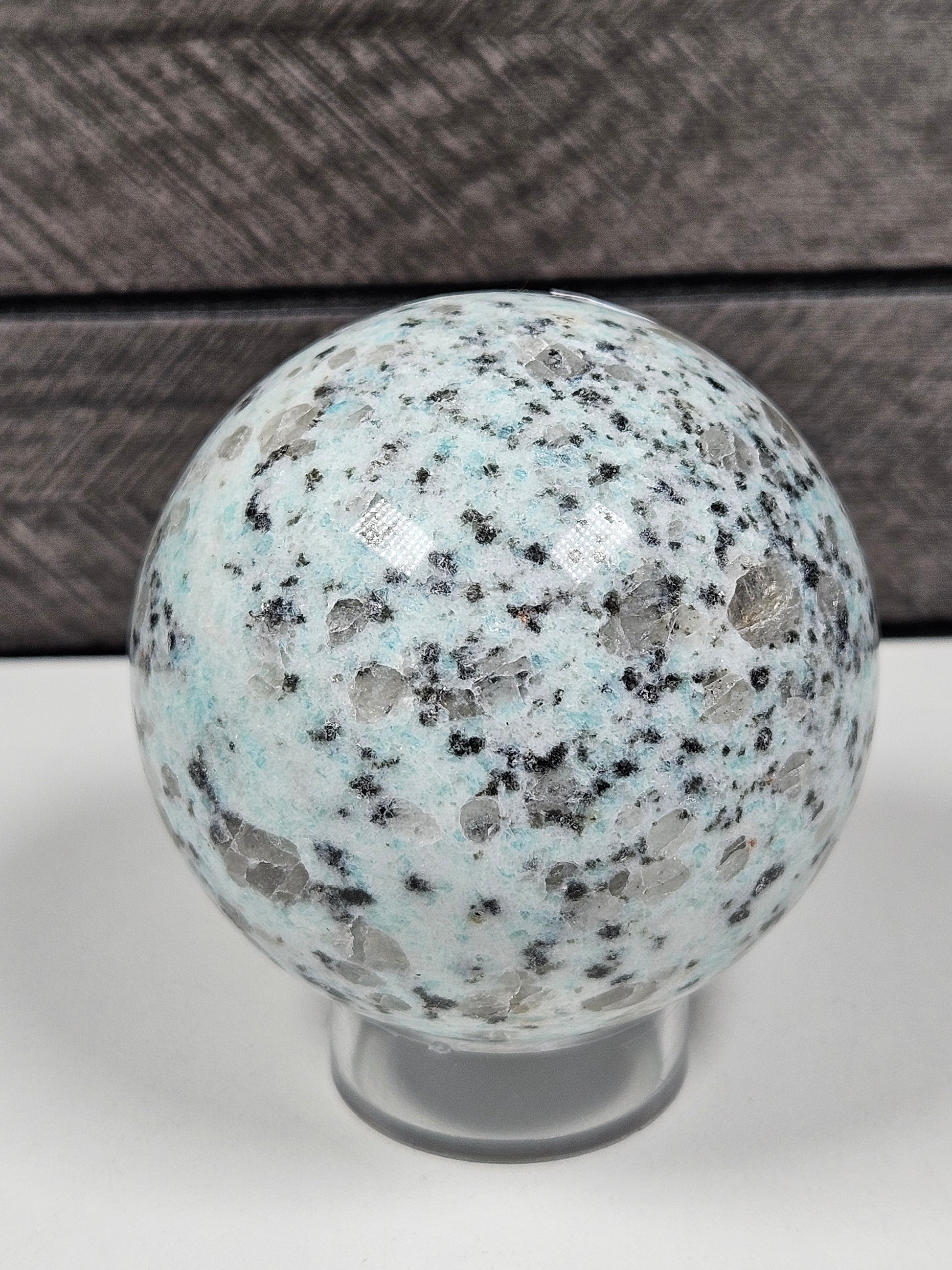 Dit specifieke exemplaar heeft een unieke kleurverdeling en natuurlijke structuur. Door het prettige formaat is de bol ideaal voor plaatsing op een bolhouder, bureau, plank of als onderdeel van een edelstenenverzameling.