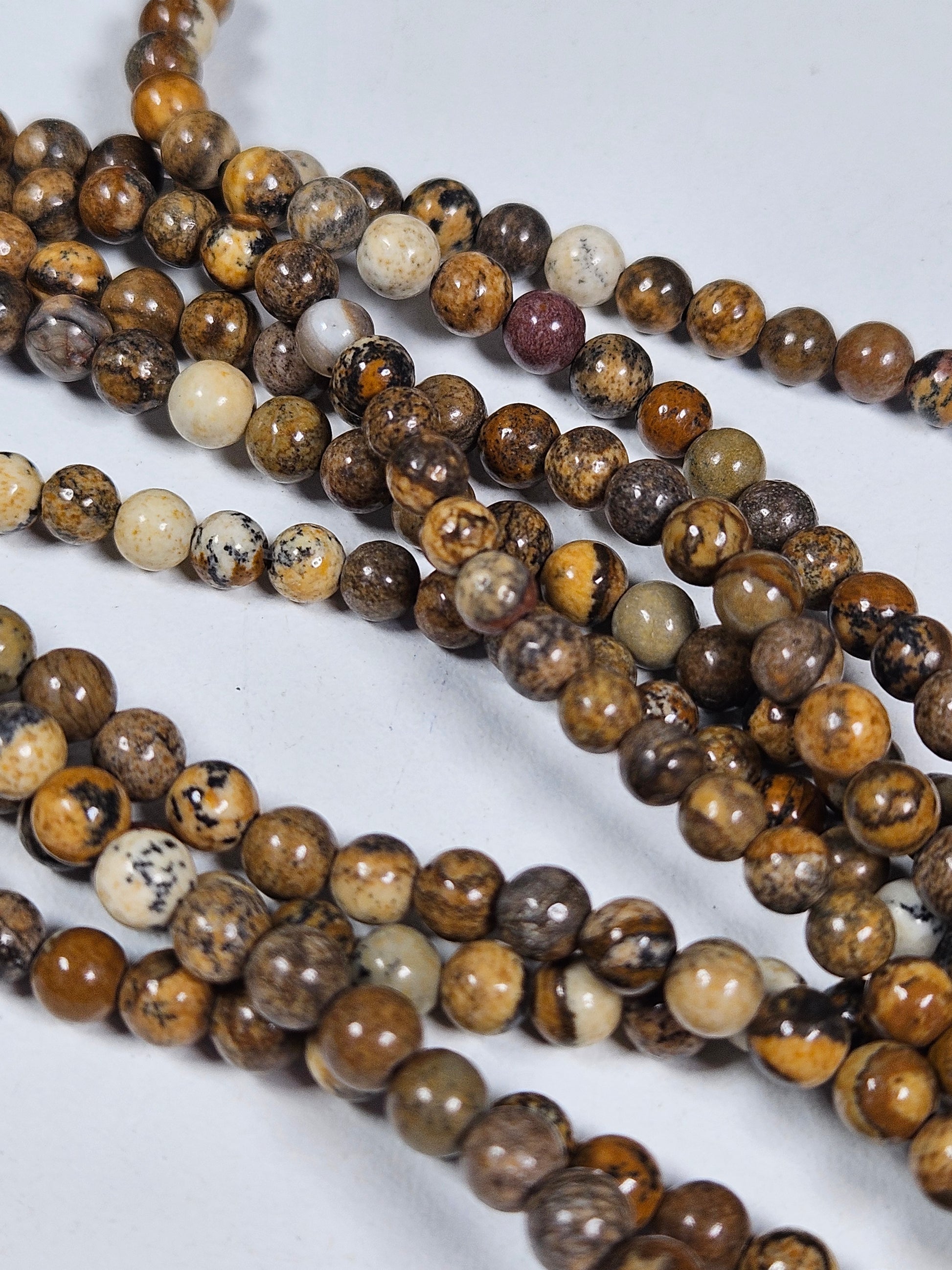 Deze kralenstreng met 4 mm Landschapsjaspis kralen is perfect voor creatieve makers en DIY-liefhebbers. De kralen zijn zorgvuldig geregen op een streng van ongeveer 40 cm, waardoor ze ideaal zijn voor het maken van fijne armbanden, kettingen, oorbellen en andere handgemaakte sieraden.