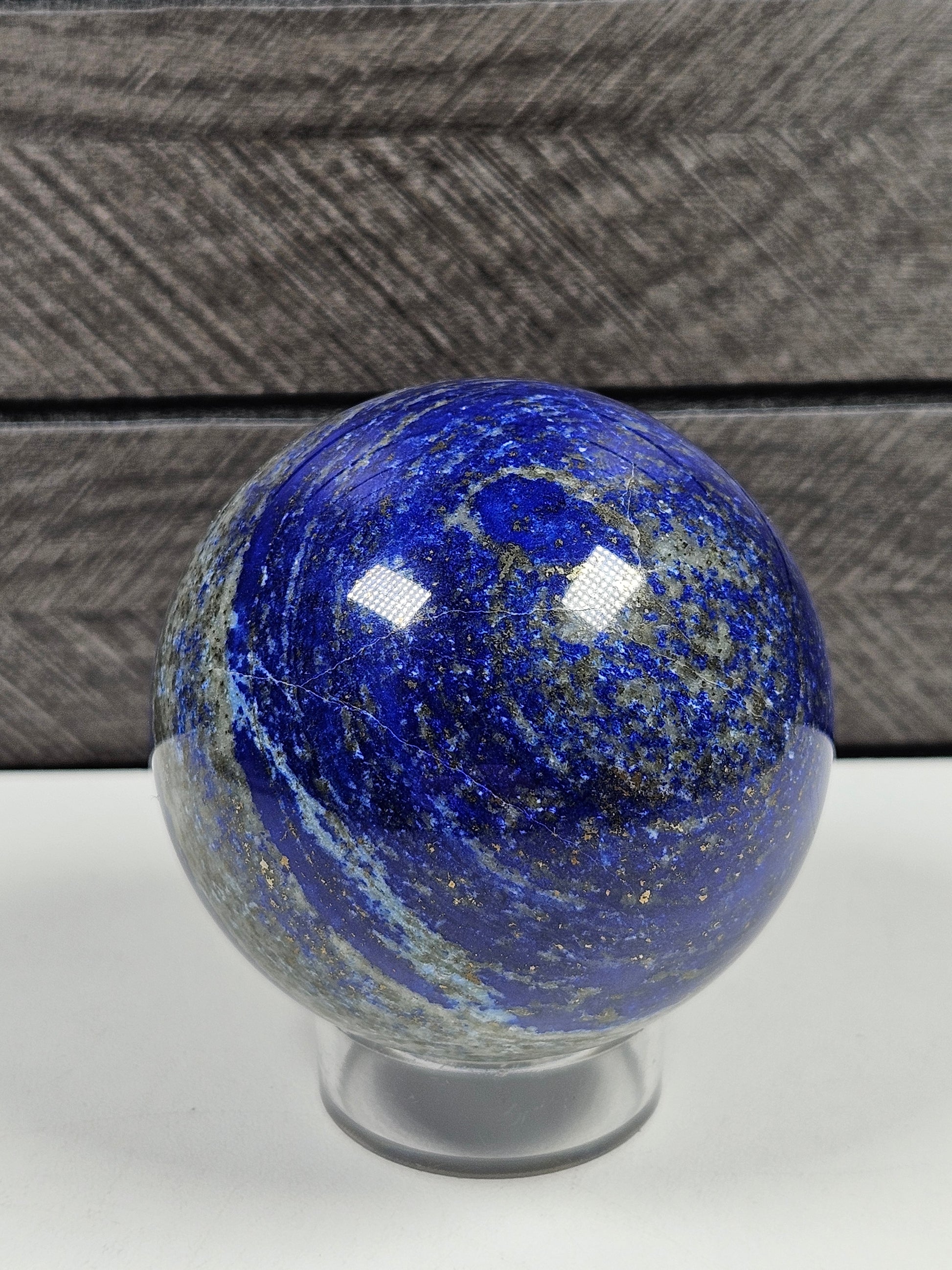 Elke Lapis lazuli bol is uniek. De natuurlijke variaties in kleur, structuur en pyrietaders maken dit een bijzonder decoratief en energetisch waardevol item. De afgebeelde bol is het exacte exemplaar dat geleverd wordt.