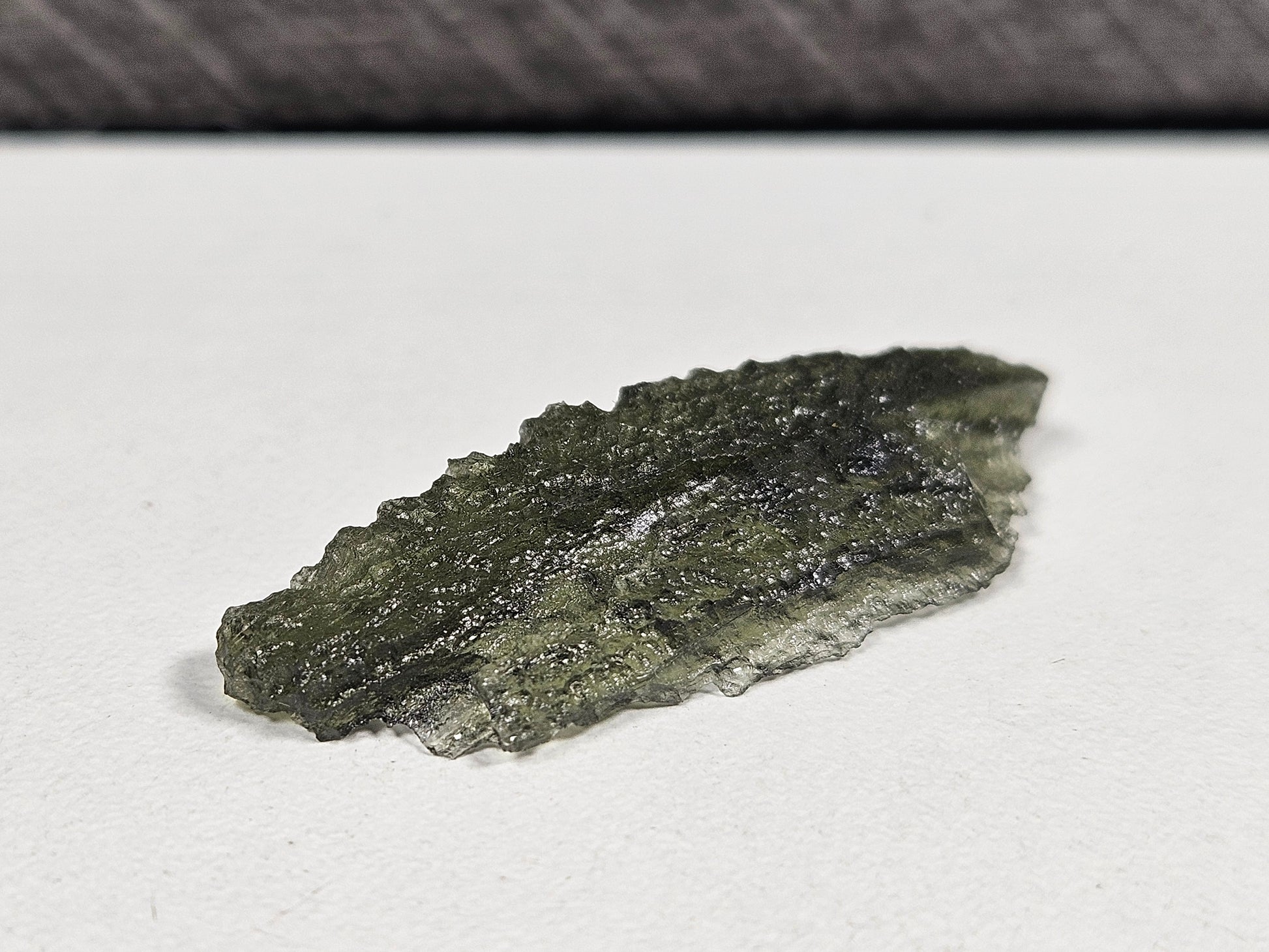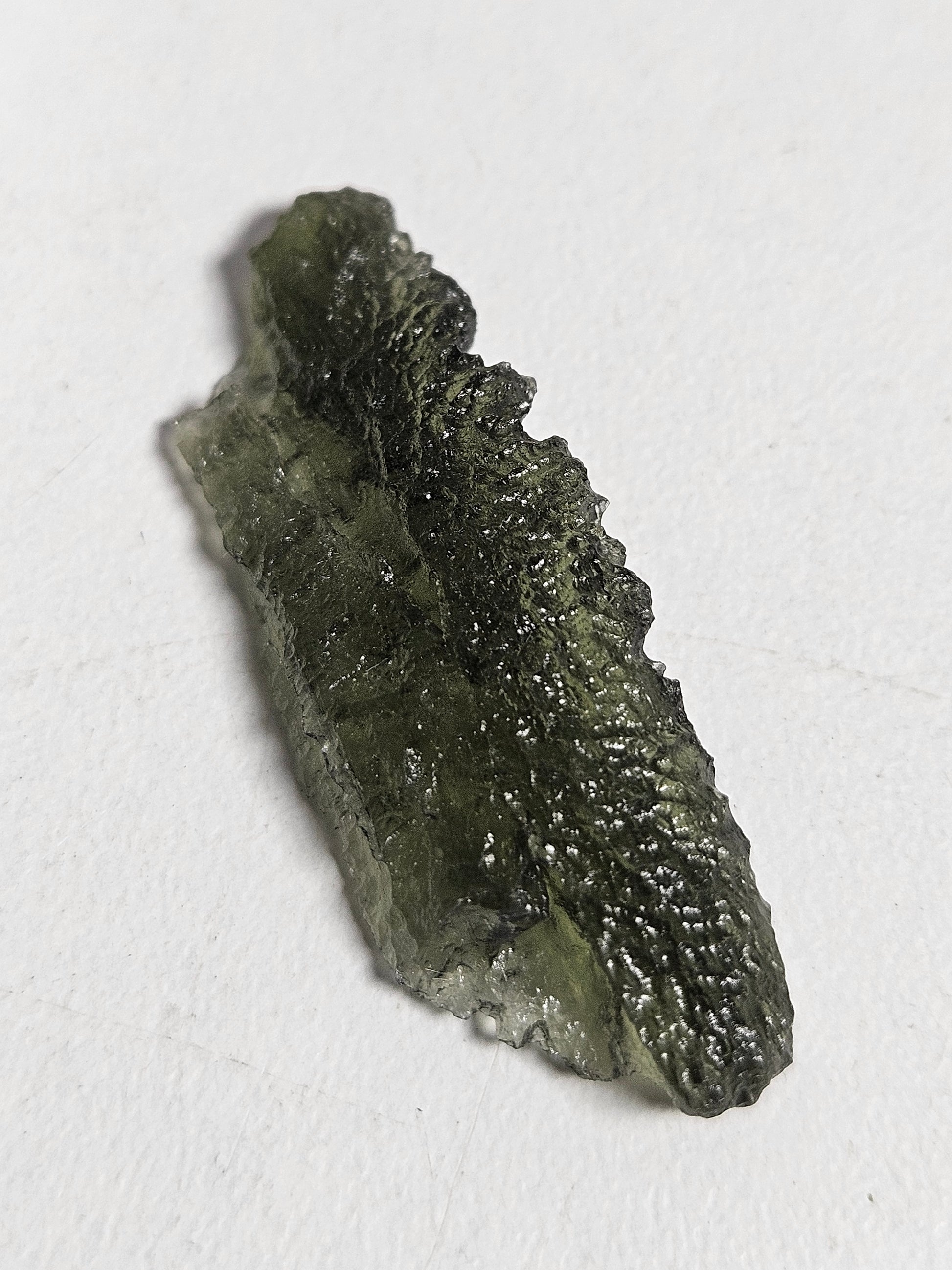 Dit ruwe stukje Moldaviet is een zeldzaam en bijzonder natuurproduct met een gewicht van 2 gram en een afmeting van circa 3,5 x 1,5 cm. Moldaviet staat bekend om zijn karakteristieke groen-transparante kleur en ruwe, grillige structuur die is ontstaan door een meteorietinslag. Het compacte formaat maakt dit stuk geschikt voor verzamelaars, energetisch werk of om bij je te dragen.