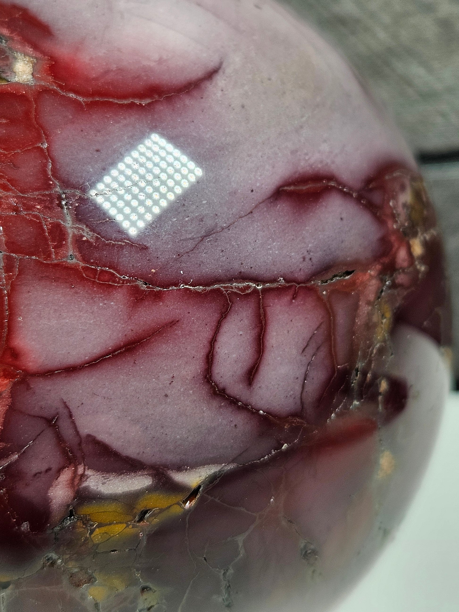 Het betreft een uniek artikel. De Mookaiet bol die je ontvangt, is exact het exemplaar dat op de foto wordt getoond.