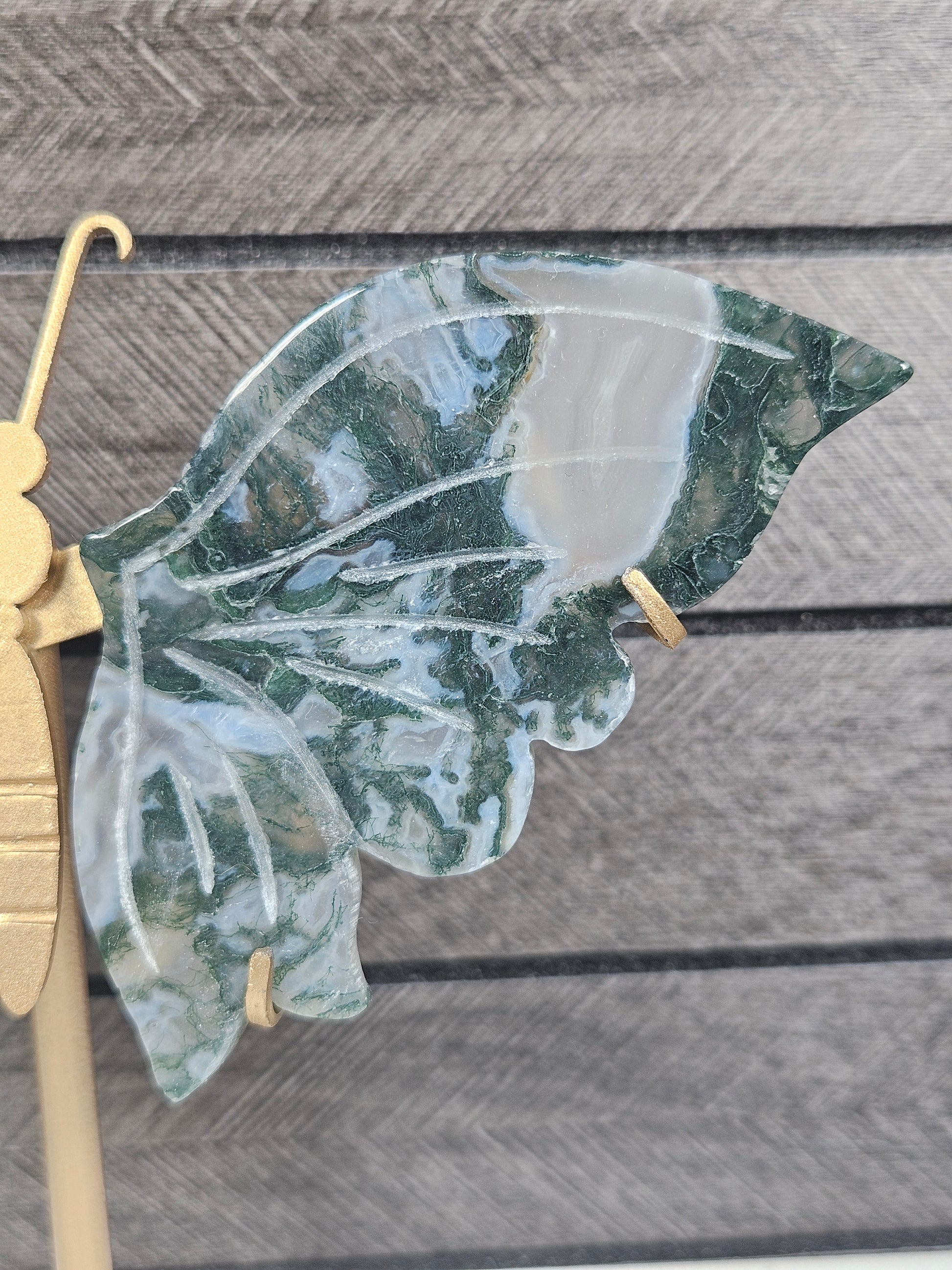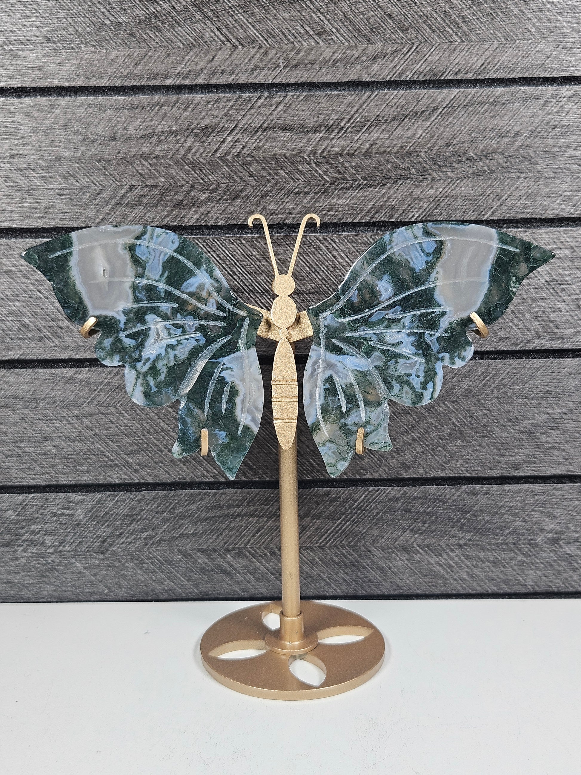 Mosagaat staat bekend als de steen van groei, balans en verbinding met de natuur. De karakteristieke groene insluitsels doen denken aan mos en natuurlijke landschappen, waardoor elke vlinder uniek is in tekening en kleur. Je ontvangt exact het exemplaar dat op de foto staat.