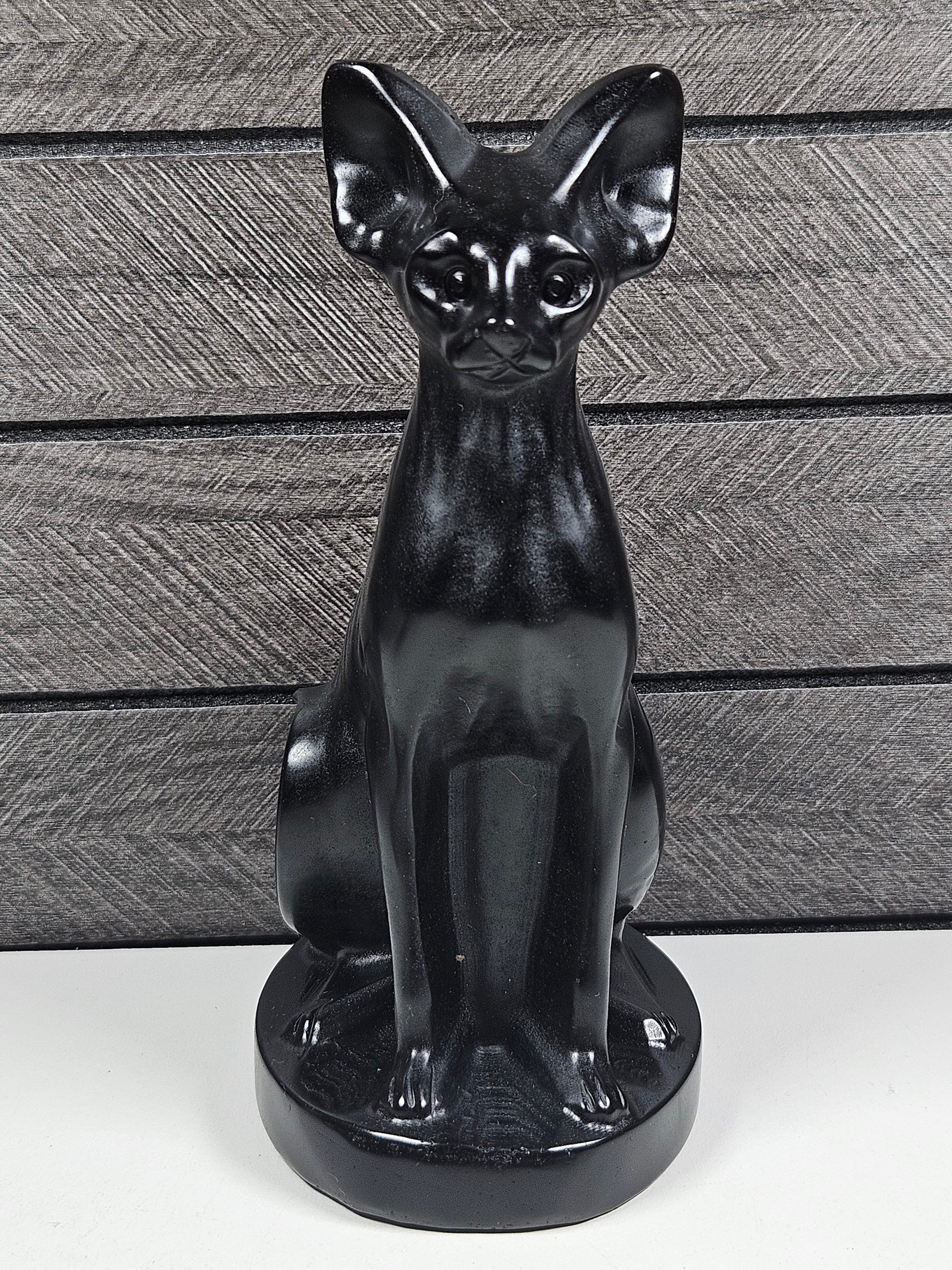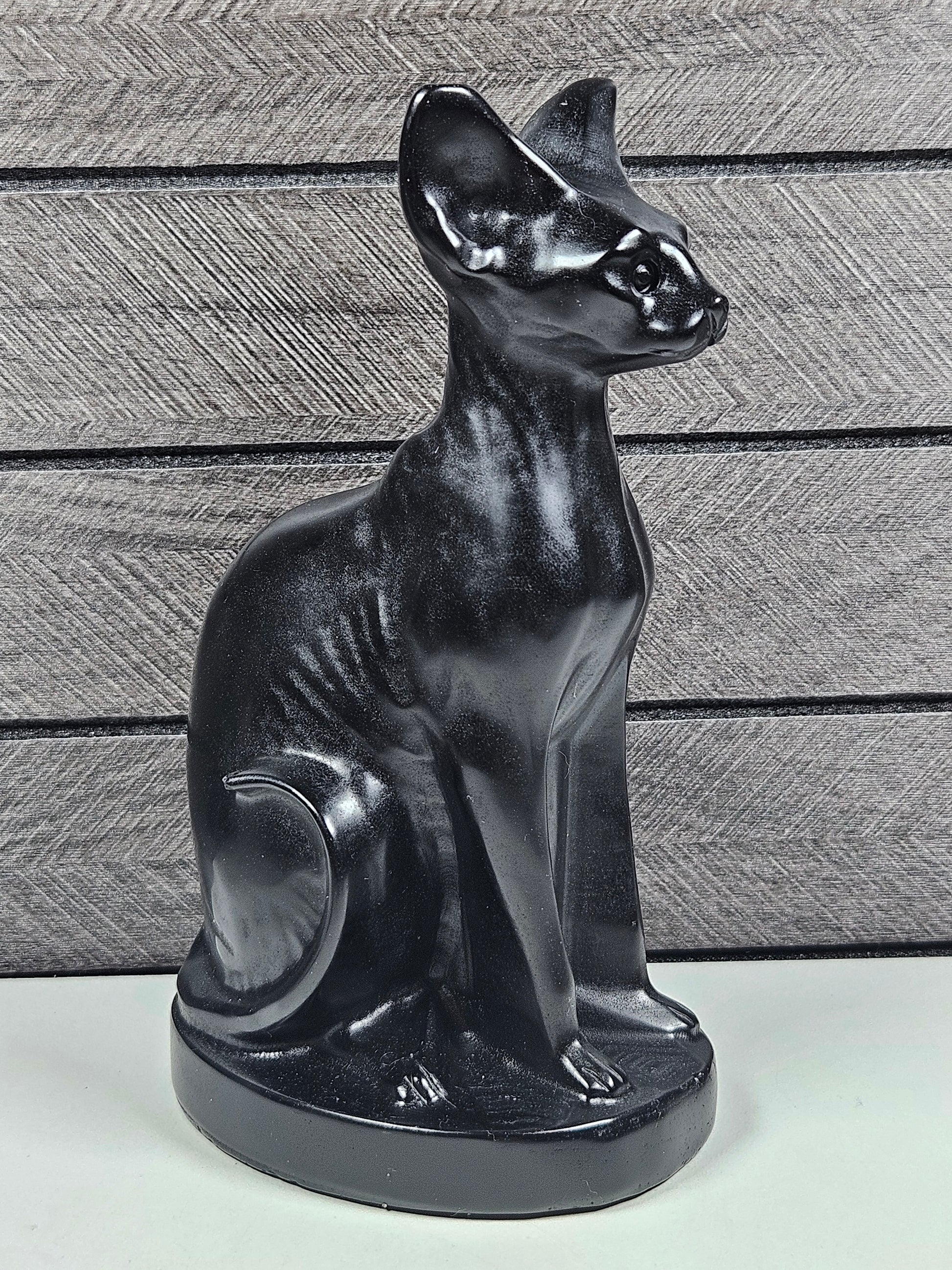 Dit specifieke exemplaar heeft een glad gepolijste afwerking waardoor de diepte en glans van de obsidiaan mooi tot hun recht komen. Door het gewicht en de vorm staat de sfinx stevig en is hij geschikt voor plaatsing op een altaar, plank, bureau of in een meditatiehoek.