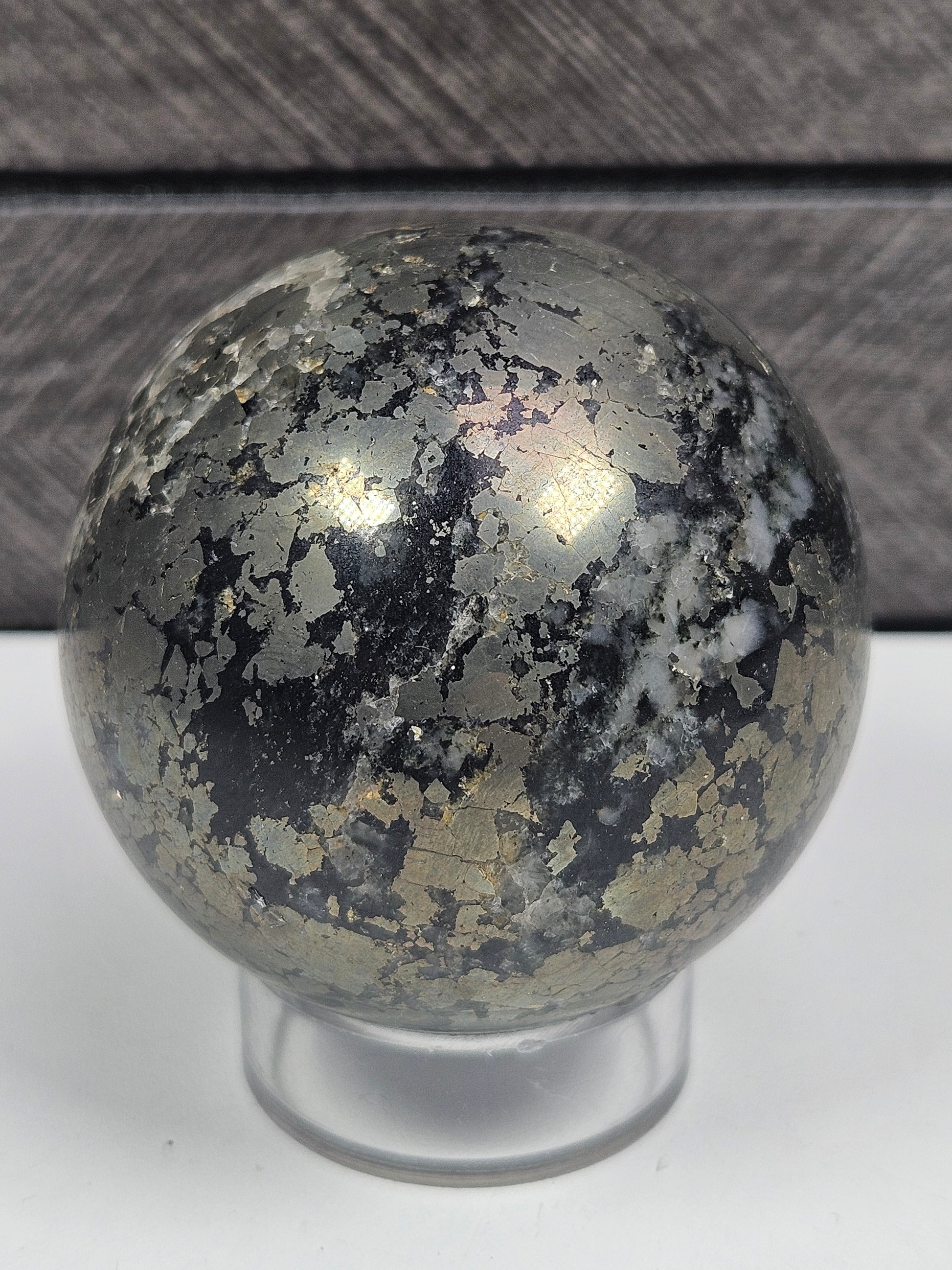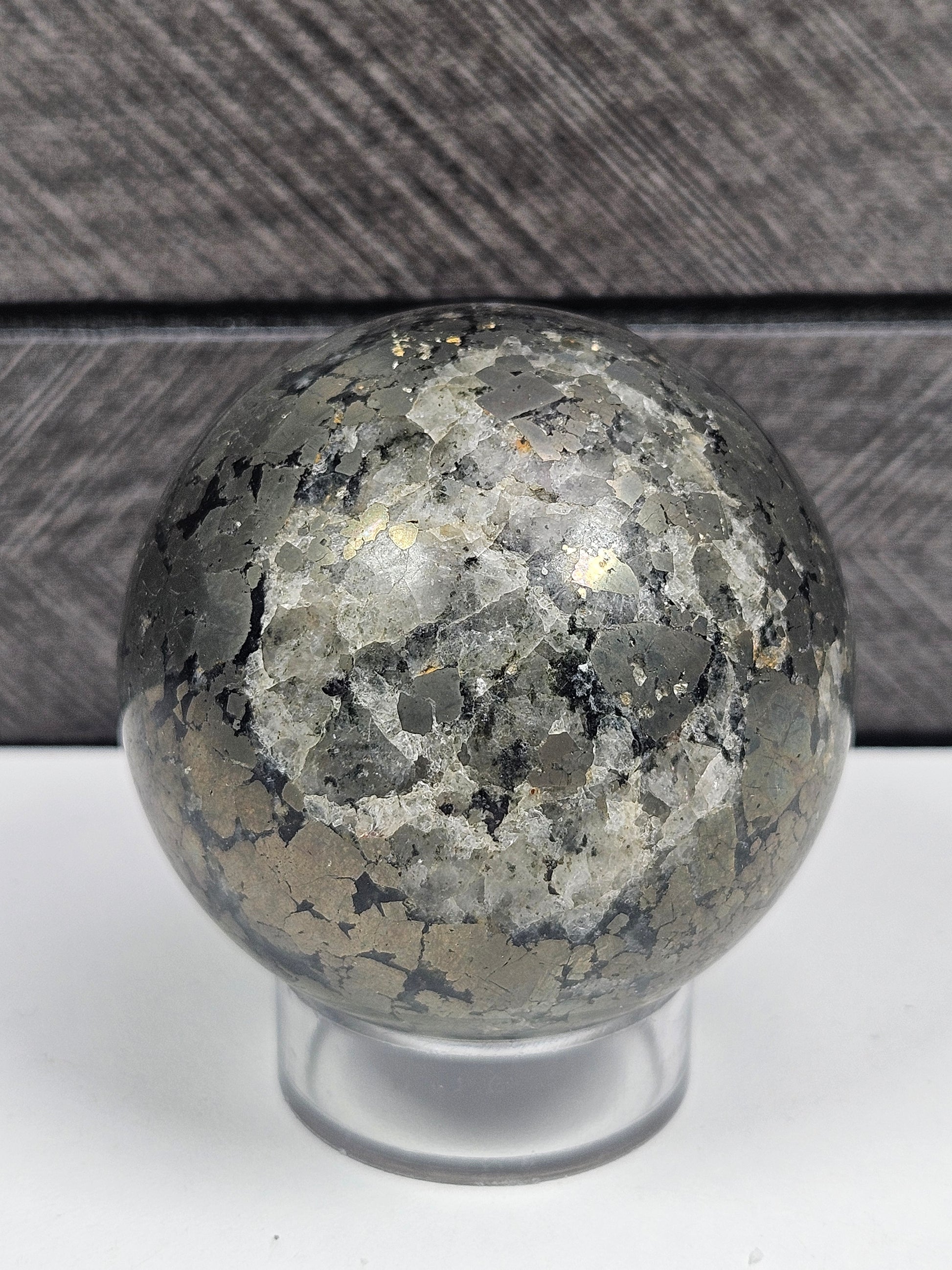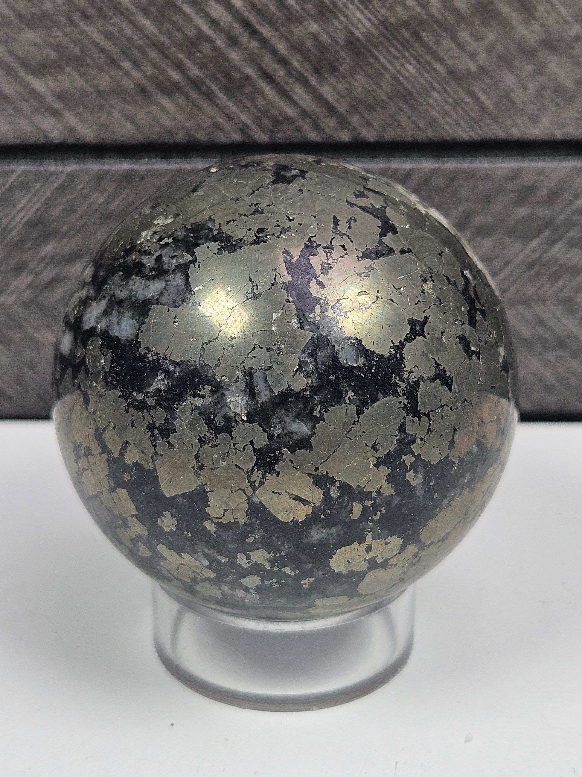 Pyriet wordt traditioneel geassocieerd met bescherming, wilskracht en manifestatiekracht. De steen staat bekend om zijn aardende en versterkende energie en wordt vaak ingezet ter ondersteuning van focus, zelfvertrouwen en daadkracht. Dankzij de bolvorm wordt de energie gelijkmatig in alle richtingen verspreid, wat deze vorm geschikt maakt voor plaatsing in een woonruimte, werkplek of praktijk.