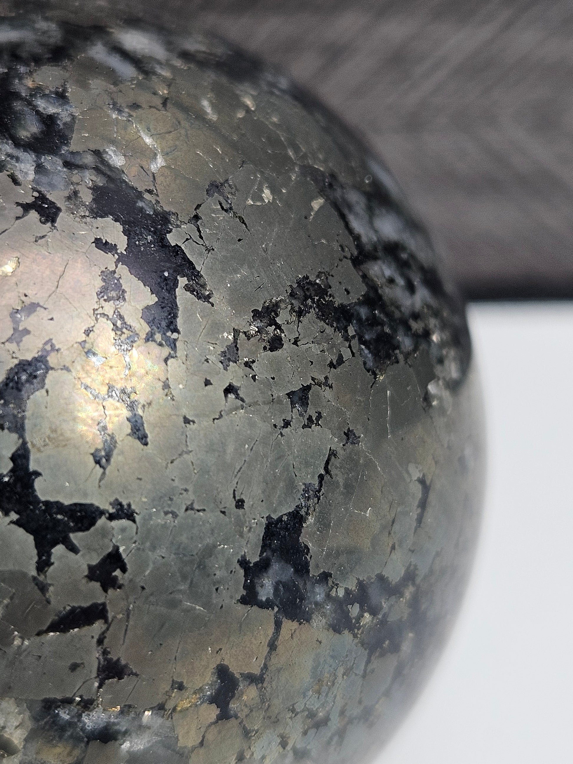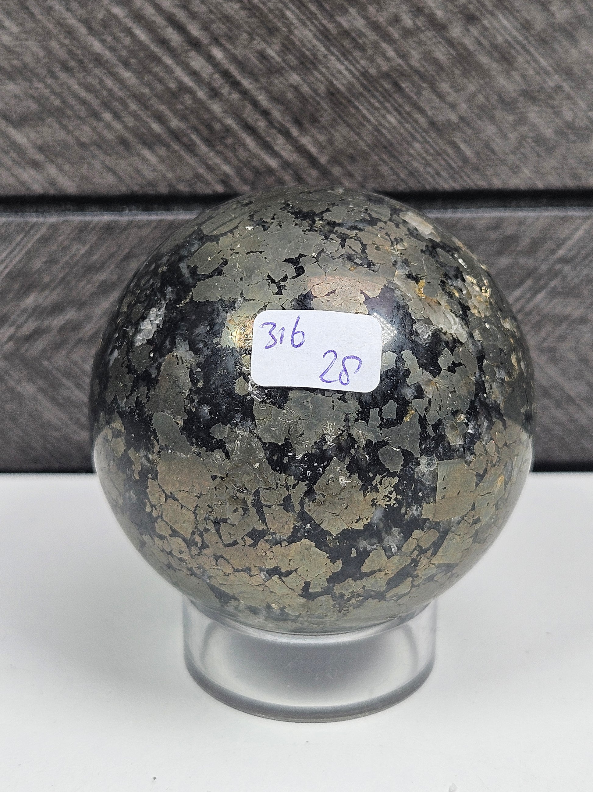 Deze Pyriet bol van 316 gram is een waardevolle aanvulling op het assortiment van Stenen Heksje en een mooie keuze voor liefhebbers van krachtige, beschermende edelstenen.