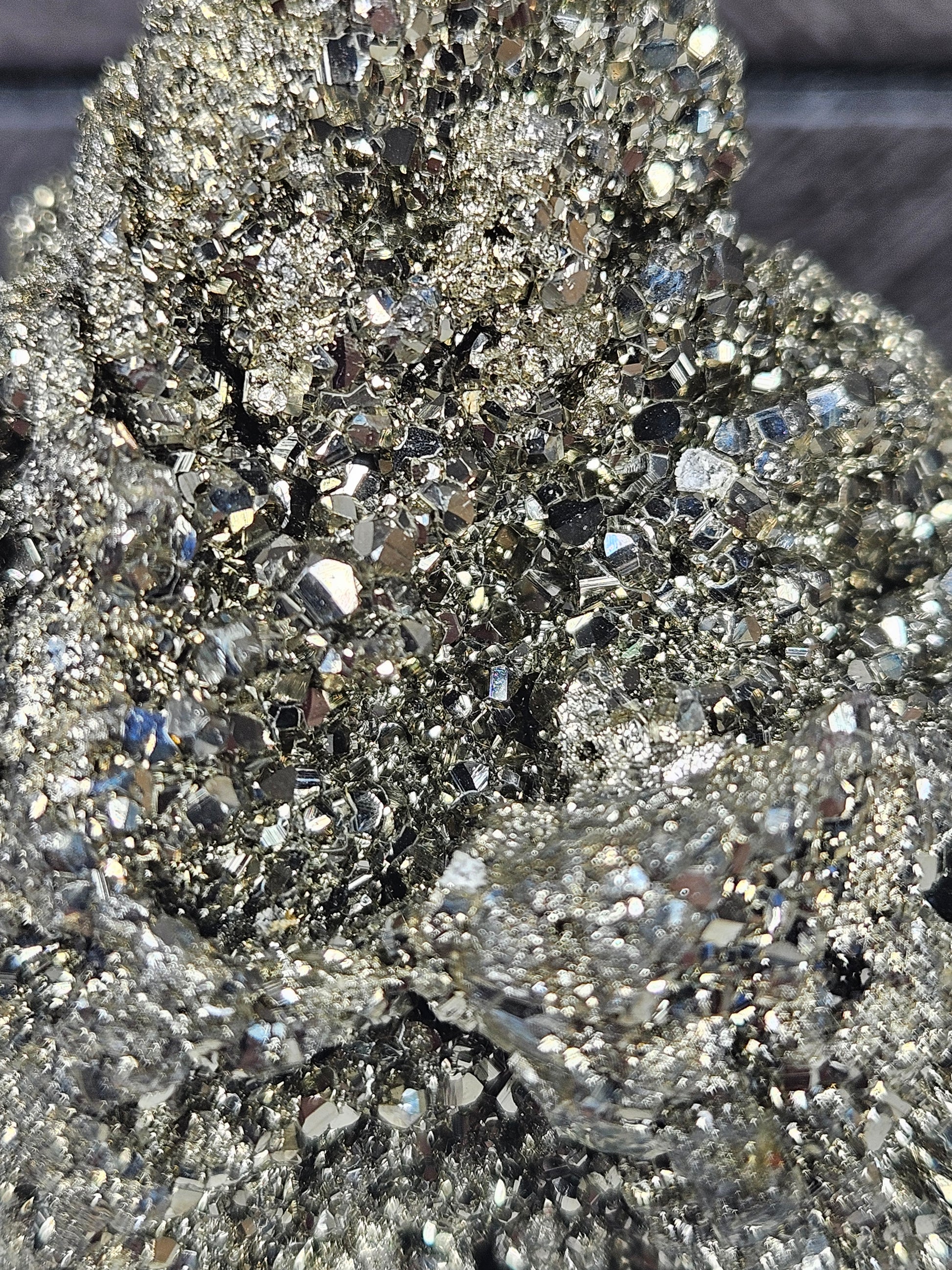 Deze indrukwekkende pyriet op houten basis is een krachtig en decoratief mineraal met een schitterende goudkleurige metallic glans. Met een gewicht van 338 gram, een hoogte van 8,5 cm en een breedte van 6 cm is dit stuk een compacte maar opvallende blikvanger voor je interieur, werkplek, altaar of edelstenencollectie.