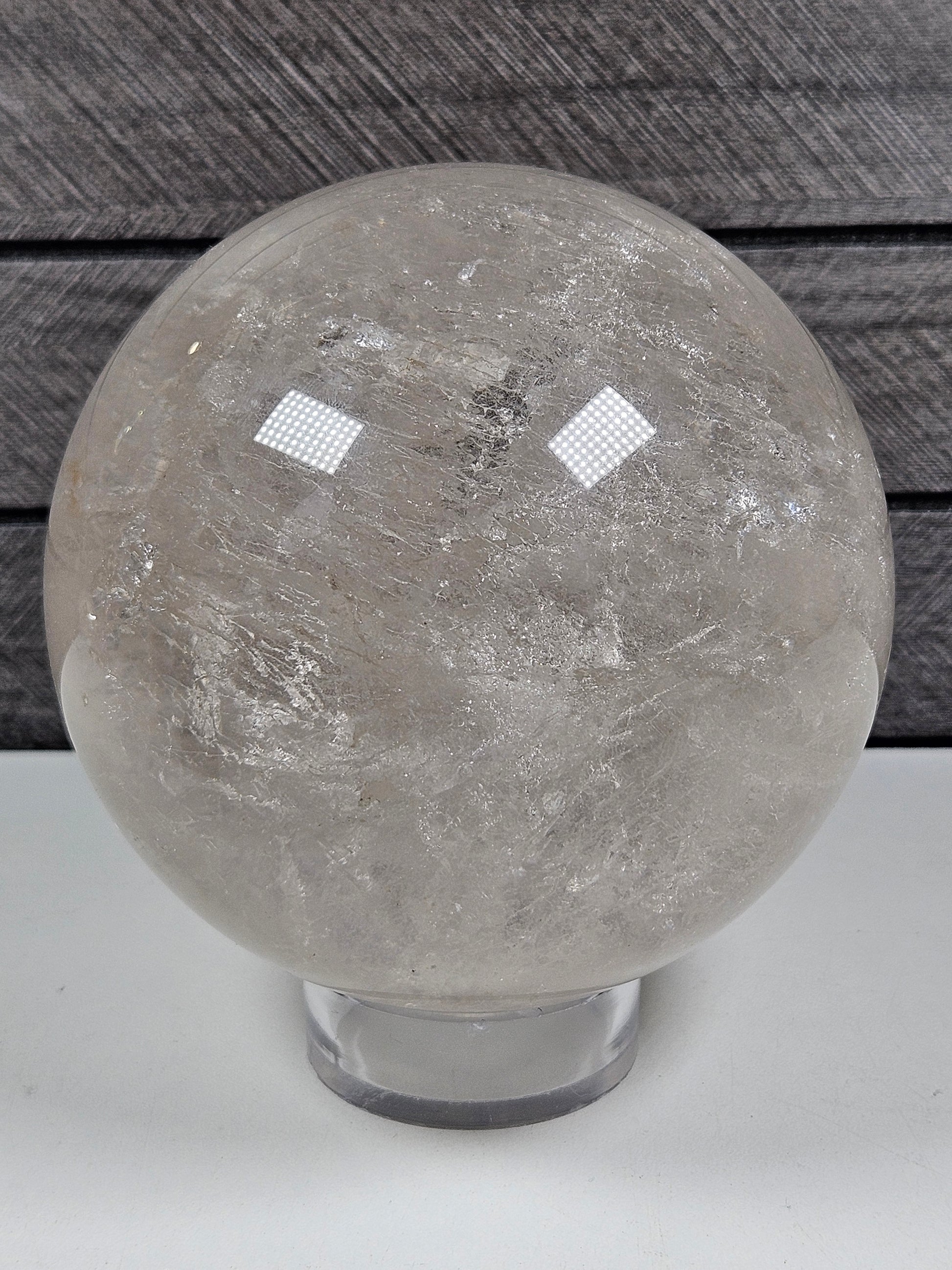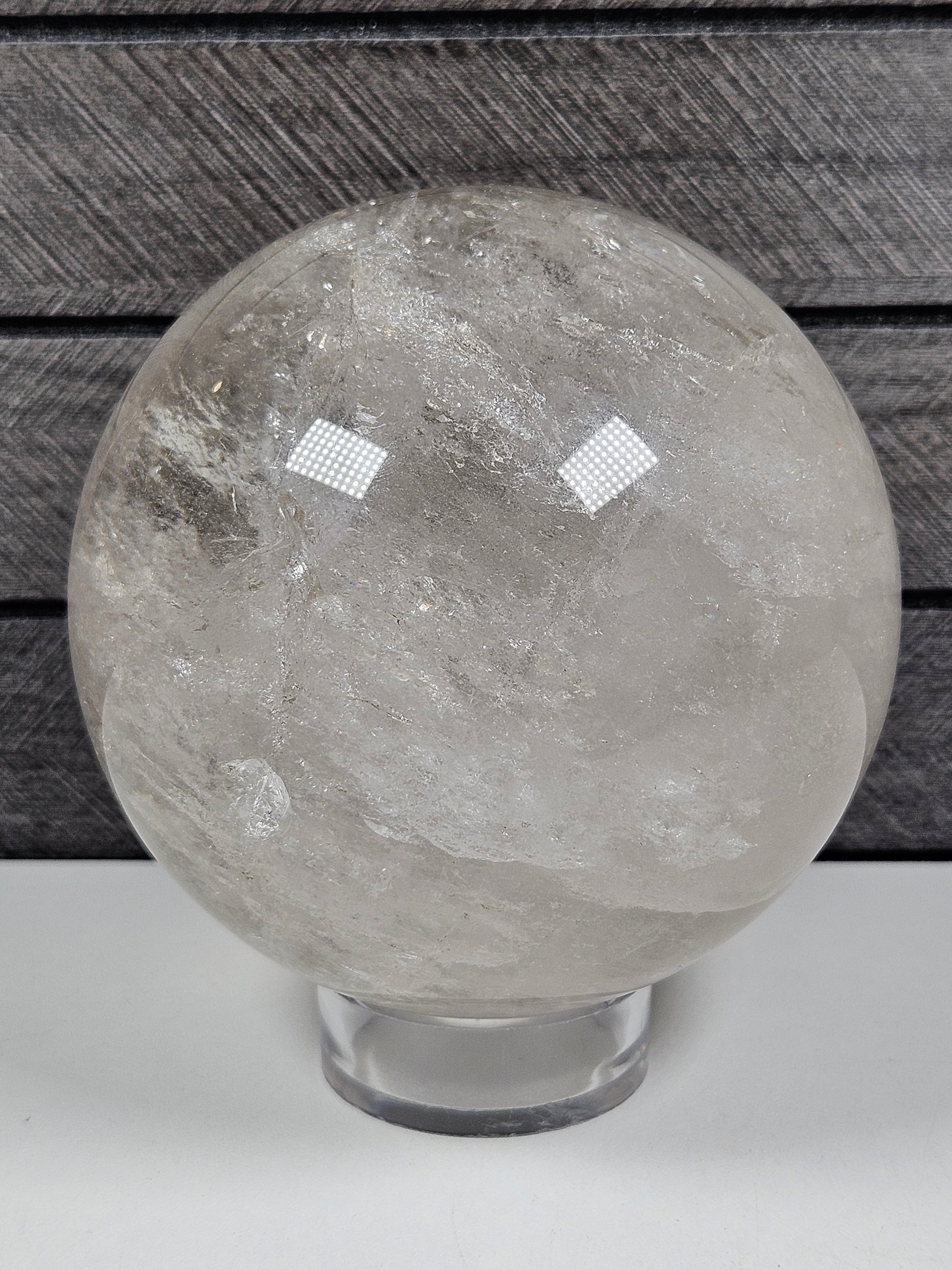 Dit specifieke exemplaar heeft een unieke kleurverdeling, helderheid en natuurlijke insluitsels. Door het gewicht en formaat komt de bol prachtig tot zijn recht op een stevige bolhouder, als centraal decoratief element of in een edelstenenverzameling.