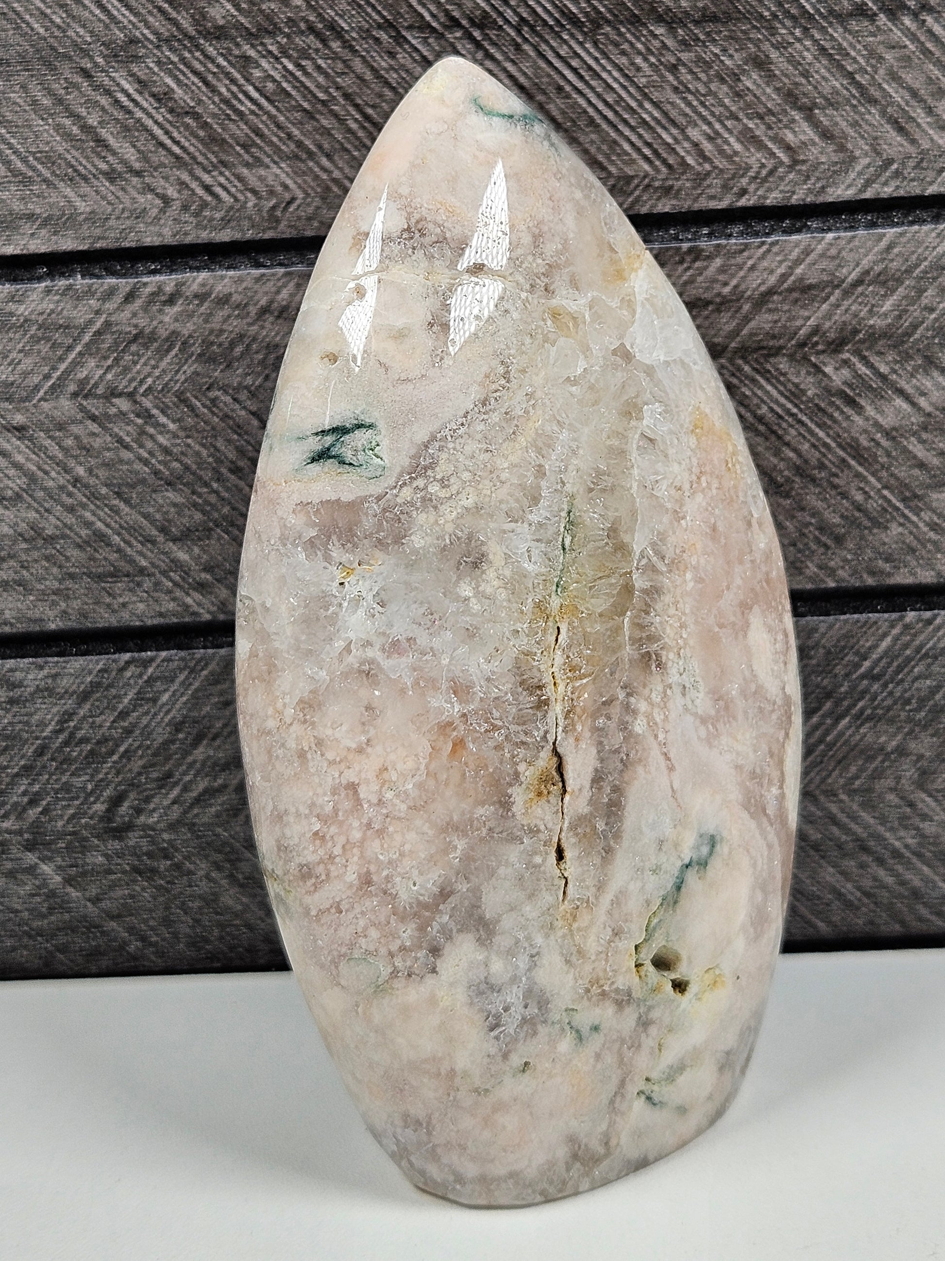 Roze amethist staat bekend om zijn zachte, liefdevolle energie. Het ondersteunt emotionele balans, bevordert innerlijke rust en creëert een harmonieuze sfeer in elke ruimte. De natuurlijke roze tinten maken elk sculptuur uniek en visueel aantrekkelijk.