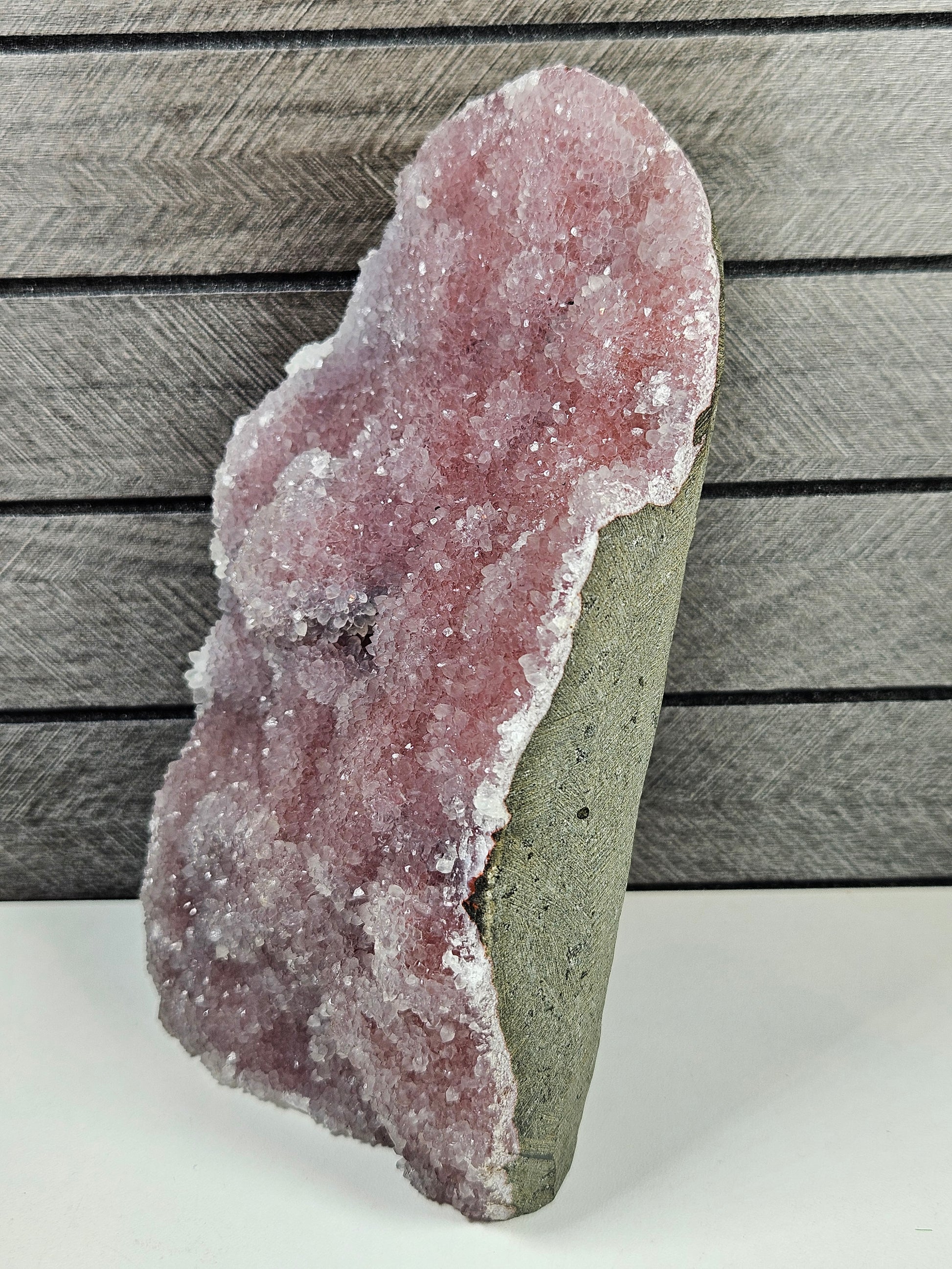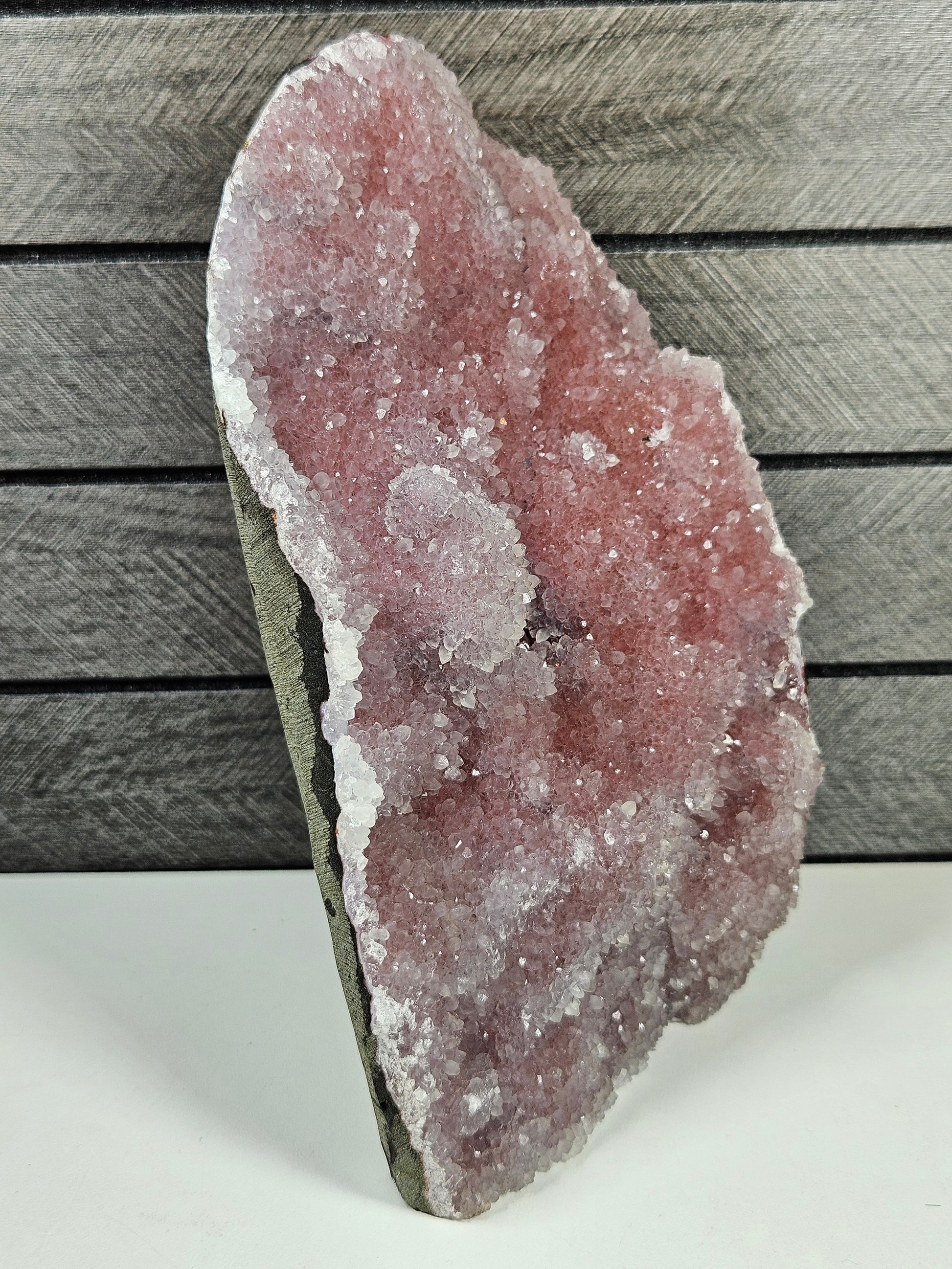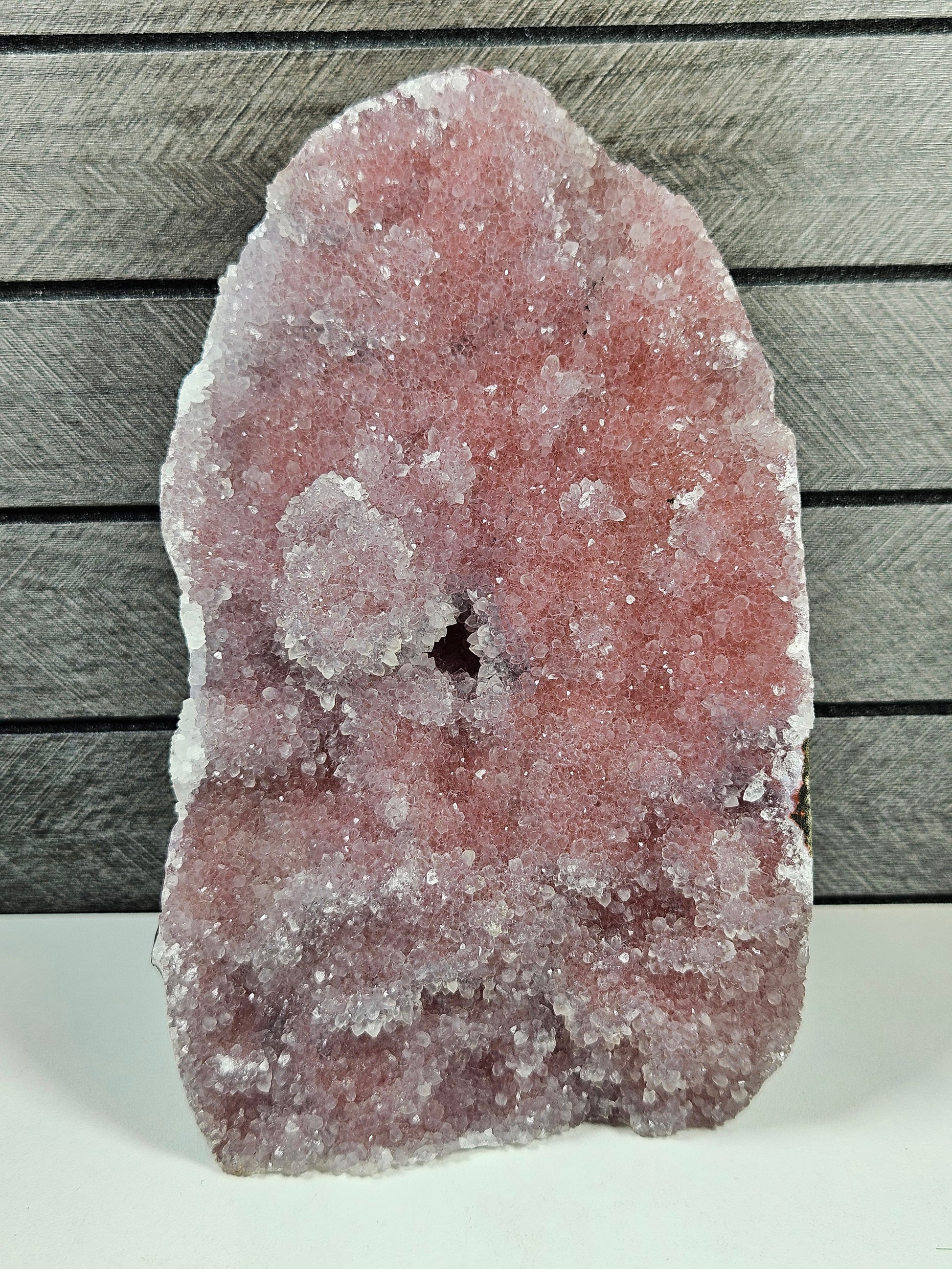 Roze chalcedoon op standvlak 1450 gram
