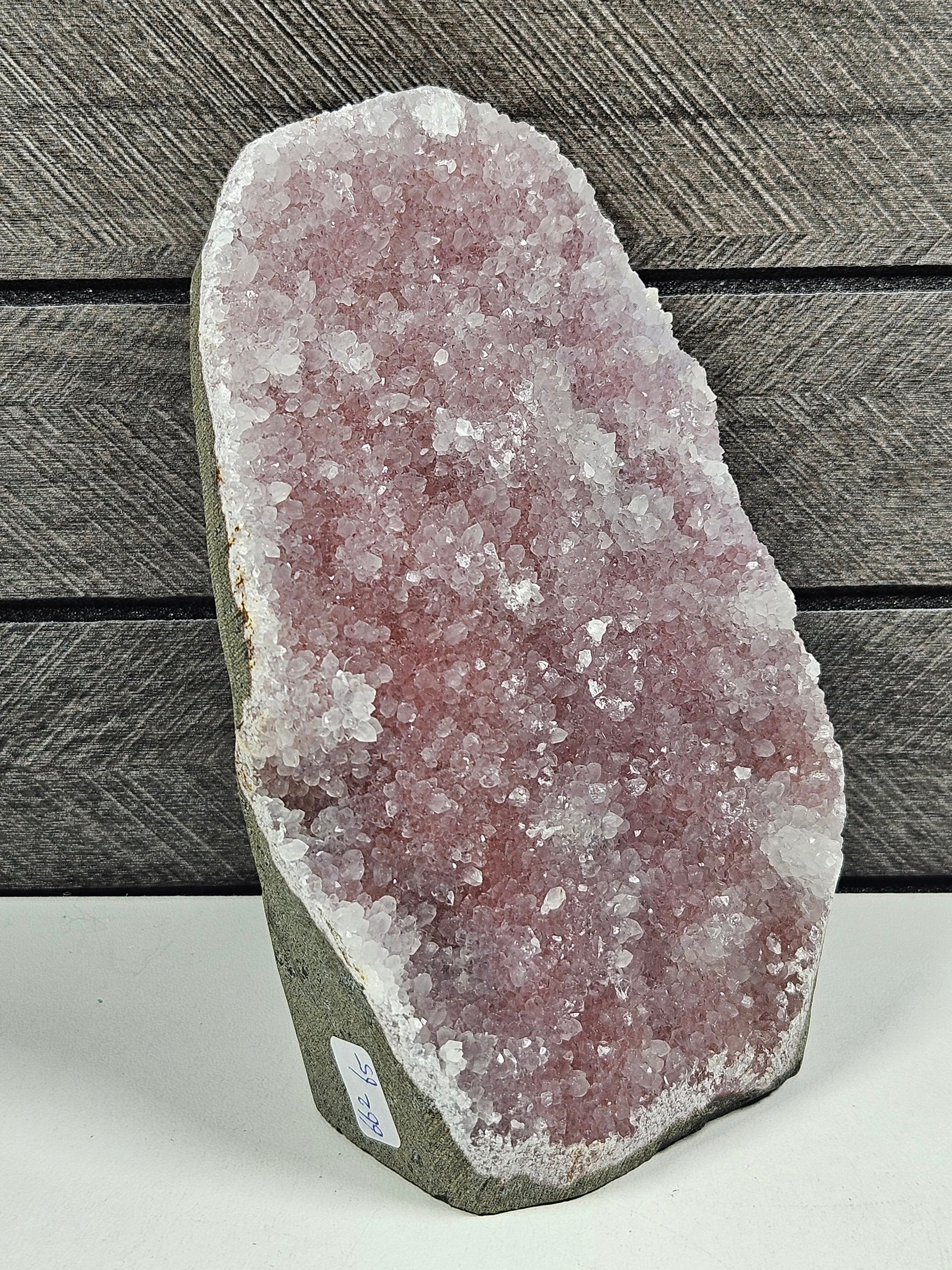 Deze Roze Chalcedoon op standvlak is een prachtig natuurproduct met een zachte, rustgevende uitstraling. Met een gewicht van 662 gram en een hoogte van circa 13 cm en breedte van 8 cm is dit een stevig en elegant stuk dat mooi rechtop staat dankzij het natuurlijke standvlak. De subtiele roze tinten en gladde structuren geven het geheel een kalme en harmonieuze uitstraling.