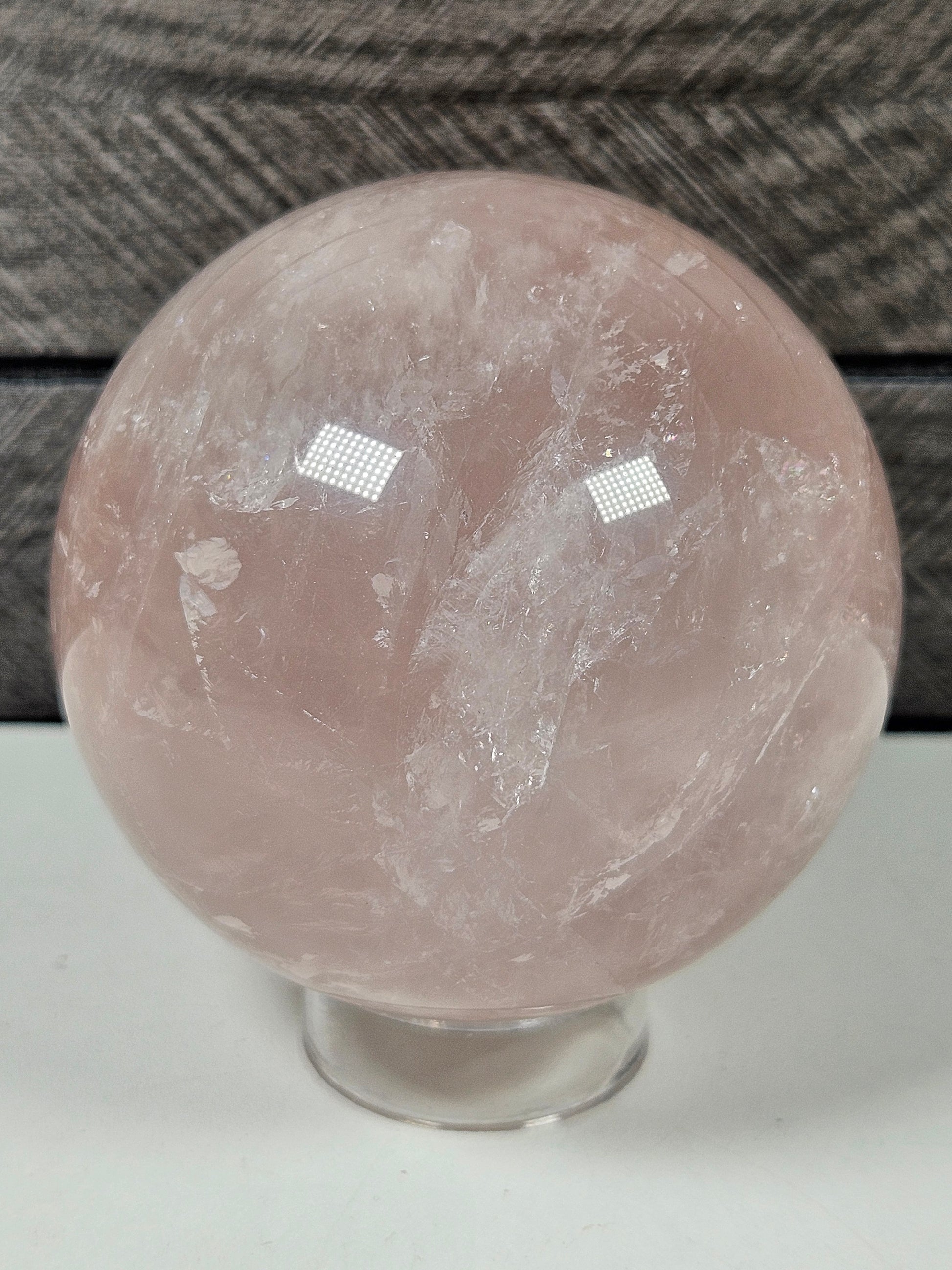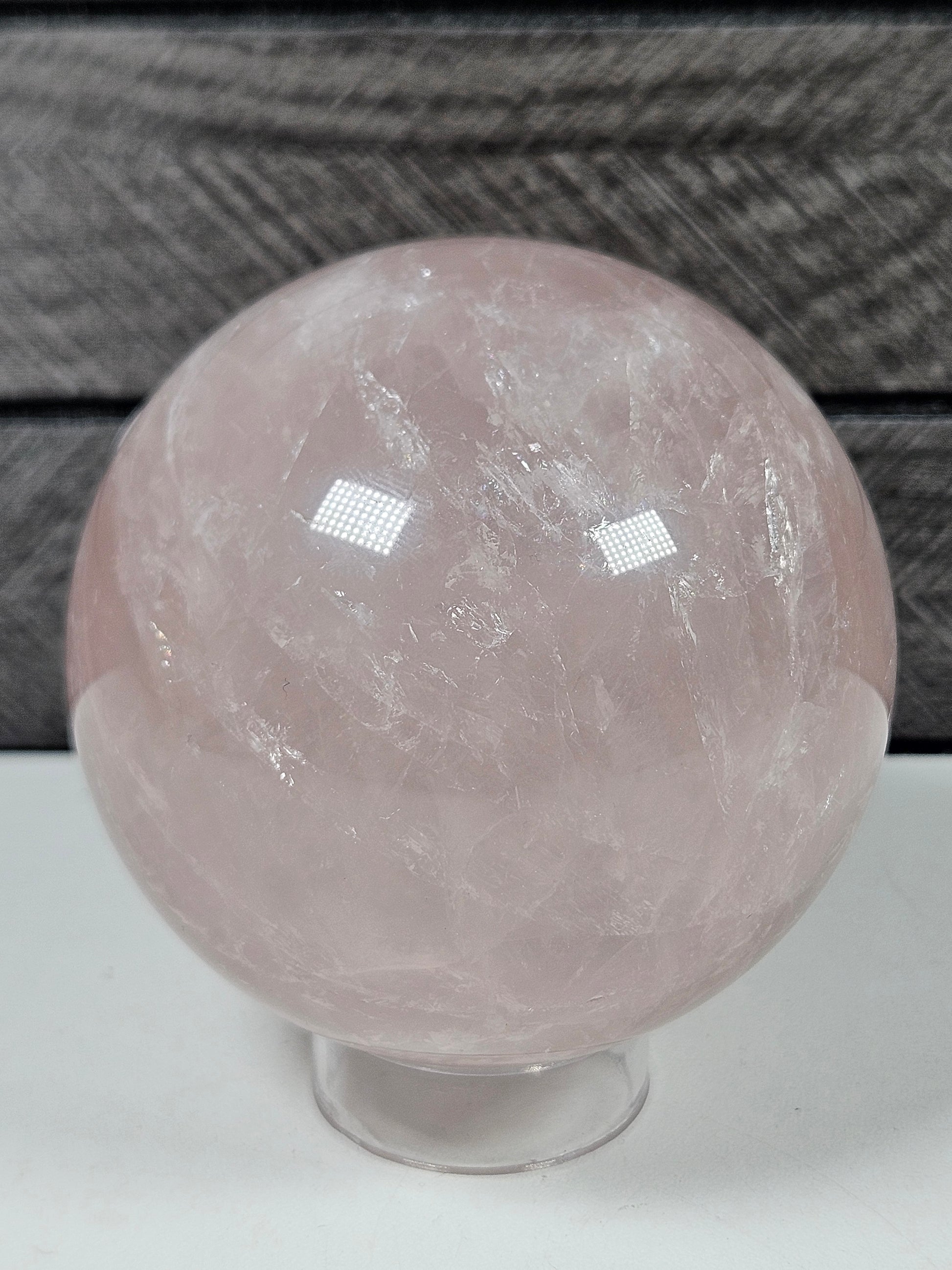 Deze prachtige rozenkwarts bol van hoge kwaliteit heeft een zachte roze kleur en een bijzondere starflash. Wanneer het licht op de bol valt, ontstaat er een subtiele sterachtige lichtreflectie over het oppervlak van de steen. Dit natuurlijke optische effect maakt deze bol extra bijzonder en zorgt voor een betoverende uitstraling.