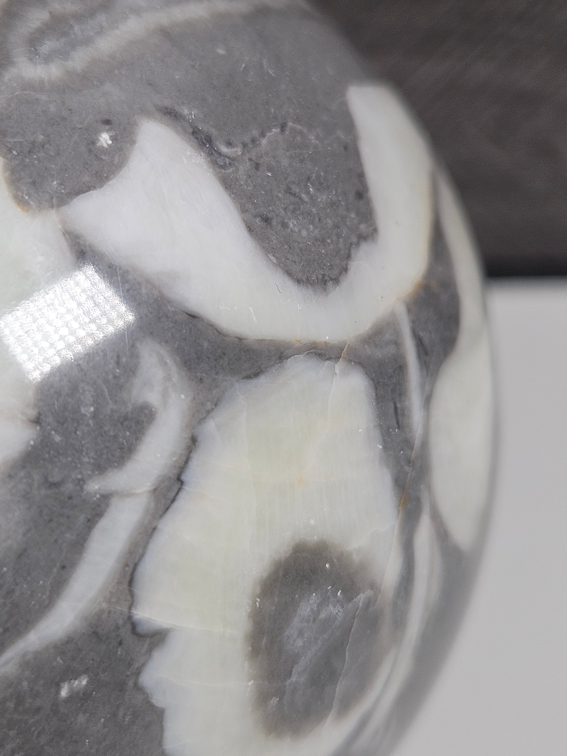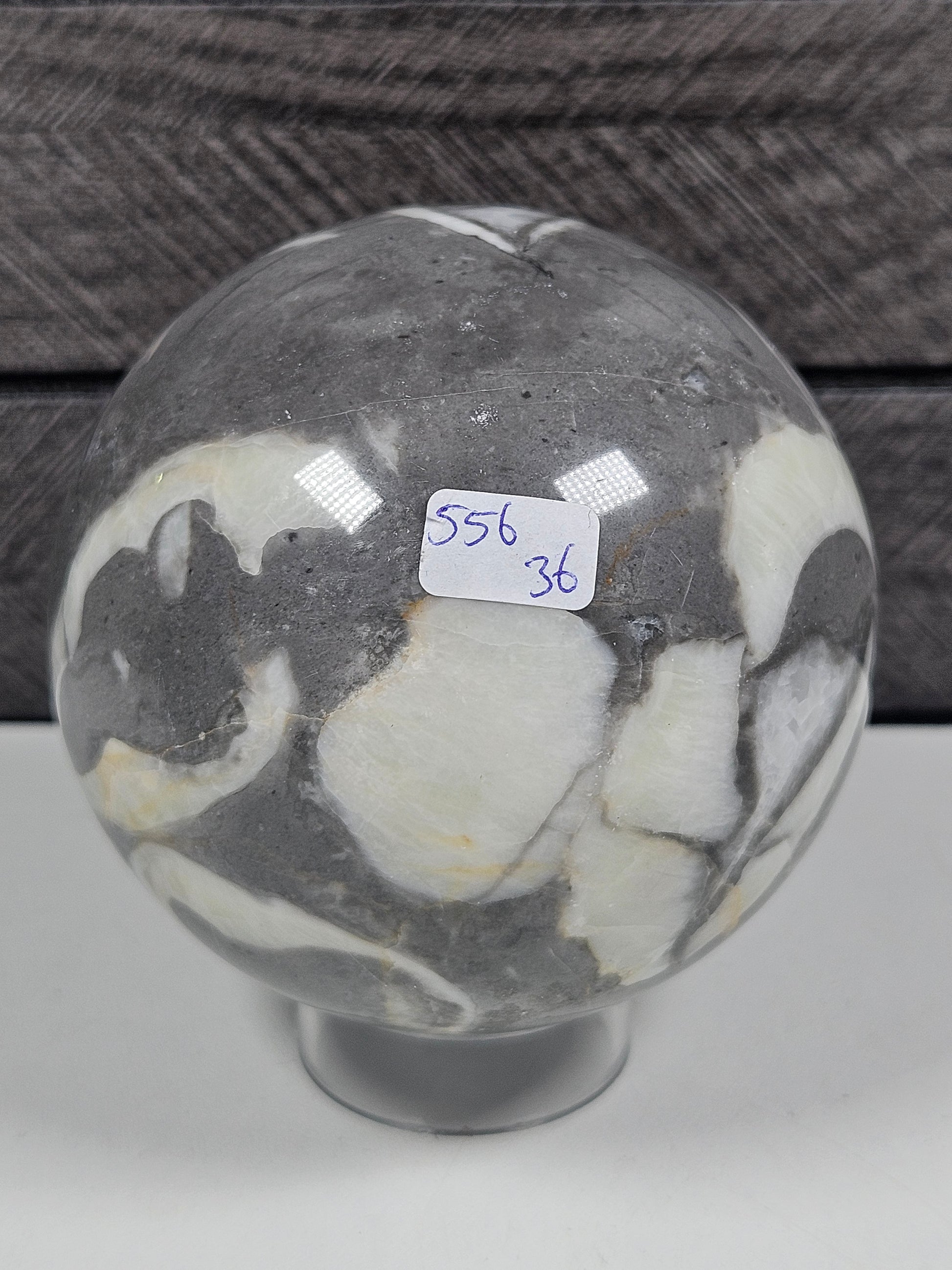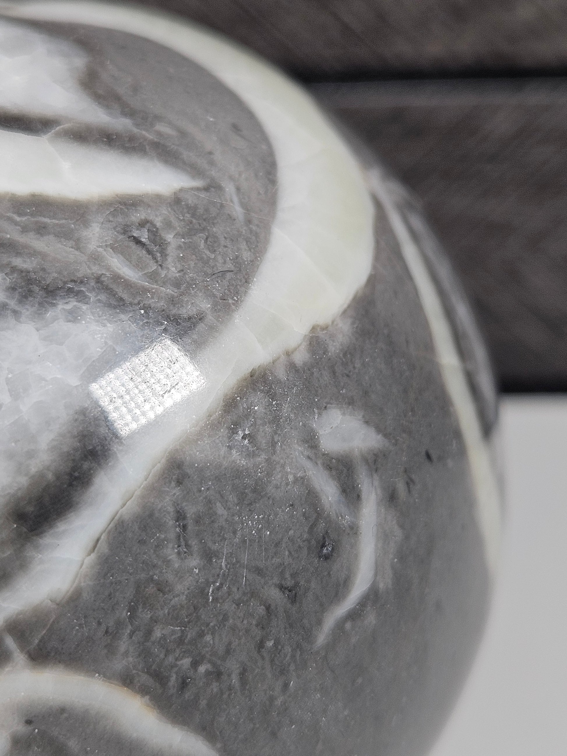 Deze sea shell jaspis bol is een uniek stuk natuursteen. Kleur, patronen en structuren zijn volledig natuurlijk gevormd, waardoor elke bol een eigen karakter en uitstraling heeft. Je ontvangt precies het exemplaar dat op de foto staat.
