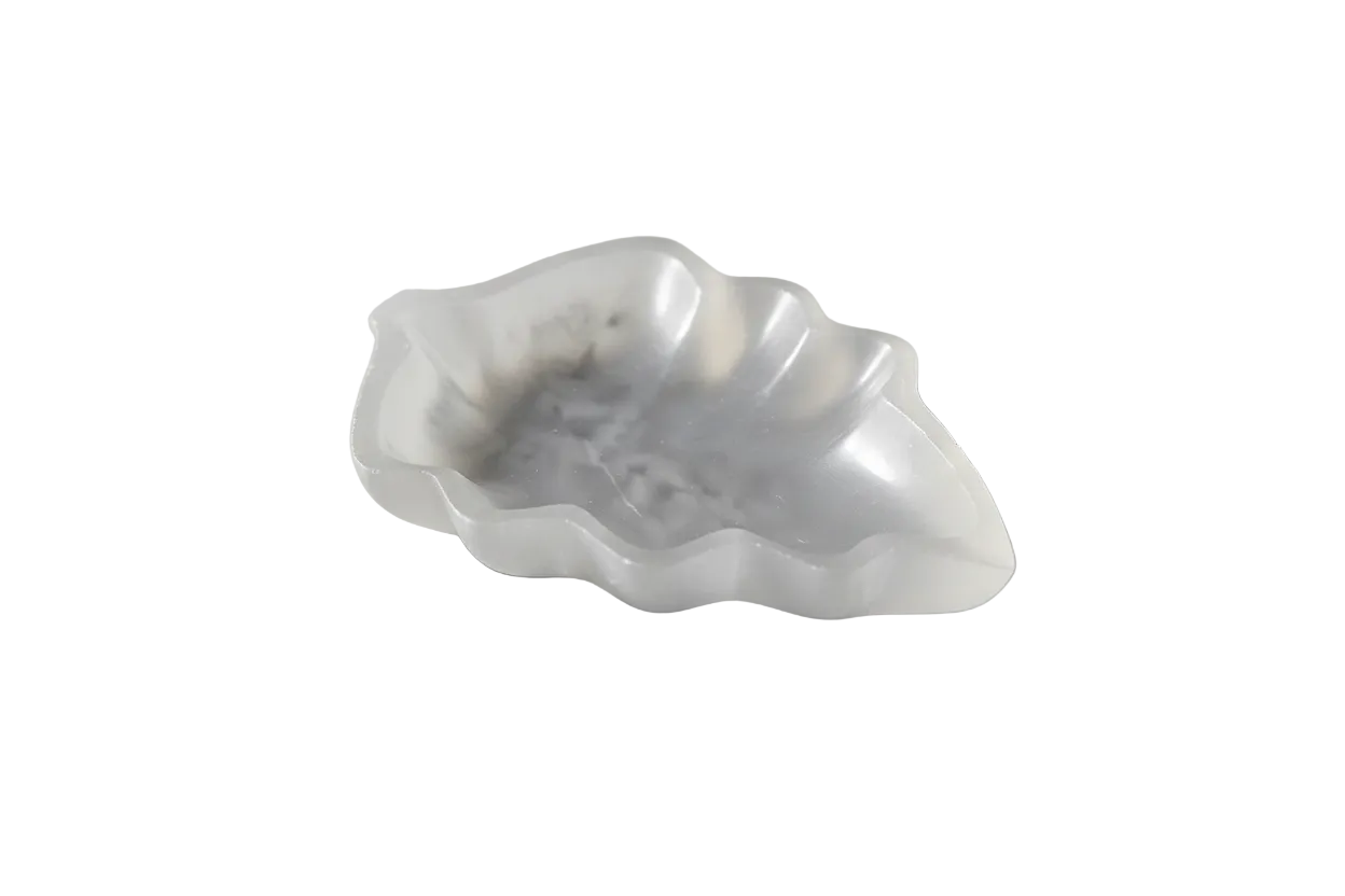 De schaal is gesneden in de vorm van een blad, wat symbool staat voor groei, vernieuwing en natuurlijke harmonie. De doorschijnende structuur van seleniet zorgt voor een subtiele lichtwerking, vooral wanneer het schaaltje in natuurlijk of zacht kunstlicht staat.
