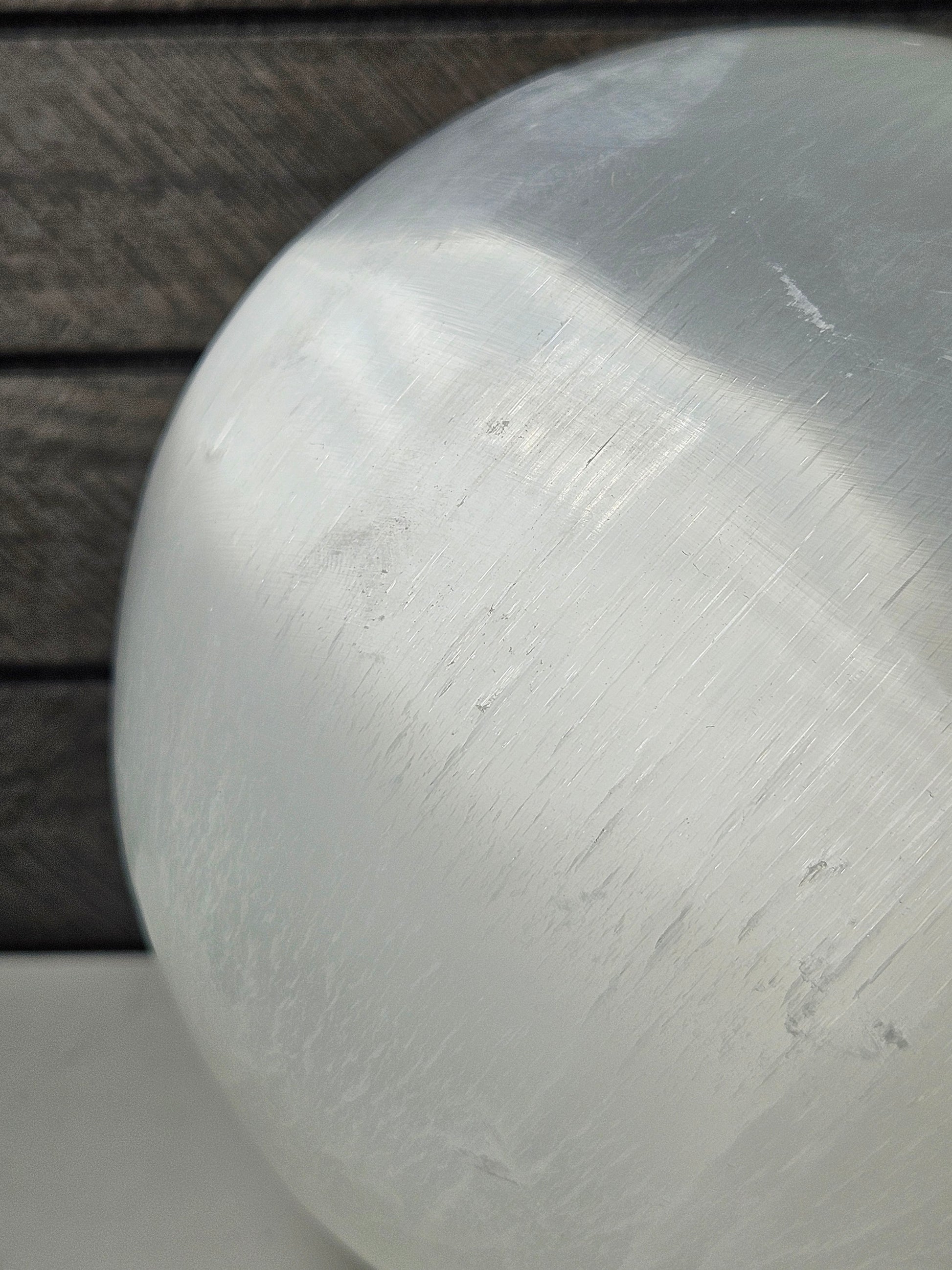 Omdat seleniet een natuurproduct is, kan elk exemplaar licht variëren in kleur, structuur en gewicht. Deze natuurlijke verschillen maken elke seleniet bol uniek en onderstrepen het authentieke karakter van de steen.