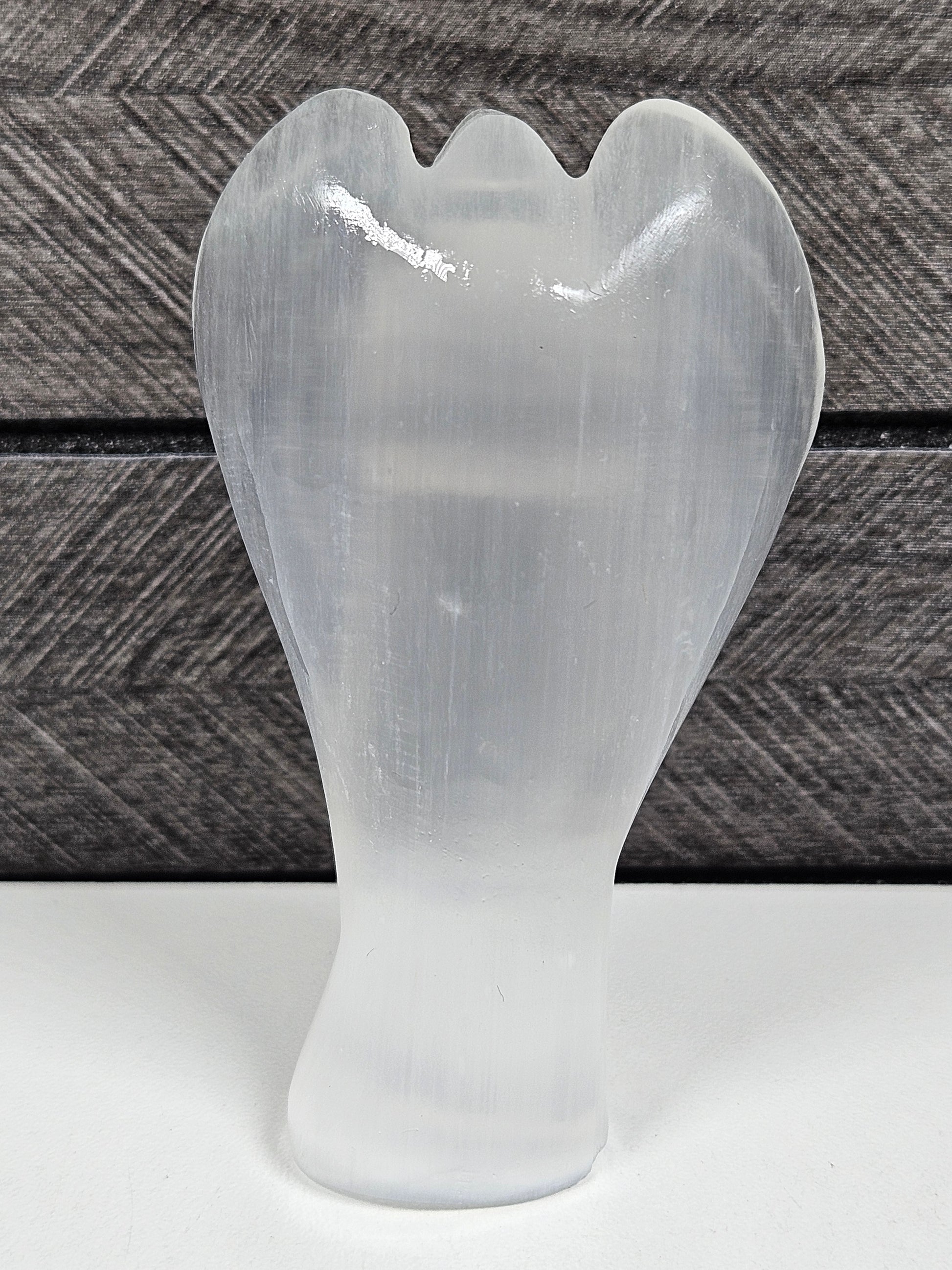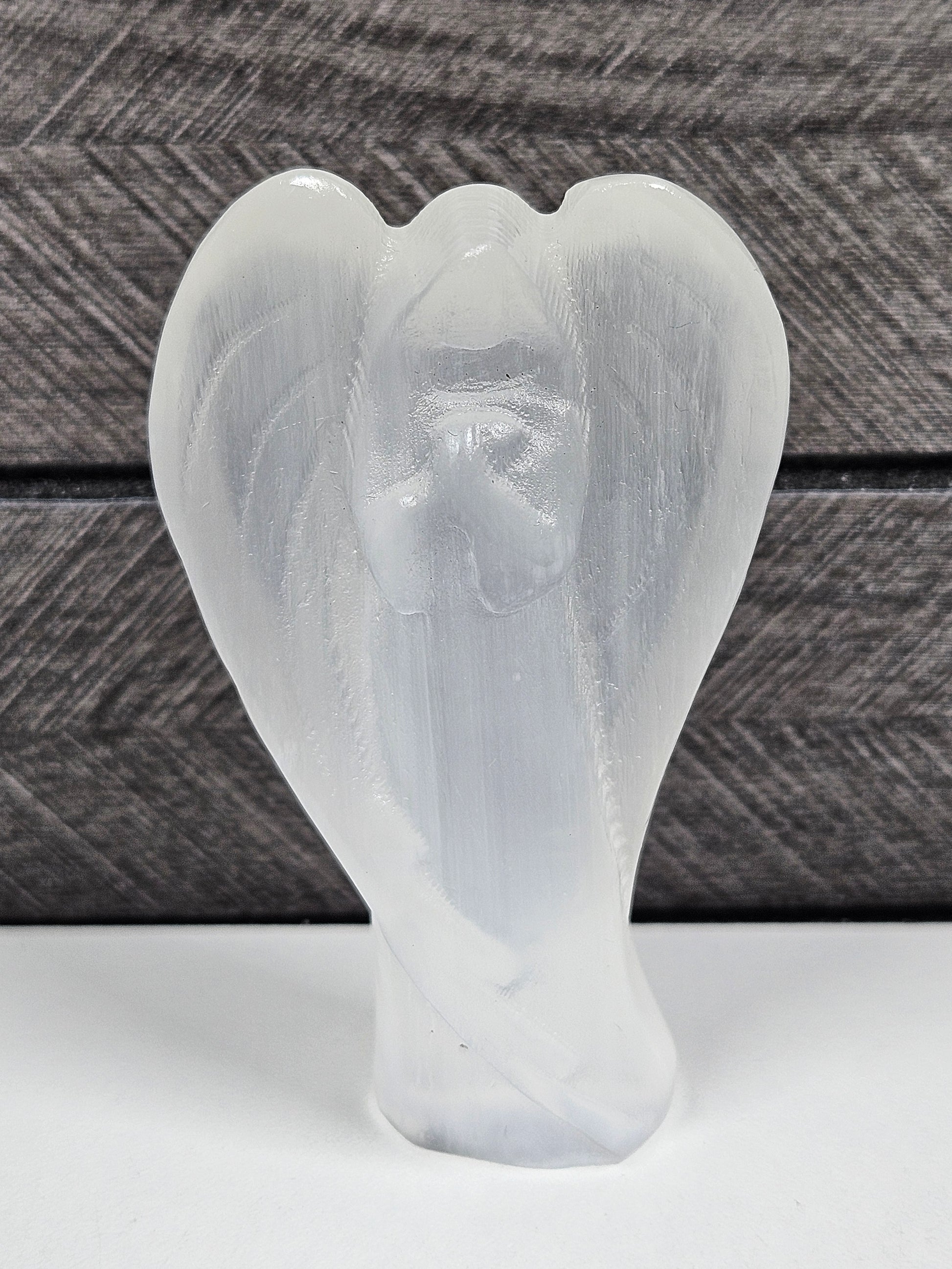 Met zijn formaat van 8 cm is deze seleniet engel een mooie decoratie voor een altaar, meditatieplek, nachtkastje of bureau. Het beeldje straalt een serene energie uit en is ook een bijzonder en betekenisvol cadeau voor iemand die wel wat extra positieve energie of bescherming kan gebruiken.
