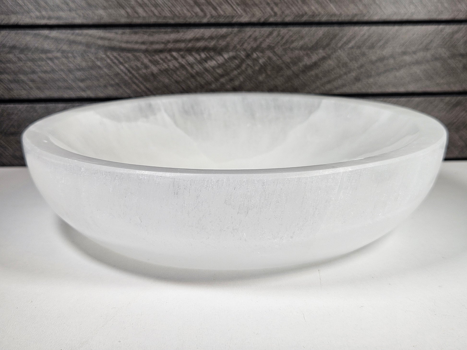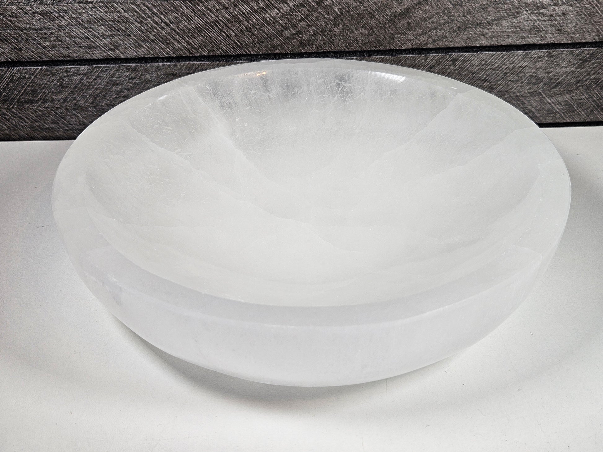 Deze prachtige selenietschaal is maar liefst 2 kg en heeft een diameter van 20 cm.