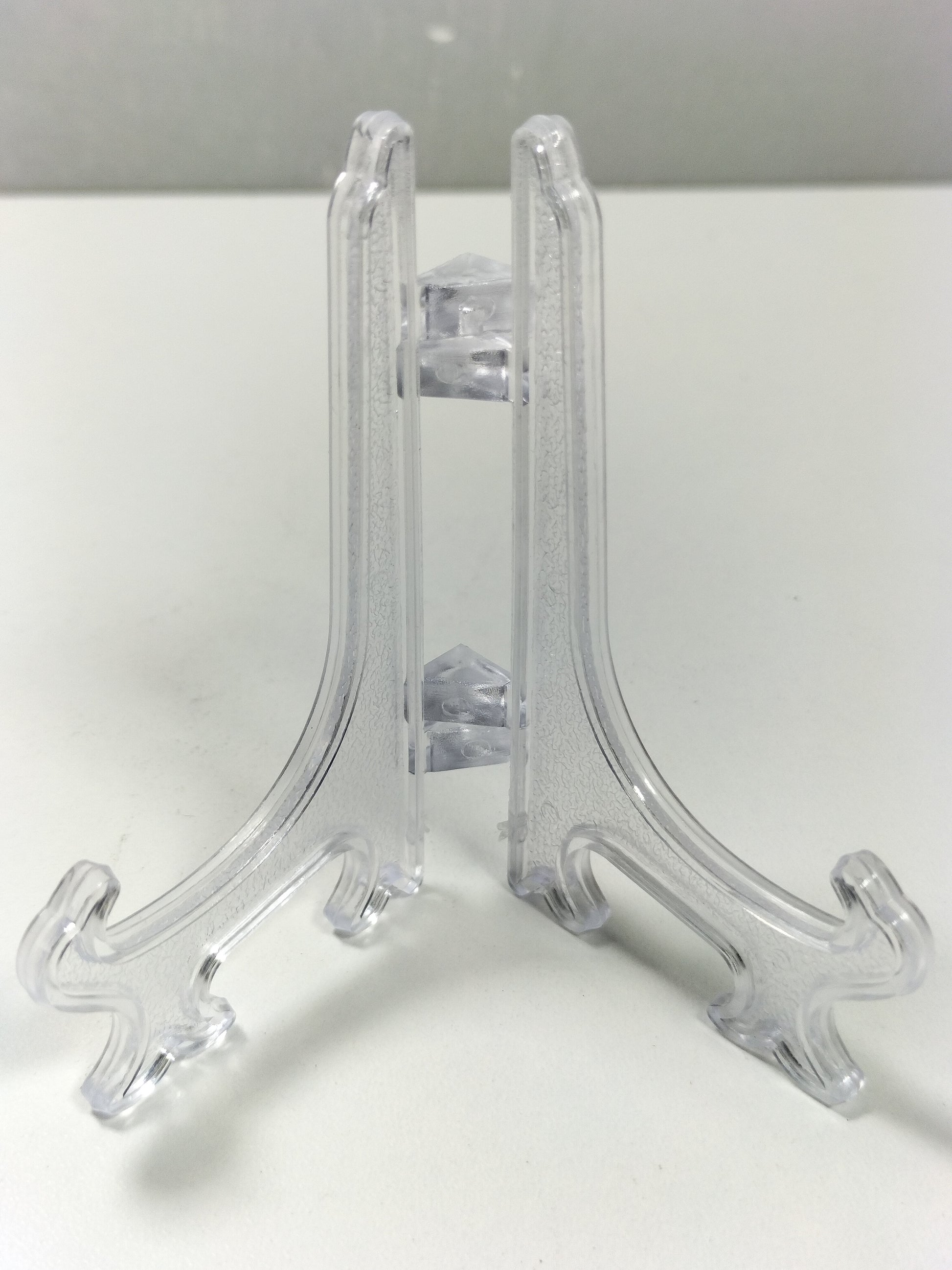 Plastic, 7,5 cm hoog. In breedte verstelbaar tot maximaal 7 cm