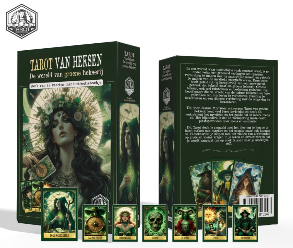In een wereld waar technologie vaak centraal staat, is er onder velen een groeiend verlangen om opnieuw verbinding te maken met de natuurlijke wereld en gebruik te maken van de mystieke energieën ervan. Deze wens heeft geleid tot de heropleving van een eeuwenoud gebruik dat bekend staat als groene hekserij. Groene heksen, ook wel tuinheksen en bosheksen genoemd, zijn beoefenaars die de kracht van de natuur benutten en deze gebruiken om hun leven te verbeteren, genezing te bevorderen en een diepere verbinding met de omgeving te bevorderen. Dit door Jeanne Morrissey ontworpen Tarot van groene hekserij kent veel Ierse invloeden en heeft als vertrekpunt het mystieke en het goede dat in iedere mens zit. Het bijzondere is dat de vormgeving mede heeft plaatsgevonden door mens en computer. Dit Tarot deck is gemaakt met het idee om je kennis te laten maken met magiërs en het occulte maar ook kunnen de Tarotkaarten je helpen met het vinden van antwoorden op grote en kleine vragen in je leven en ervoor zorgen dat je wordt aangezet om op zoek te gaan naar je innerlijke zelf.