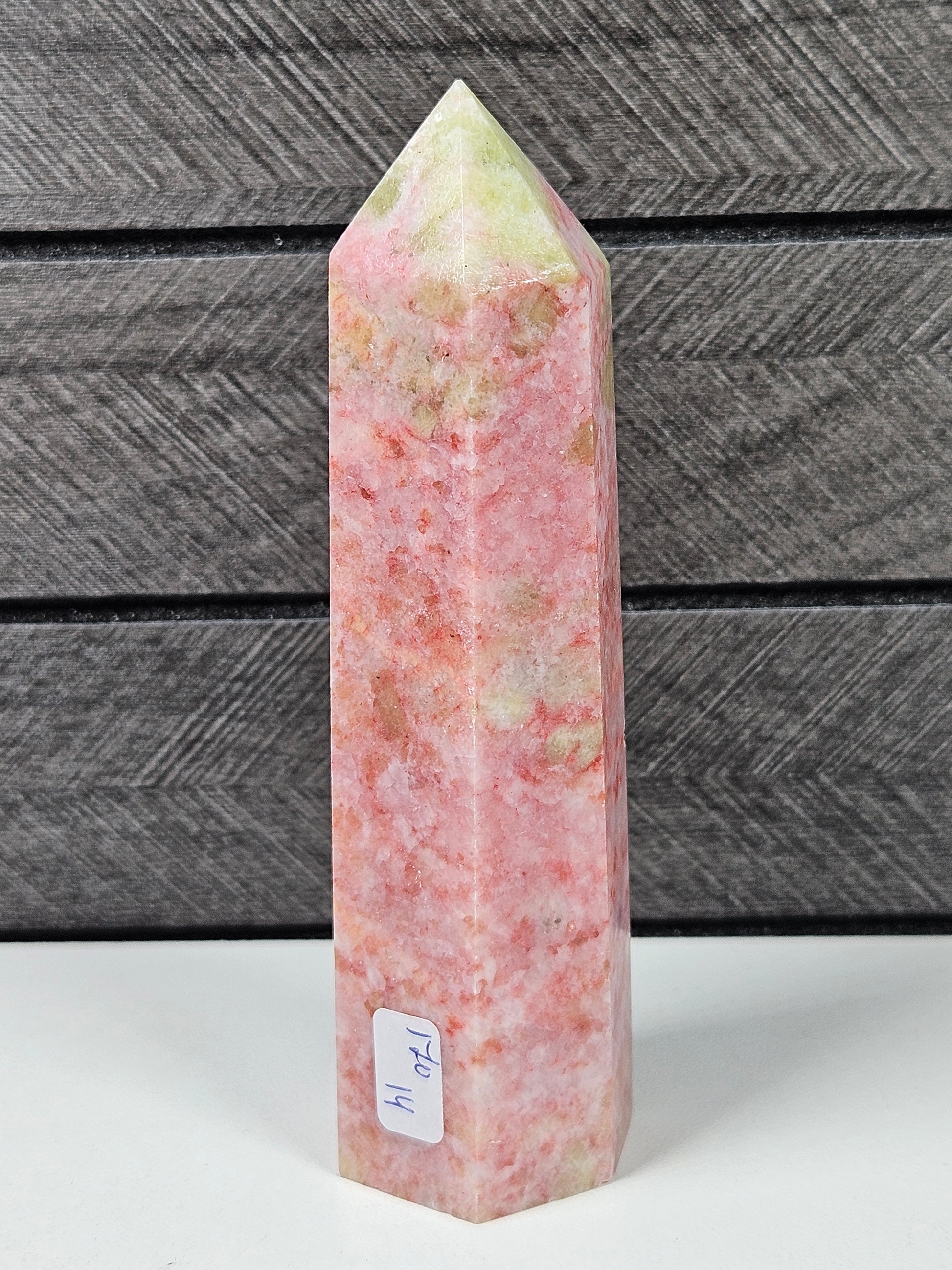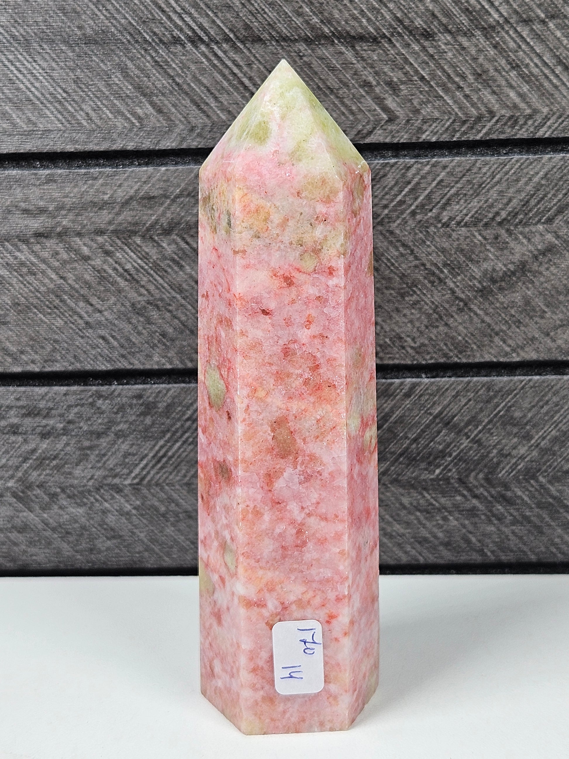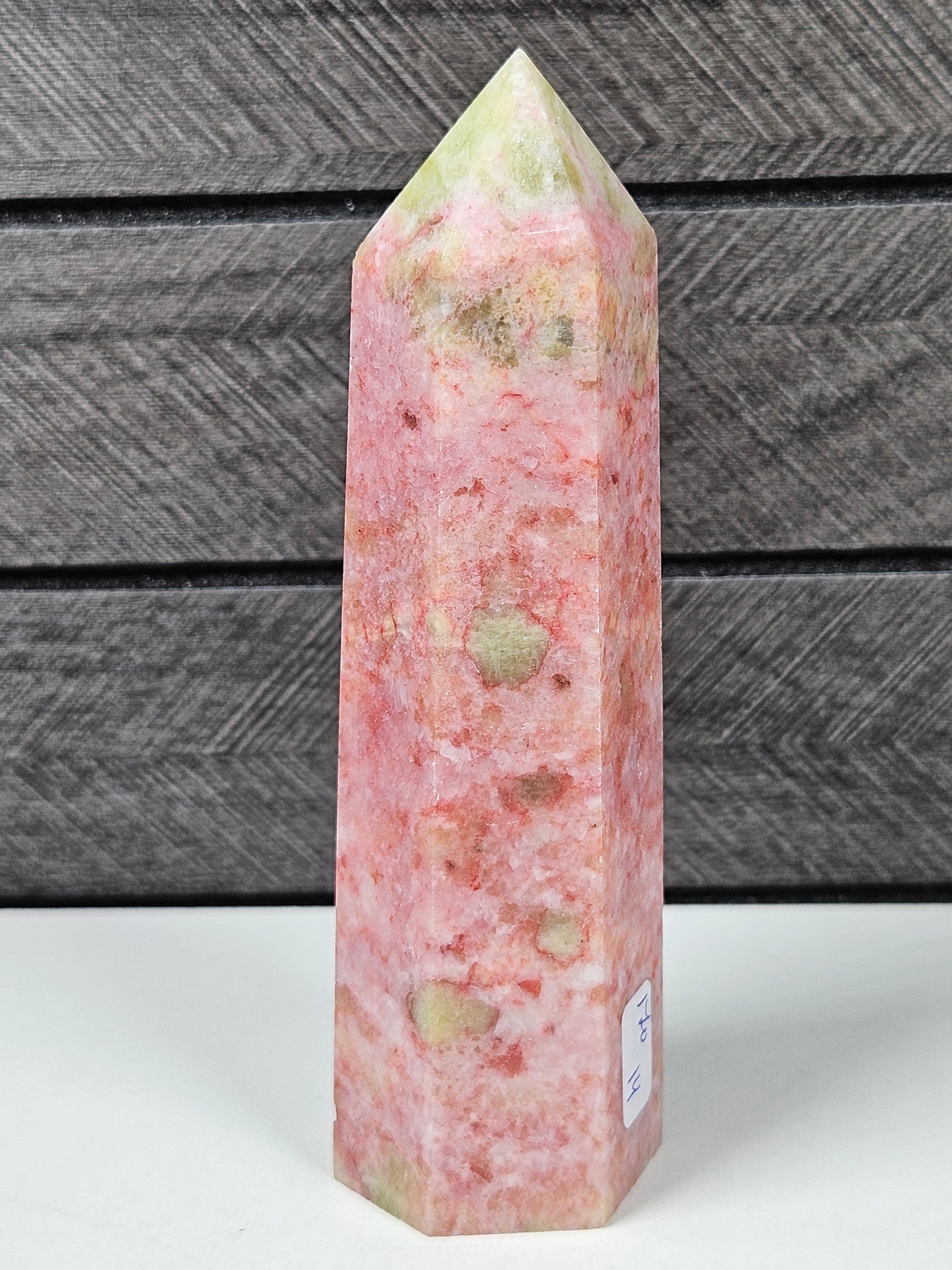 Deze Thuliet toren van 170 gram en circa 11,5 cm hoog is een krachtig en decoratief natuurproduct met een warme roze tot roodroze kleur. Thuliet is een zeldzame variëteit van zoïsiet en staat bekend om zijn energieke uitstraling en levendige kleur. De torenvorm geeft de steen een strakke en moderne presentatie en maakt hem geschikt voor uiteenlopende toepassingen.