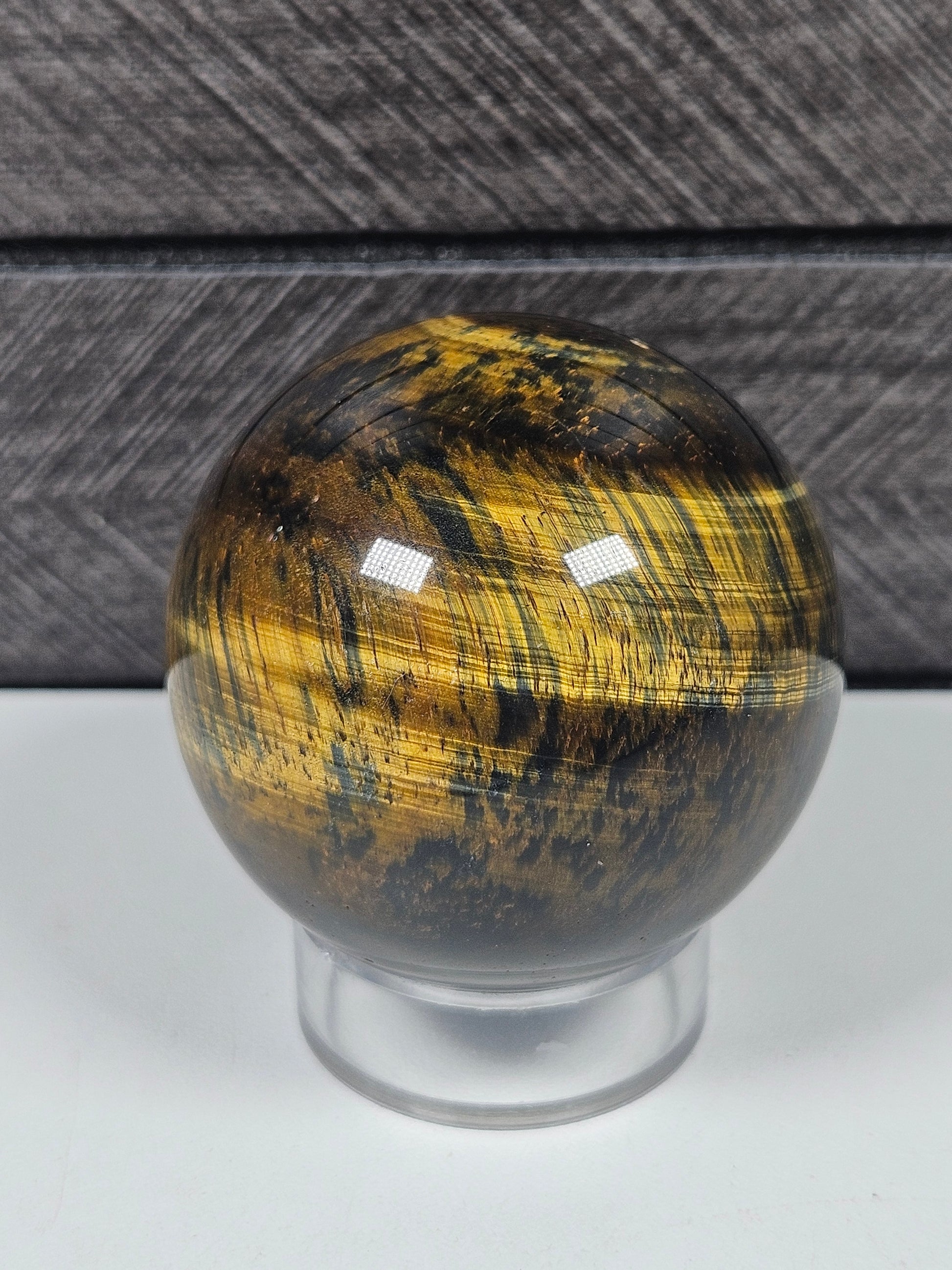 Deze krachtige tijgeroog bol straalt warmte, focus en zelfvertrouwen uit met zijn karakteristieke goudbruine kleur en zijdeachtige glans. Met een gewicht van 160 gram en een diameter van 4,9 cm is deze bol compact maar energiek, perfect voor je altaar, werkplek of edelstenencollectie.