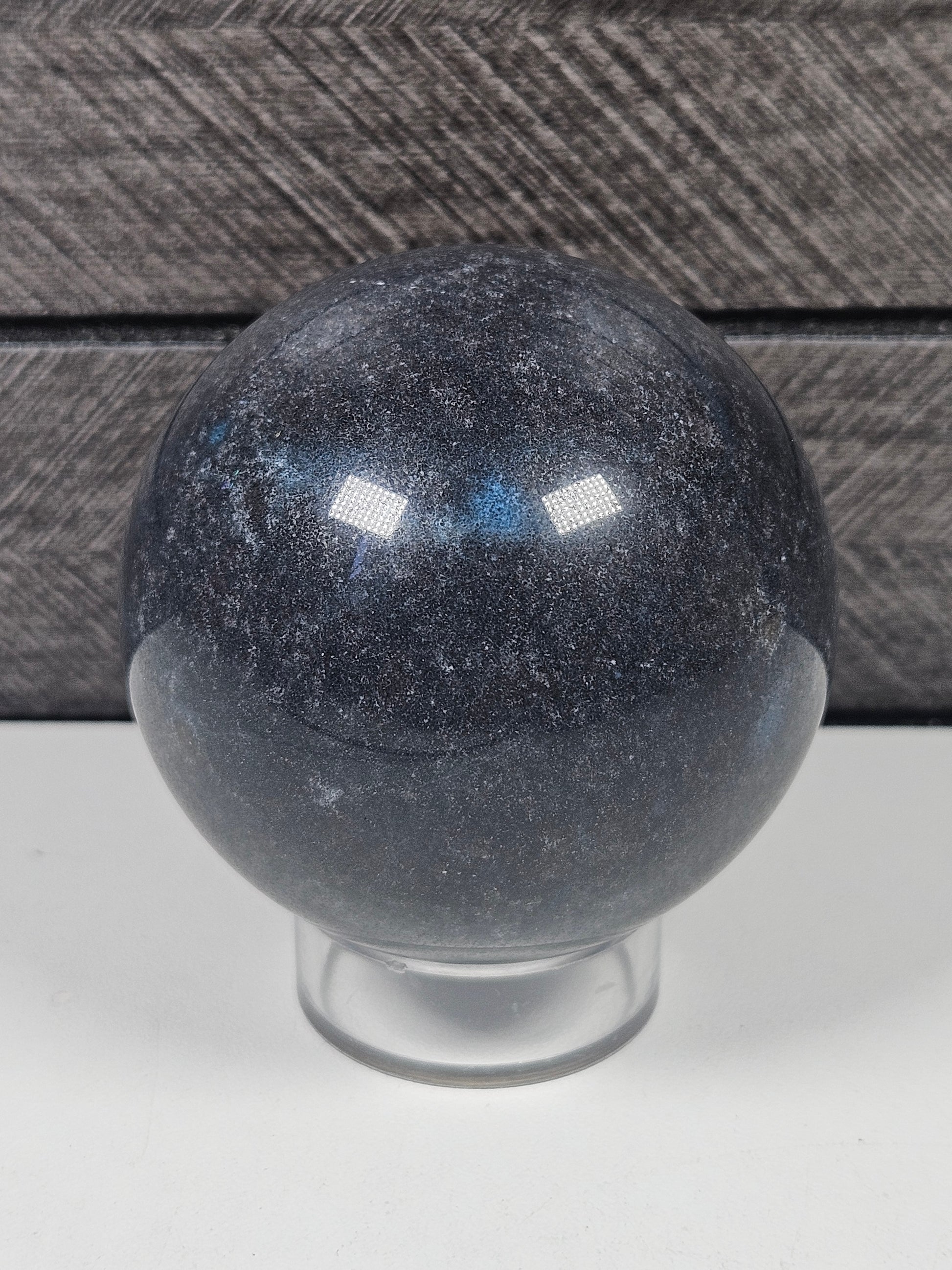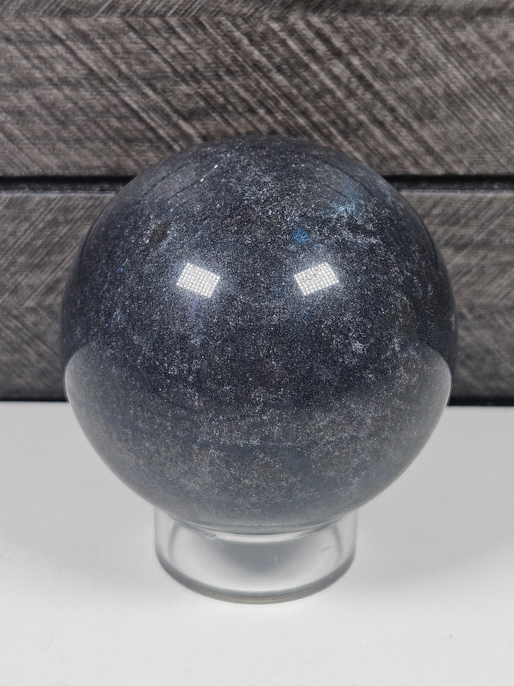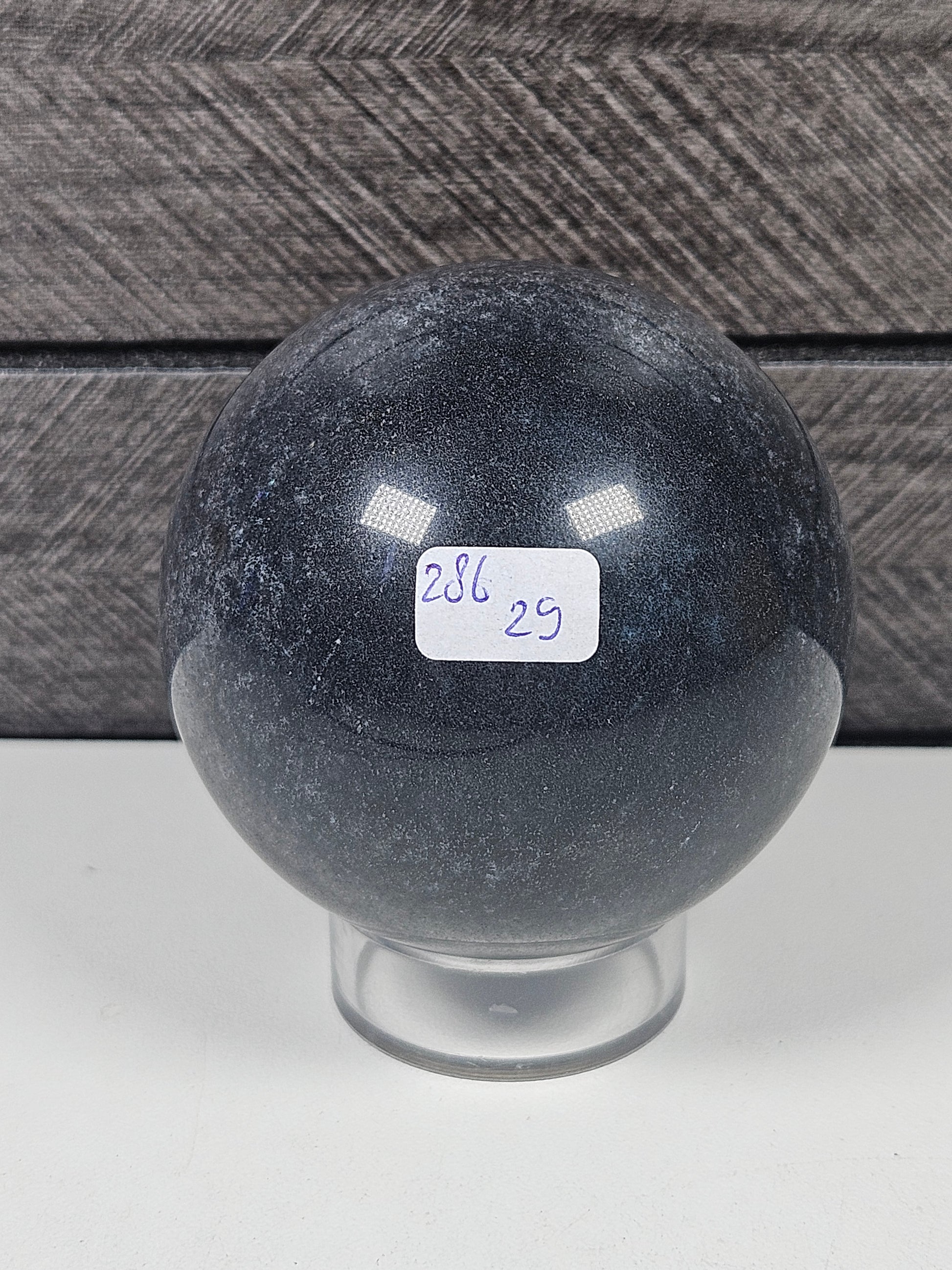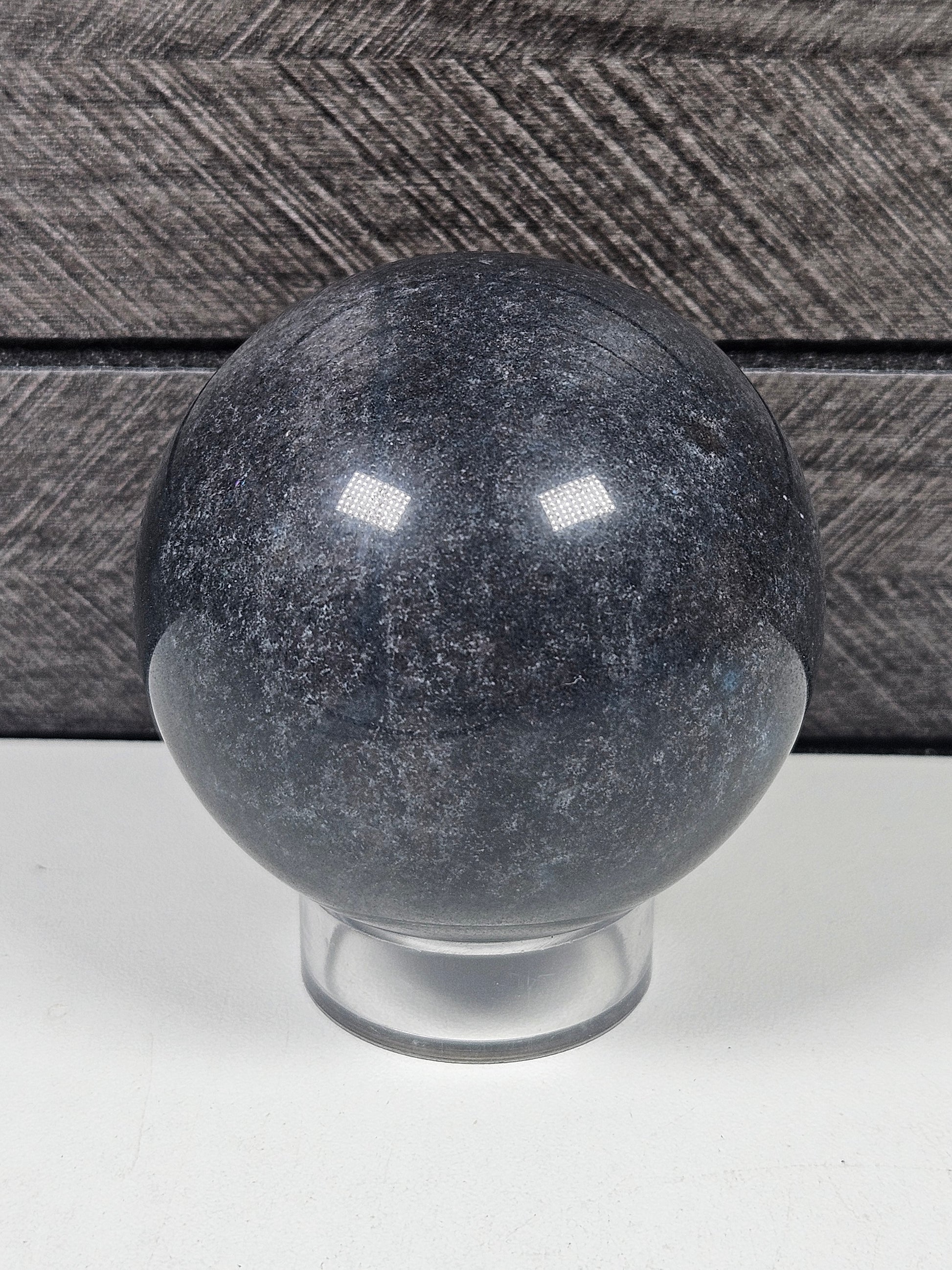 Deze trolleit bol straalt een zachte, rustgevende energie uit met haar kenmerkende blauwtinten, gecombineerd met witte en grijze accenten. Met een gewicht van 286 gram en een diameter van 5,8 cm is dit een compacte maar krachtige bol die perfect past in een edelstenenopstelling, op een altaar of als kalmerend decoratief object.