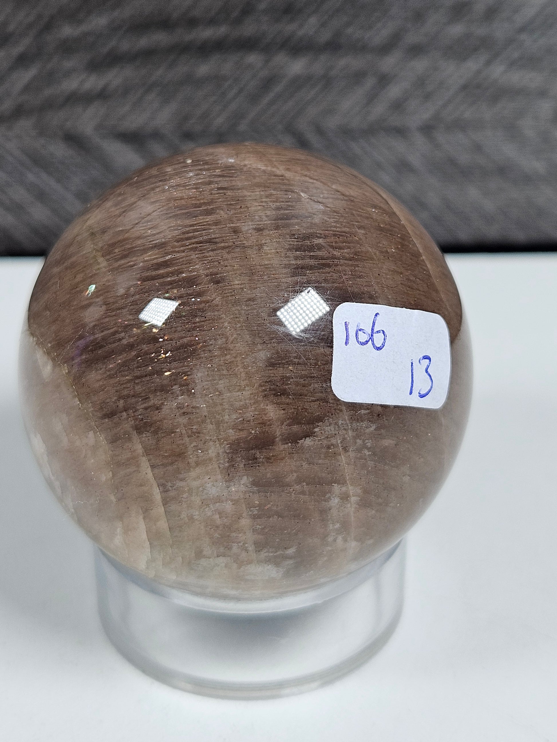 De bolvorm zorgt voor een gelijkmatige verspreiding van energie in de ruimte. Door de natuurlijke variaties in glinstering en structuur is elke bol uniek. Je ontvangt exact het exemplaar van de foto.