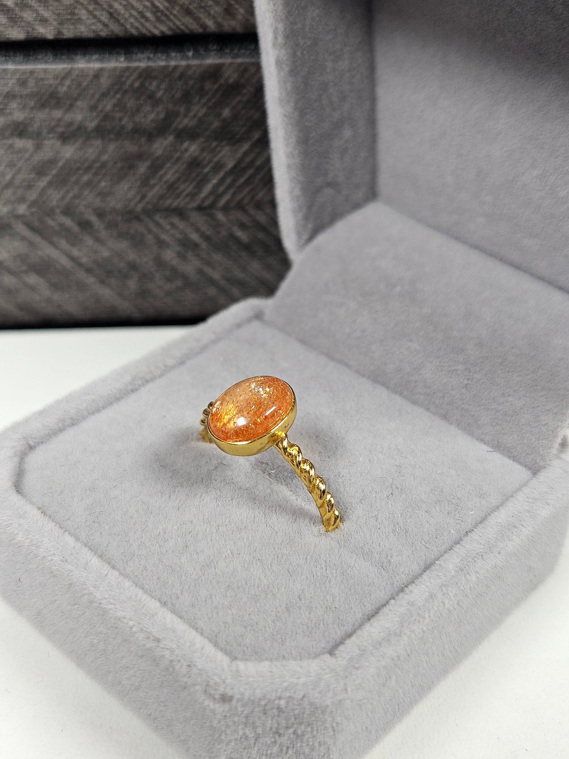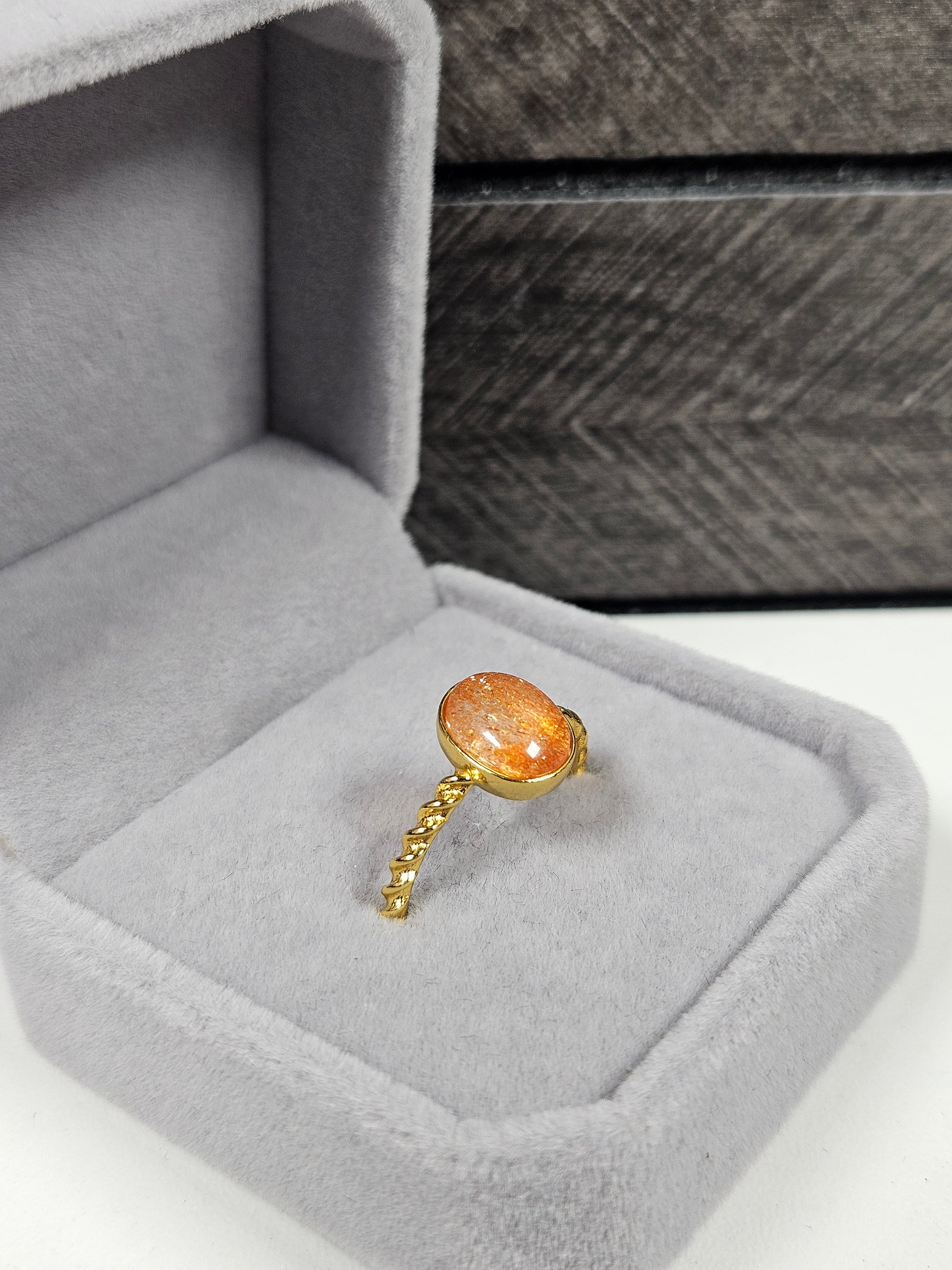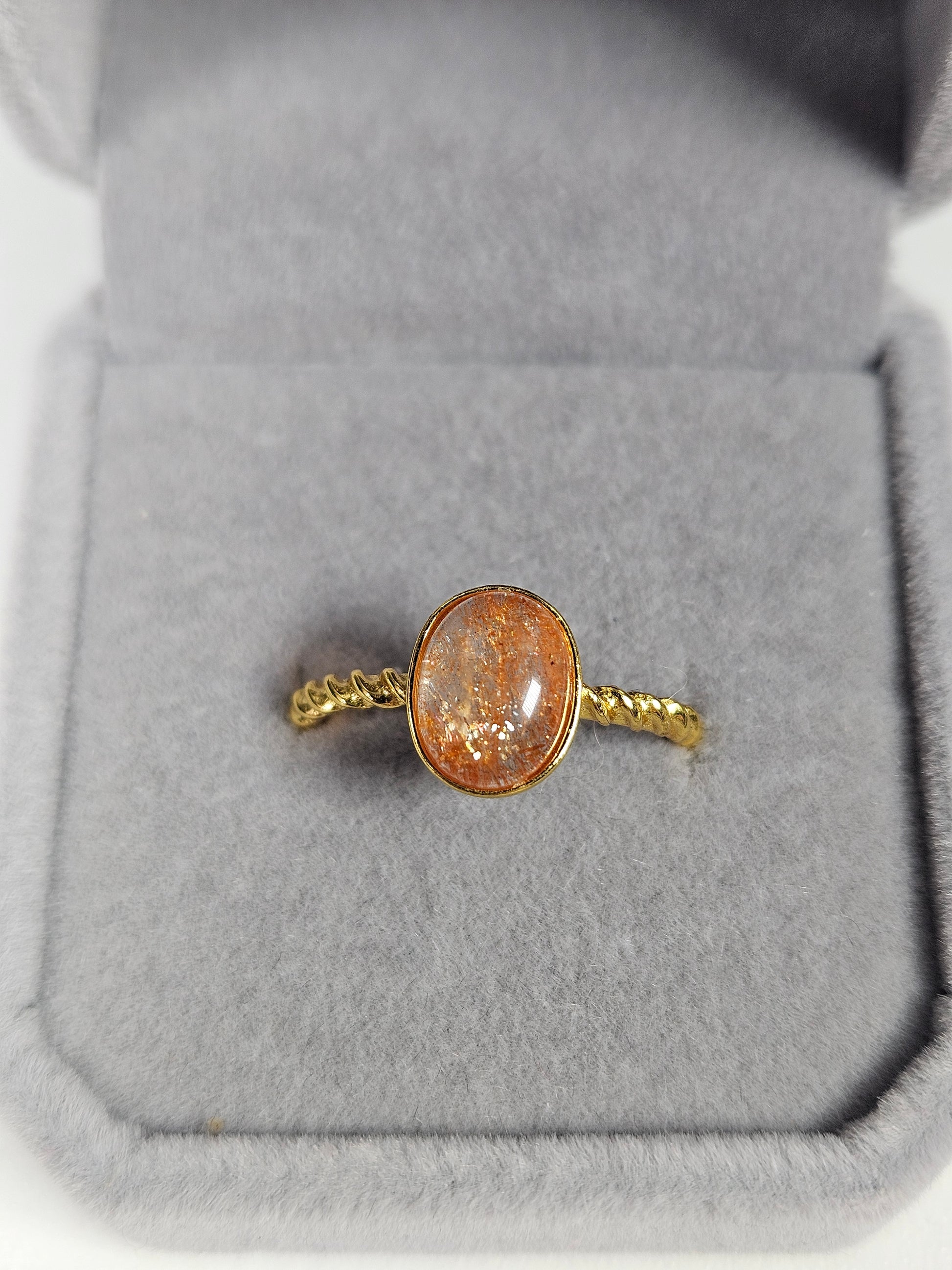 Zonnesteen s925(verguld) verstelbare ring nr61