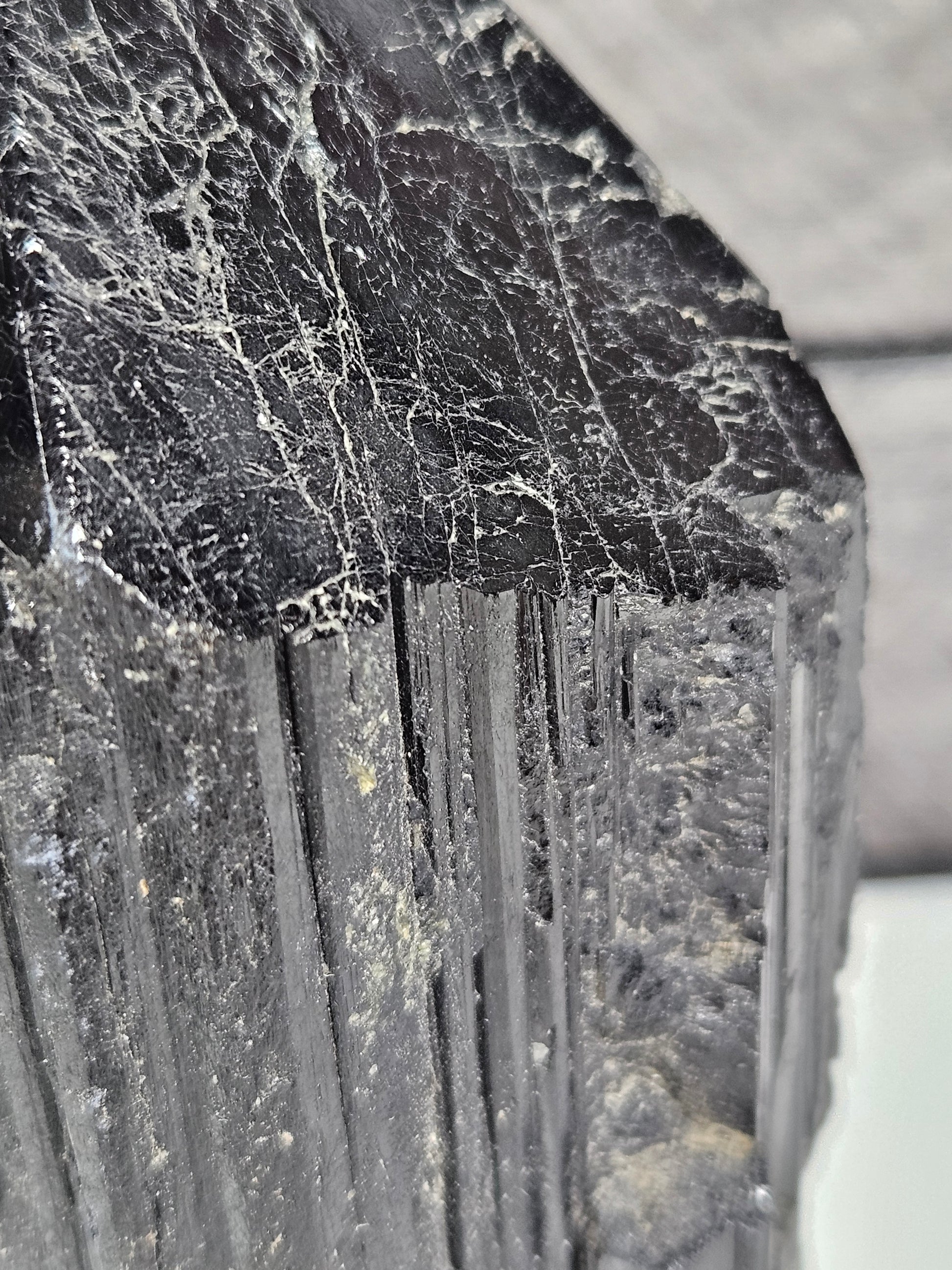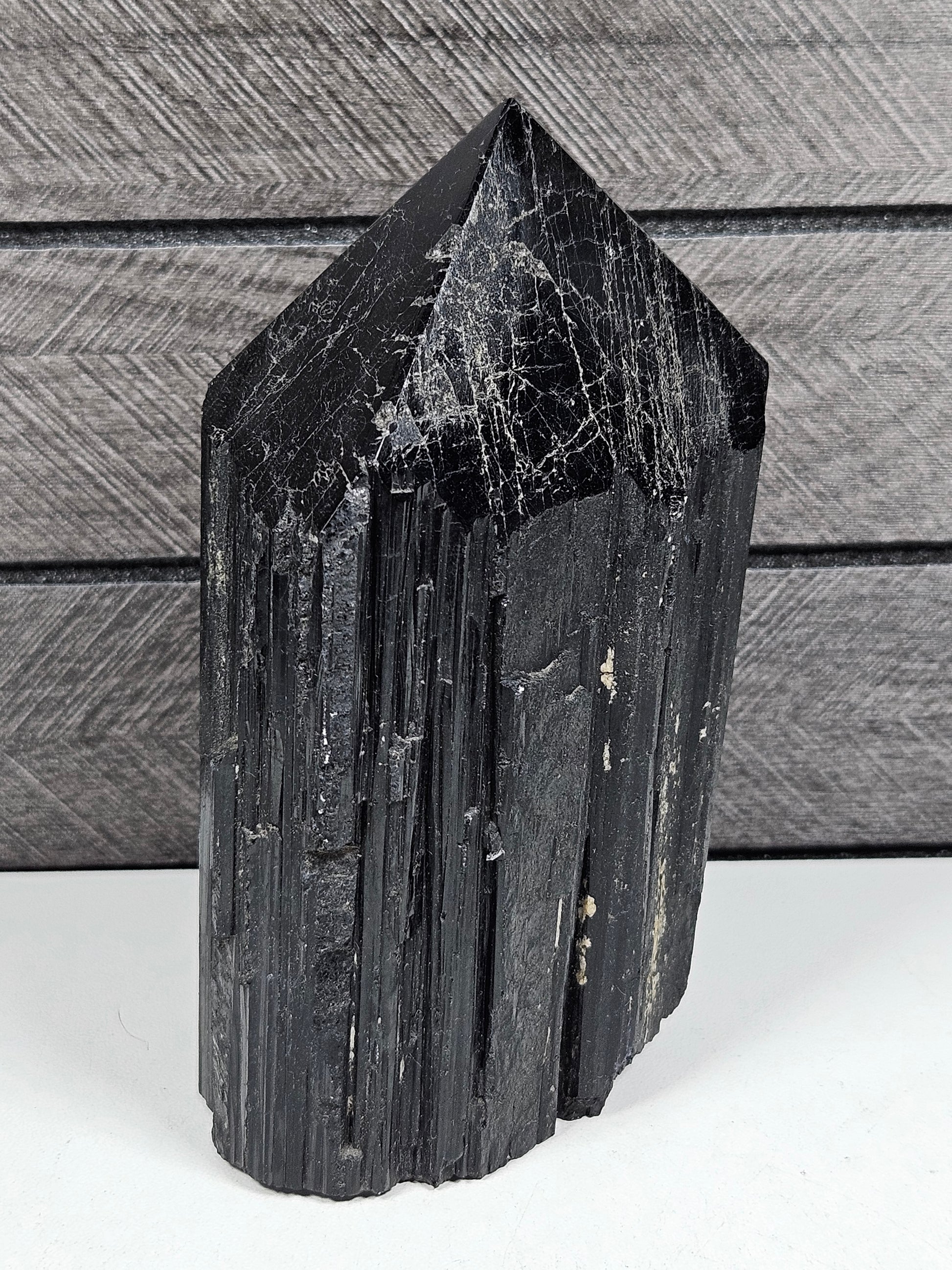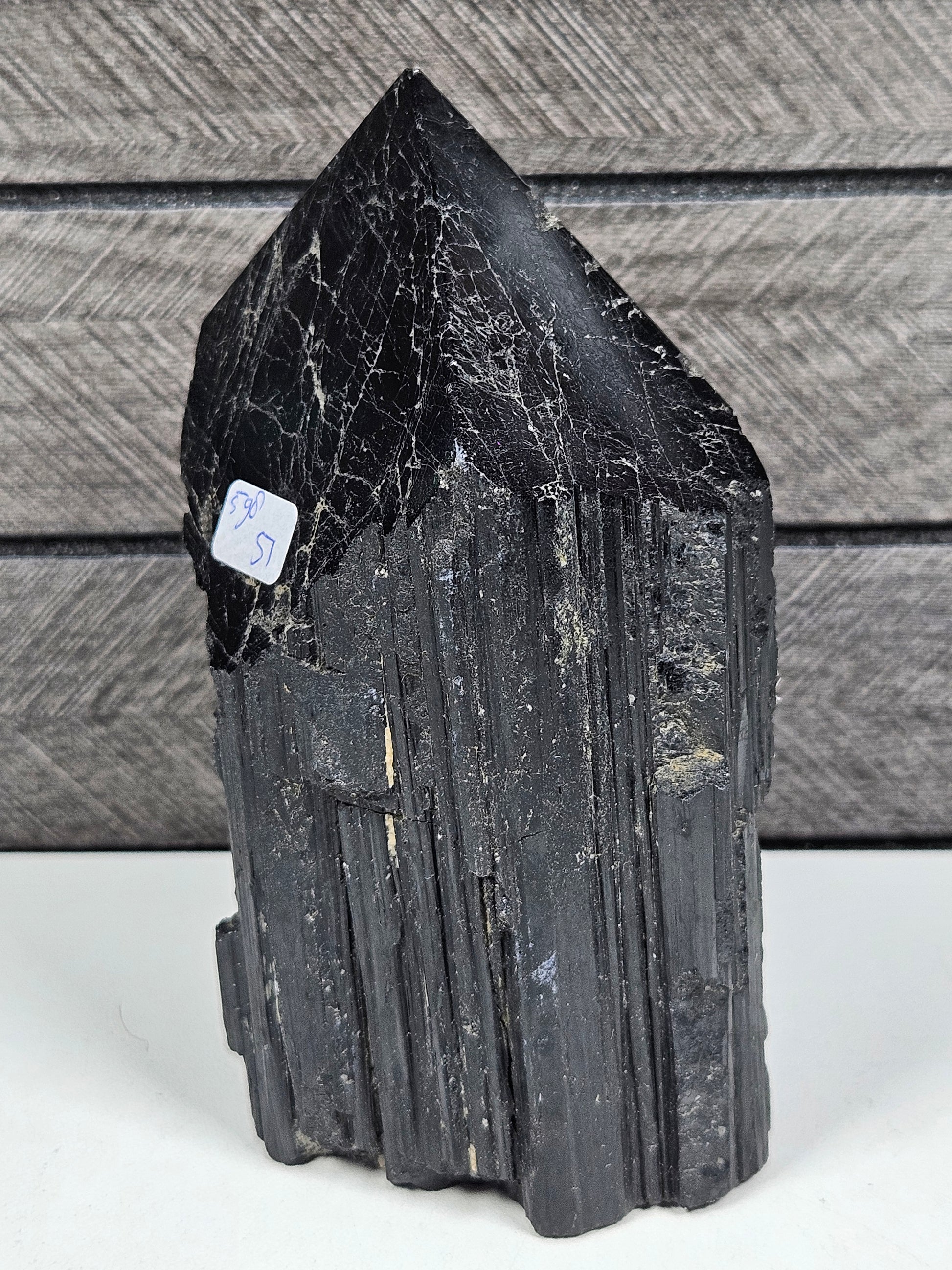 Deze zwarte toermalijn toren is een uniek stuk natuursteen. Structuur, vorm en details zijn volledig natuurlijk gevormd, waardoor elke toren een eigen karakter en uitstraling heeft. Je ontvangt precies het exemplaar dat op de foto staat.